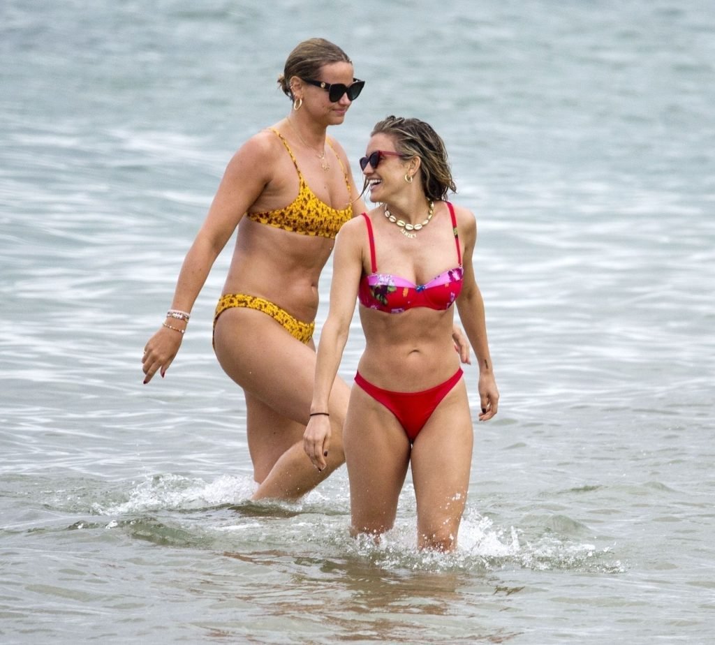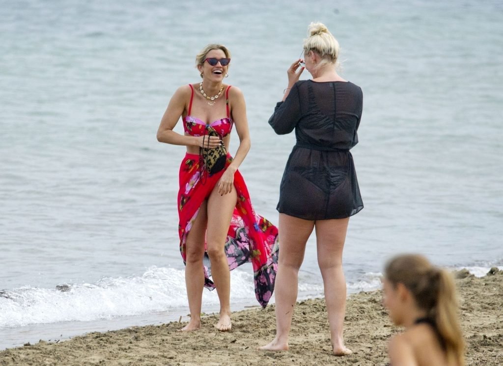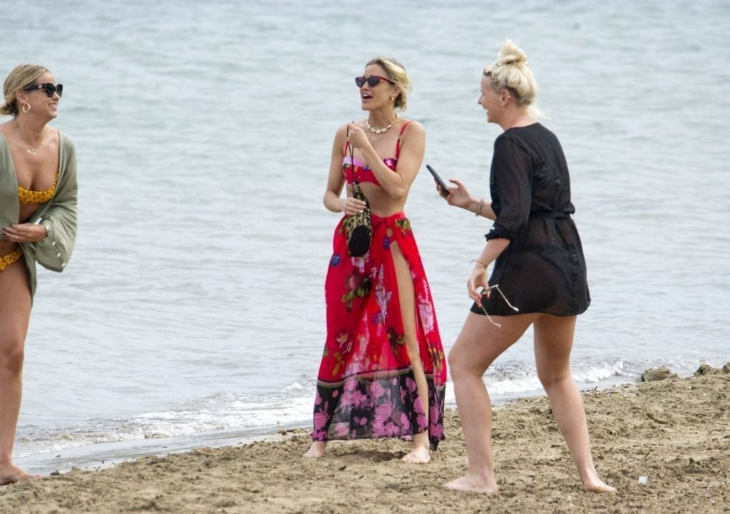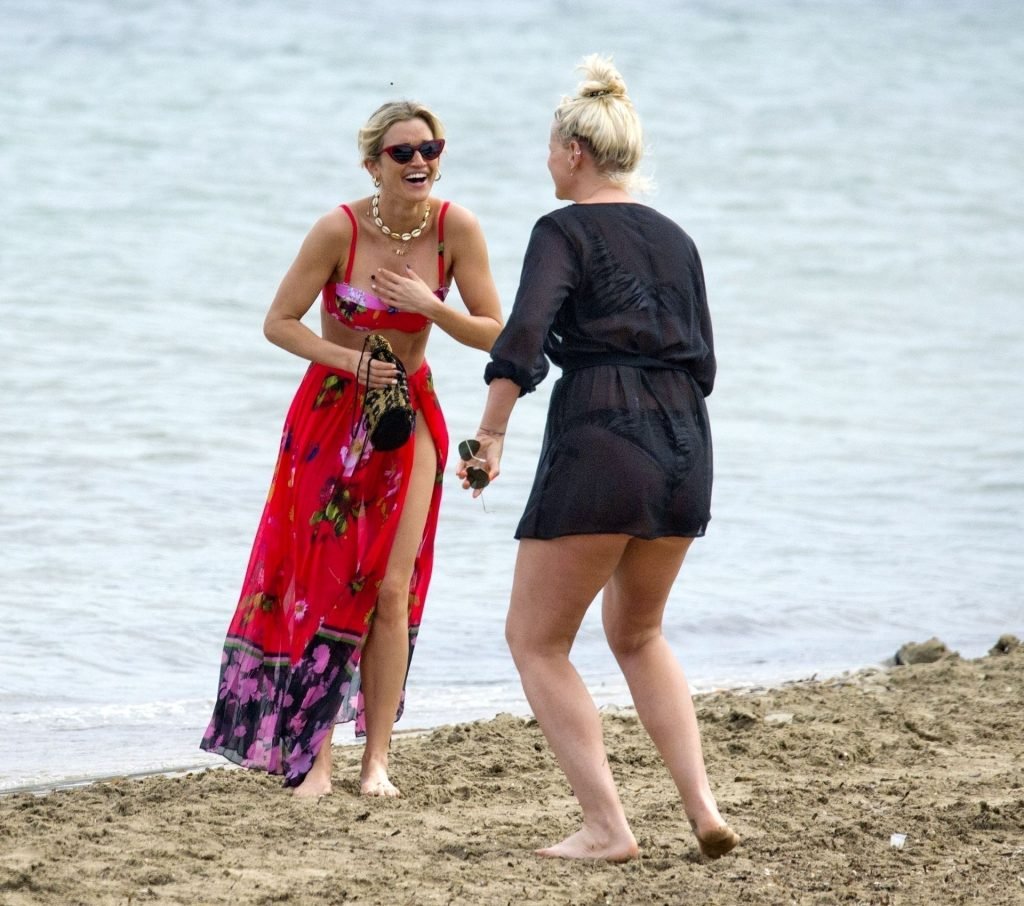 La presentadora de radio y actriz de teatro del West End mostró sus habilidades de baile aprendidas durante su participación en Strictly en 2018, mientras la ex “Pussycat Doll” posaba en la playa con una exhibición sexy mientras se daba un baño en el mar en la isla española.