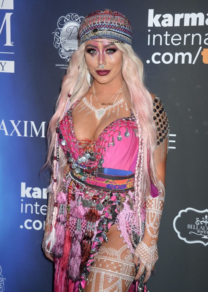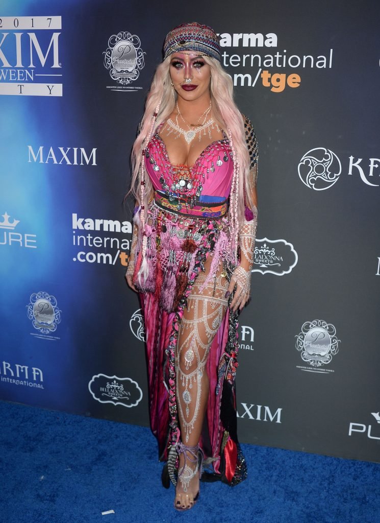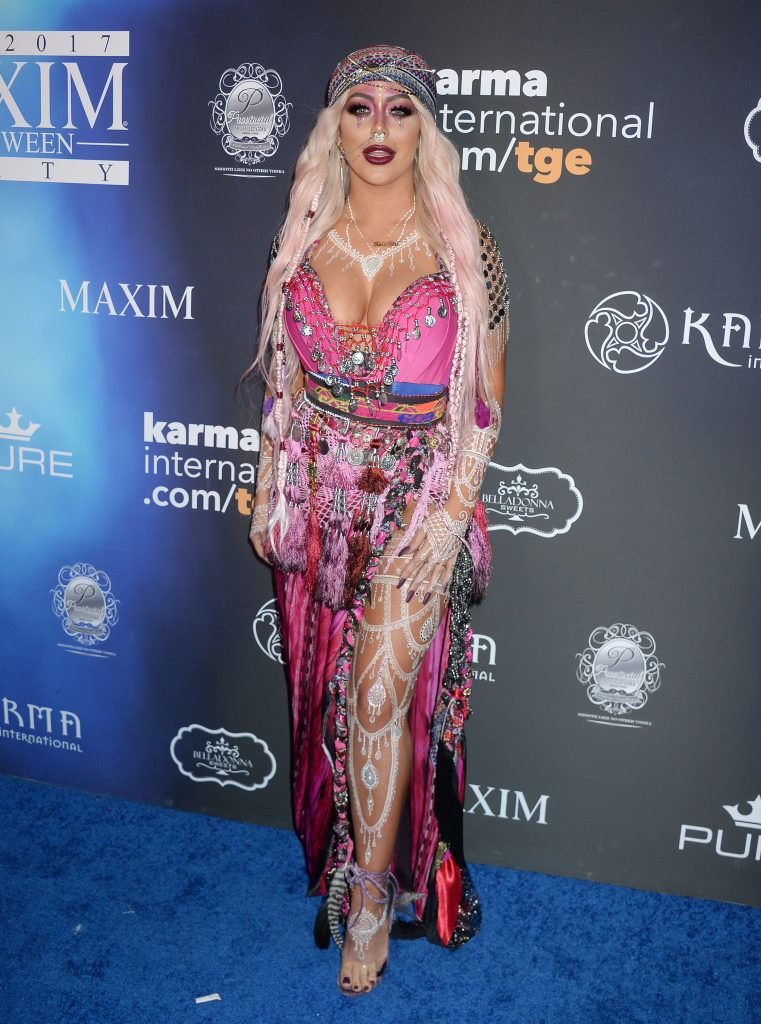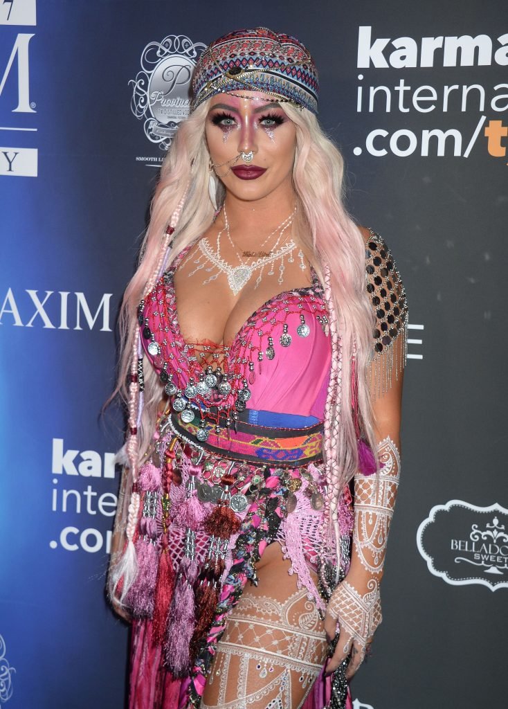 Aubrey O’Day muestra su disfraz exótico (incluyendo pechos falsos) en la Fiesta de Halloween Maxim 2017 en Los Ángeles, 21/10/2017. Aubrey O’Day es una cantante/compositora estadounidense, actriz y estrella de la televisión de realidad. Edad: 33 años.