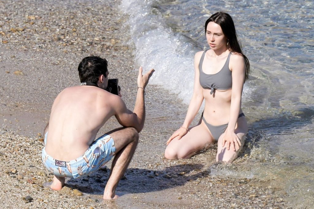 Aurora se veía genial con su bikini gris mientras posaba para la cámara de Goffredo. La pareja parecía feliz y se besaba tiernamente en el bar Liasti.