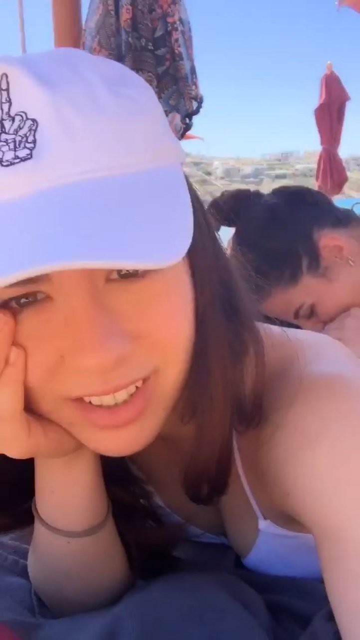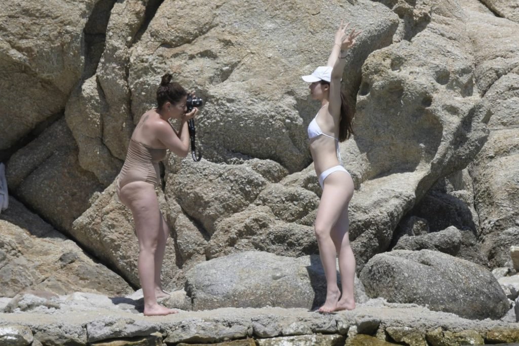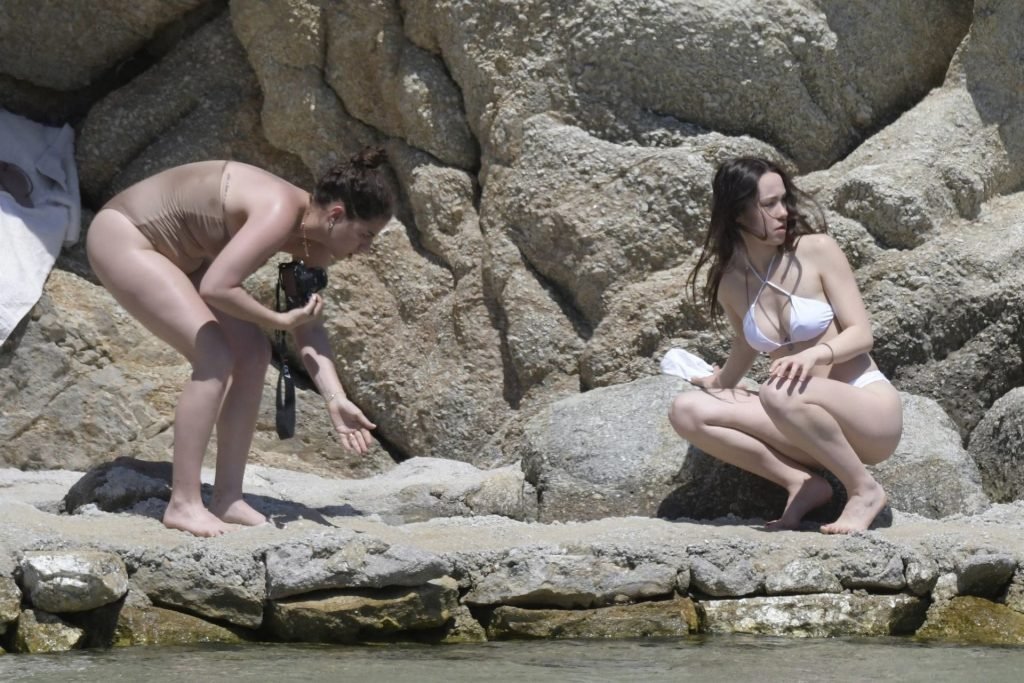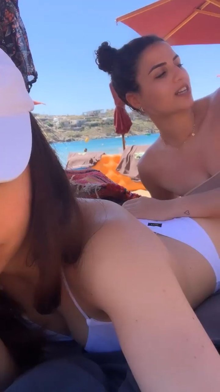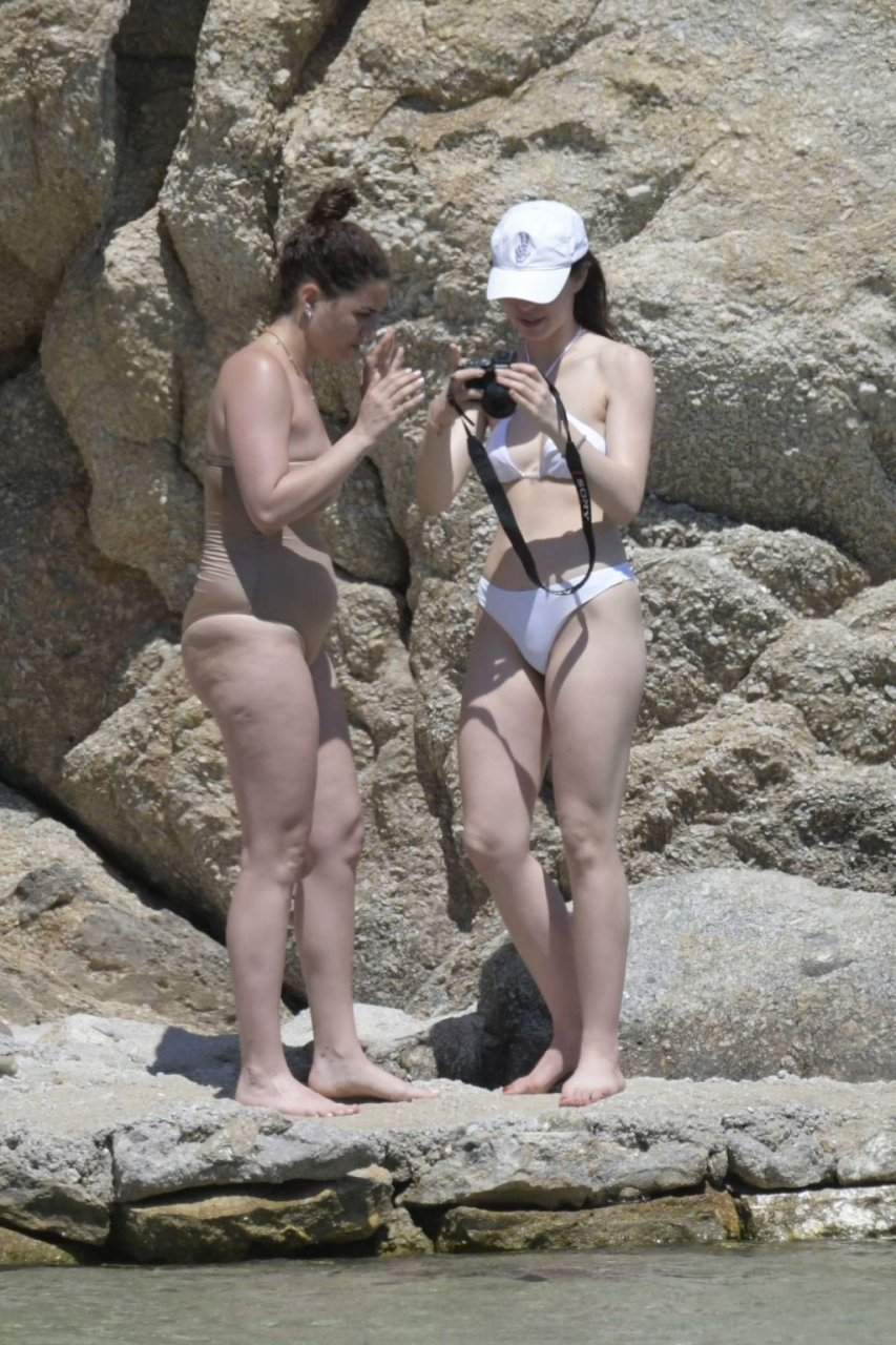 Aurora, en un bikini blanco, estaba con Sara Daniele y Camilla Pietrocola en la playa Super Paradise. Aurora Ramazzotti y sus amigas jugaron mientras posaban y se fotografiaban. Más tarde, se vio a Aurora con su novio, Goffredo Cerza, en la playa.