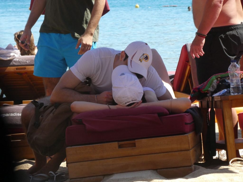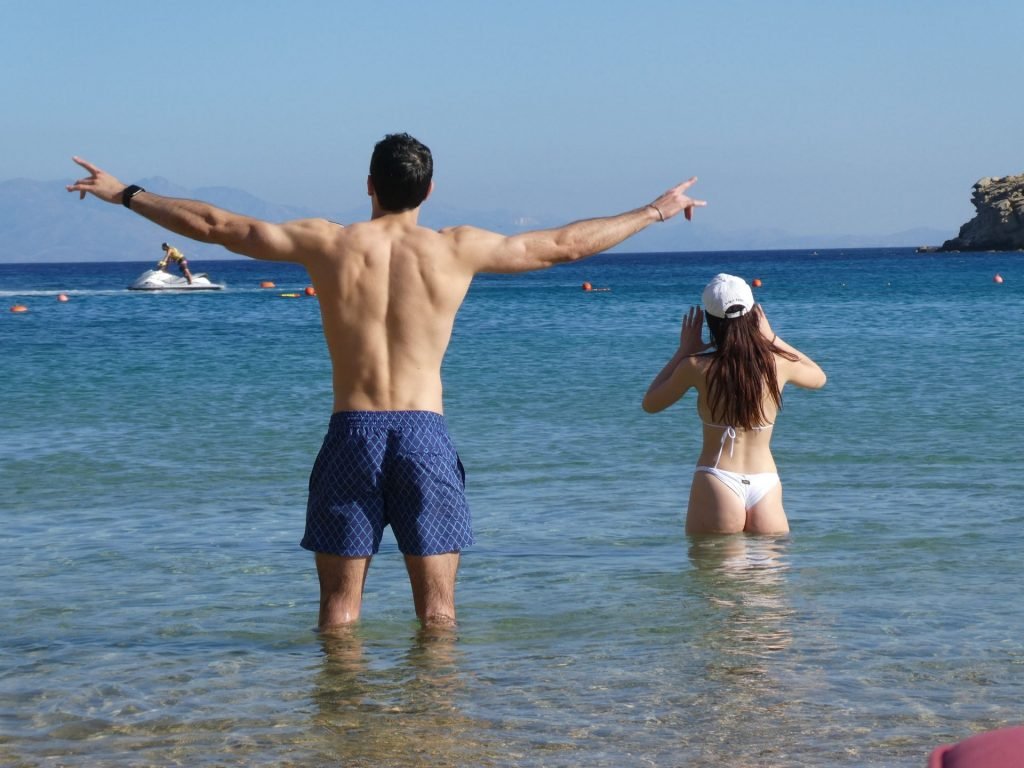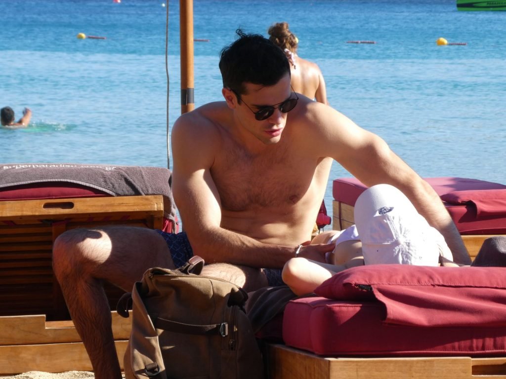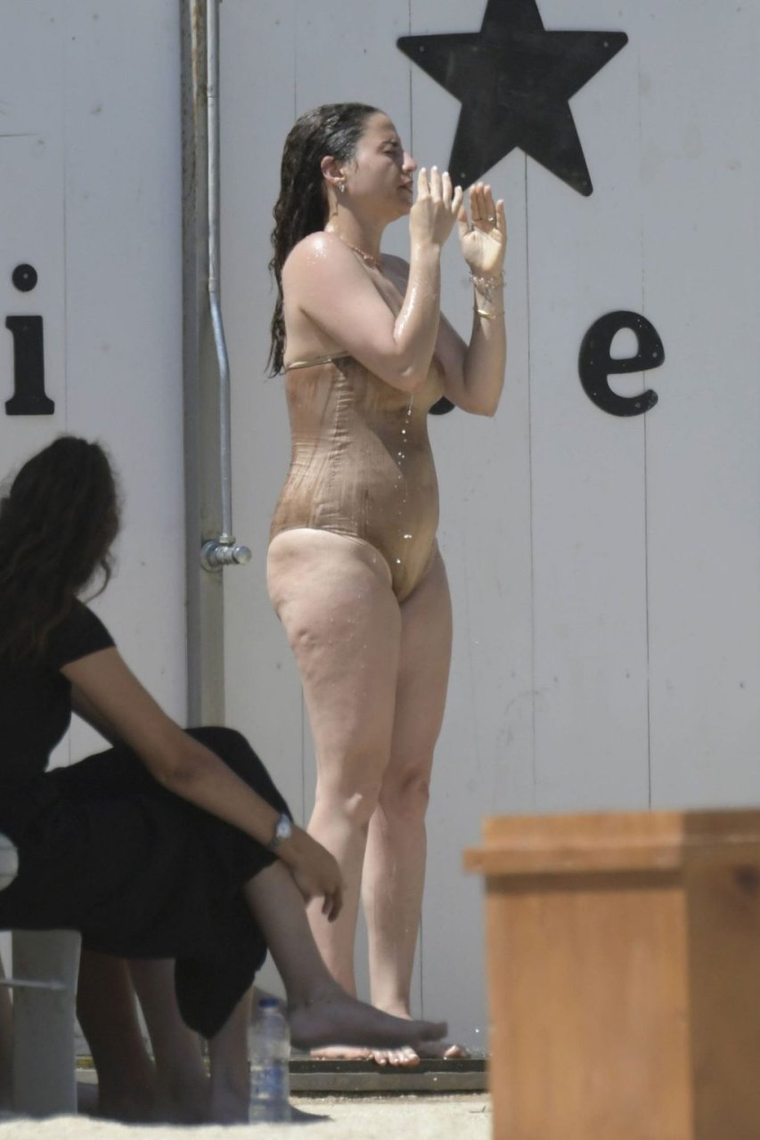 Aurora, en un bikini blanco, estaba con Sara Daniele y Camilla Pietrocola en la playa Super Paradise. Aurora Ramazzotti y sus amigas jugaron mientras posaban y se fotografiaban. Más tarde, se vio a Aurora con su novio, Goffredo Cerza, en la playa.