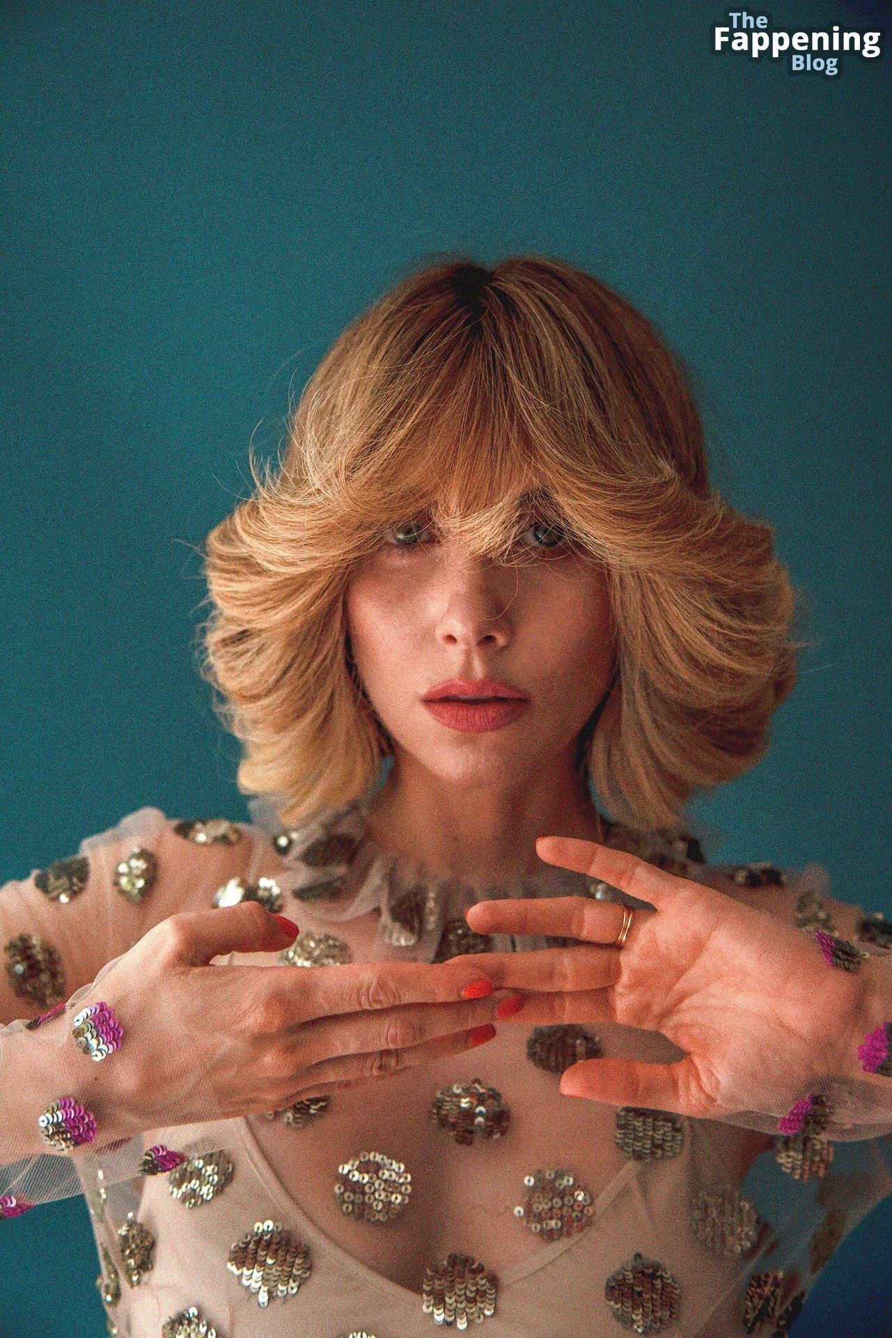 Pero lo más destacado de su look fue el vestido “sirena” de Sally LaPointe, un favorito entre las estrellas de Hollywood. El vestido, en un tono azul agua de la colección 2020, estaba hecho de una tela plateada transparente que abrazaba el cuerpo impecable de Adriana como una segunda piel. Debajo, llevaba un body verde mar. Para completar el conjunto, lucía pendientes largos con esmeraldas verdes y zapatos transparentes con detalles dorados. El color del vestido acentuaba perfectamente sus ojos, que eran tan profundos y misteriosos como el océano.