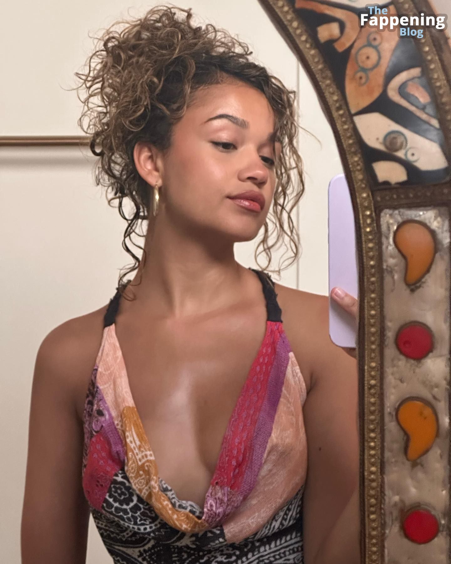 Madison Bailey luce un look sin sujetador, mostrando un escote impresionante y sus enormes pechos en un sexy vestido escotado mientras se toma unas impresionantes selfies.
