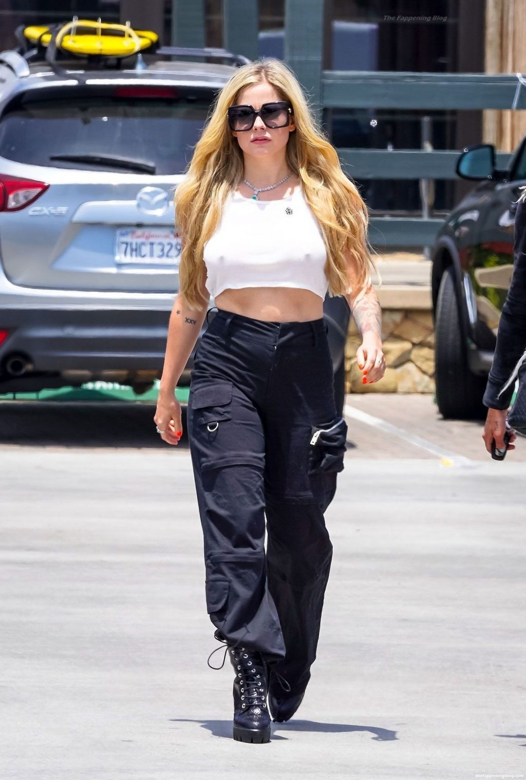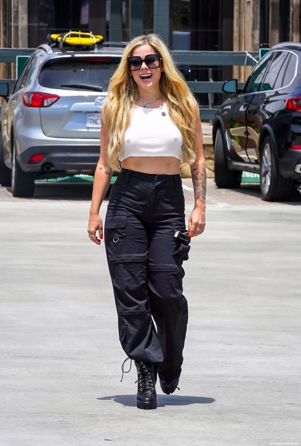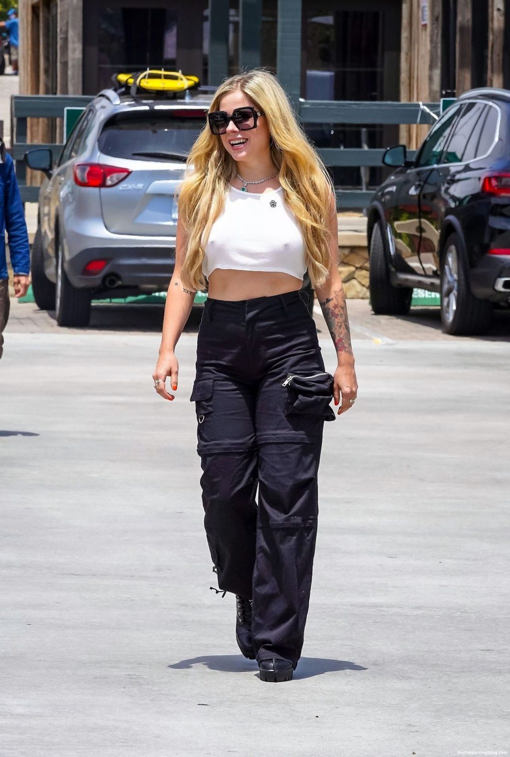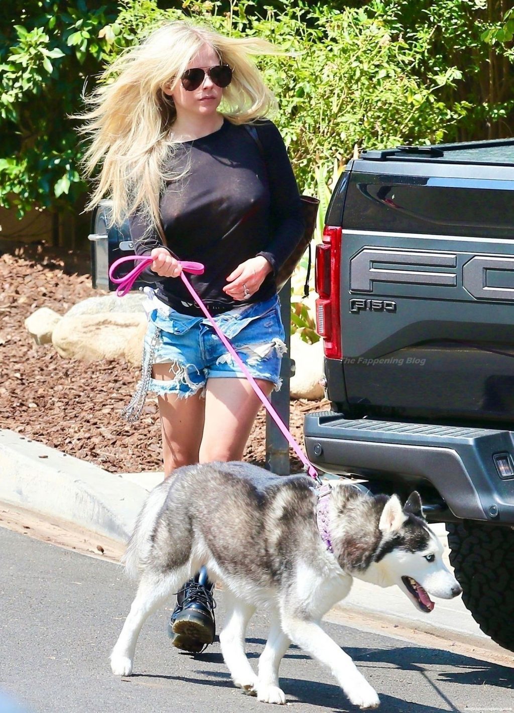 Check it out, guys! It turns out that one more Hollywood blonde hates wearing bras! And that’s precisely how we got a hold of these Avril Lavigne tits photos! Some sneaky paparazzi man was following her around when he spotted that her perky nipples are showing! But, instead of just nipple photos, he captured her whole tits because of the see-through top that she was wearing! She was pictured in front of a friend’s house in Calabasas with her dog!