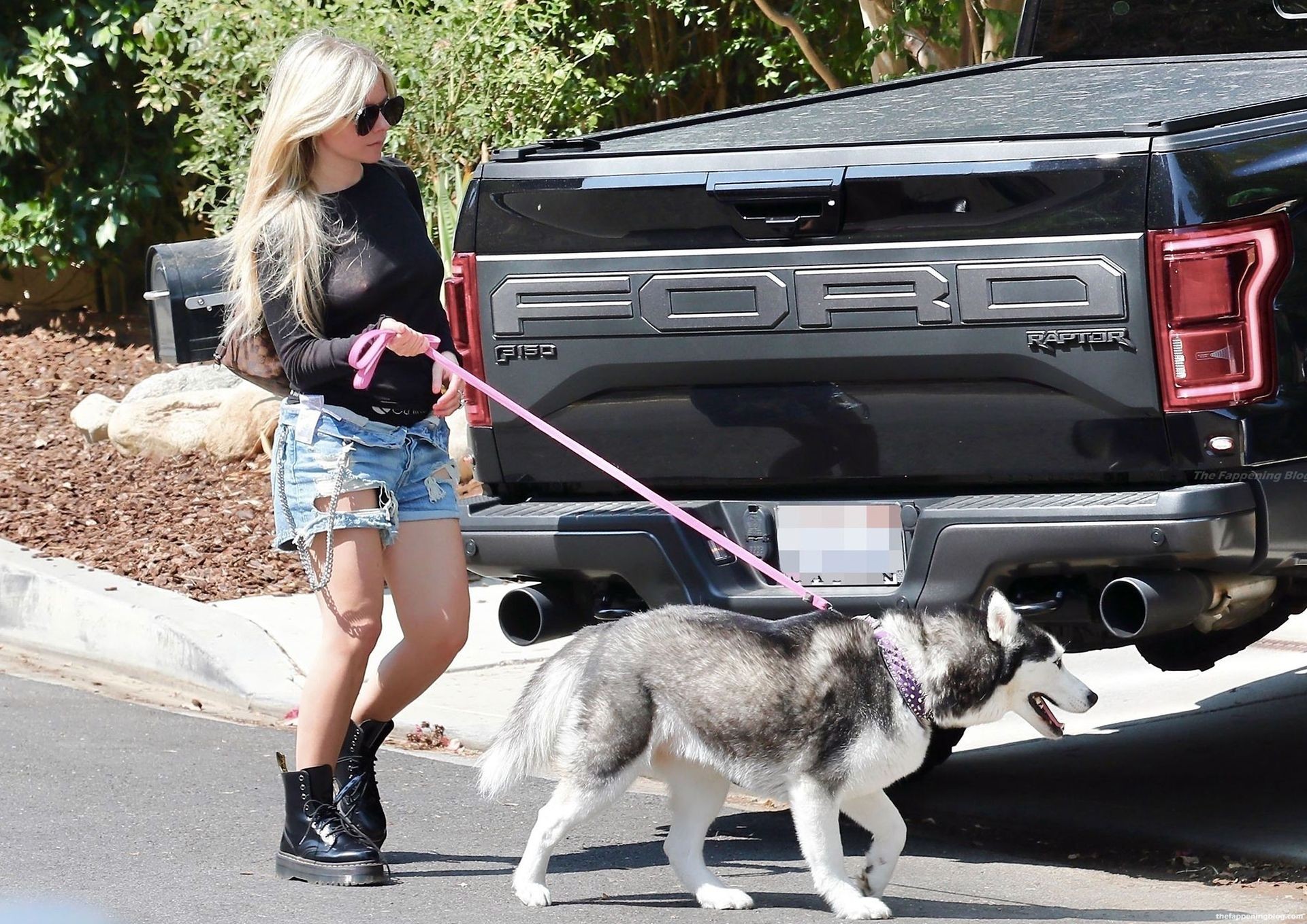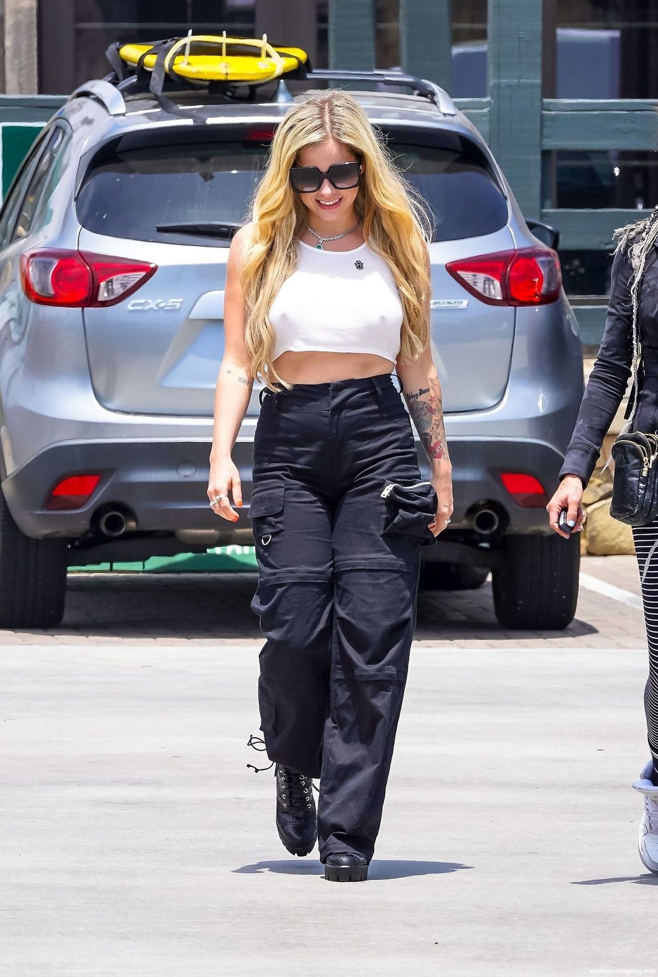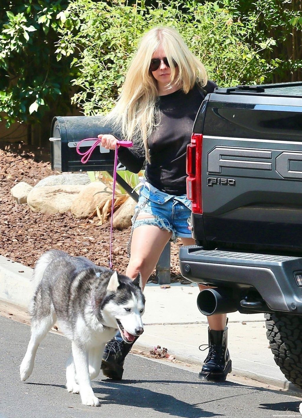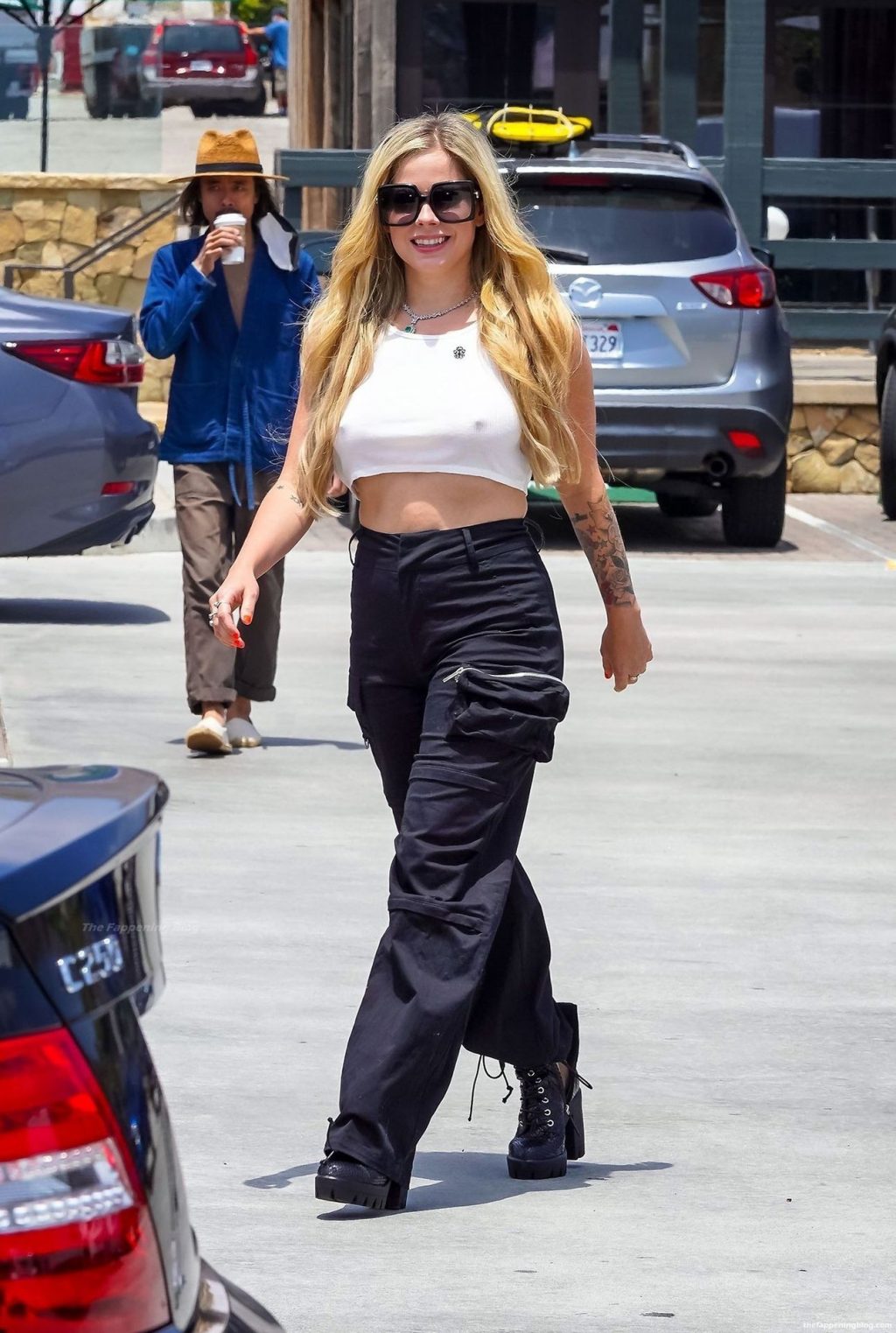 Check it out, guys! It turns out that one more Hollywood blonde hates wearing bras! And that’s precisely how we got a hold of these Avril Lavigne tits photos! Some sneaky paparazzi man was following her around when he spotted that her perky nipples are showing! But, instead of just nipple photos, he captured her whole tits because of the see-through top that she was wearing! She was pictured in front of a friend’s house in Calabasas with her dog!