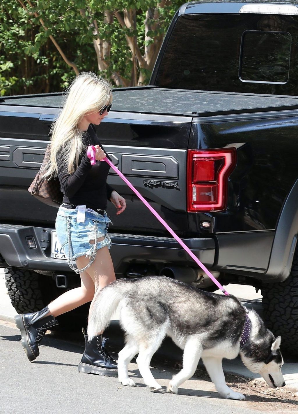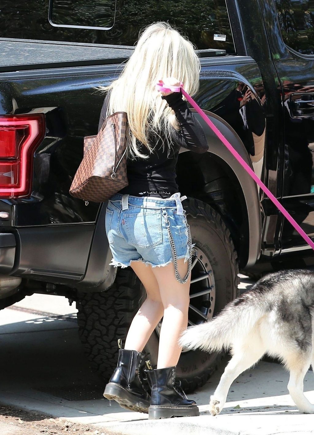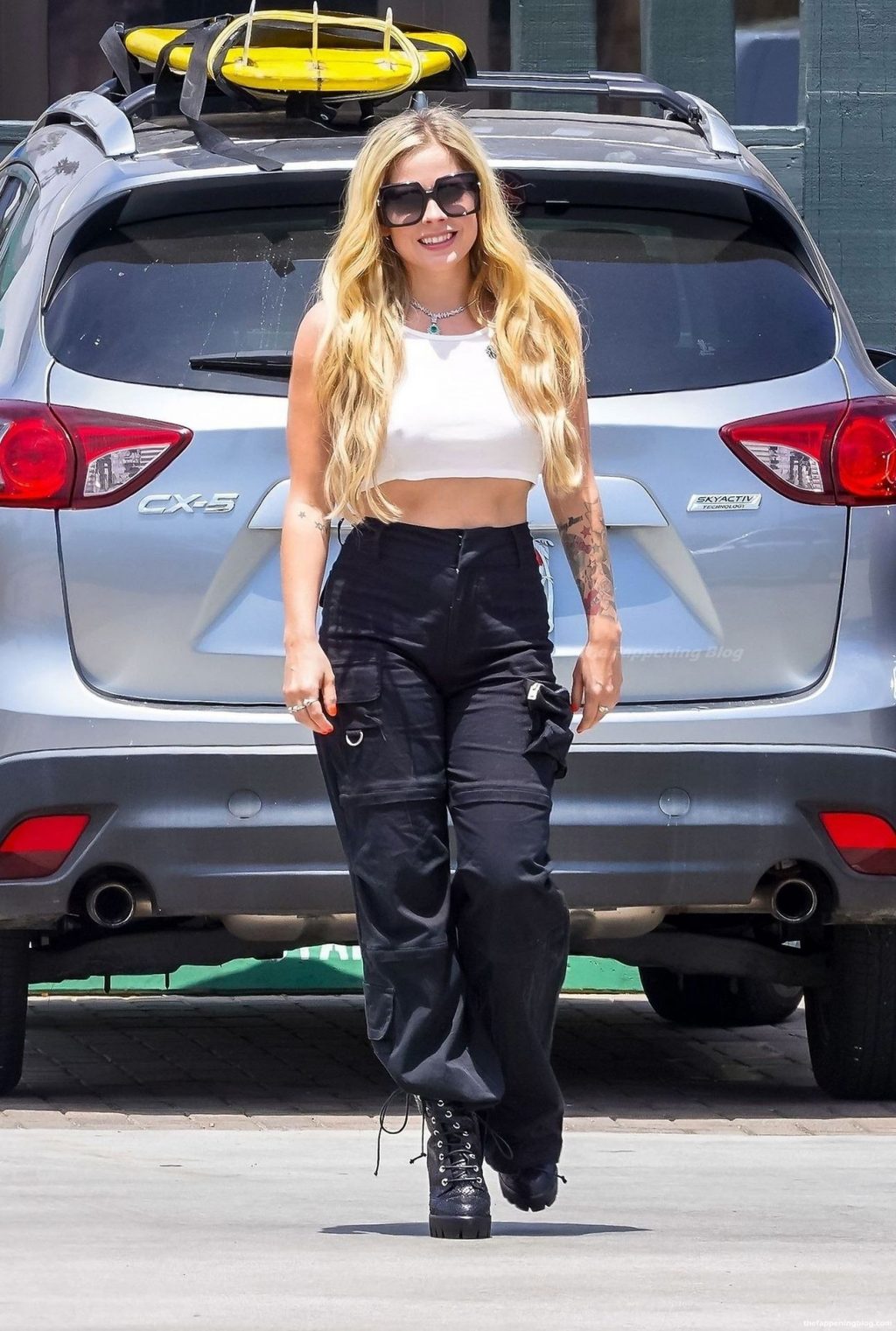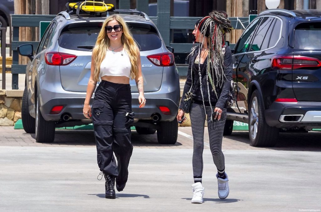 Check it out, guys! It turns out that one more Hollywood blonde hates wearing bras! And that’s precisely how we got a hold of these Avril Lavigne tits photos! Some sneaky paparazzi man was following her around when he spotted that her perky nipples are showing! But, instead of just nipple photos, he captured her whole tits because of the see-through top that she was wearing! She was pictured in front of a friend’s house in Calabasas with her dog!