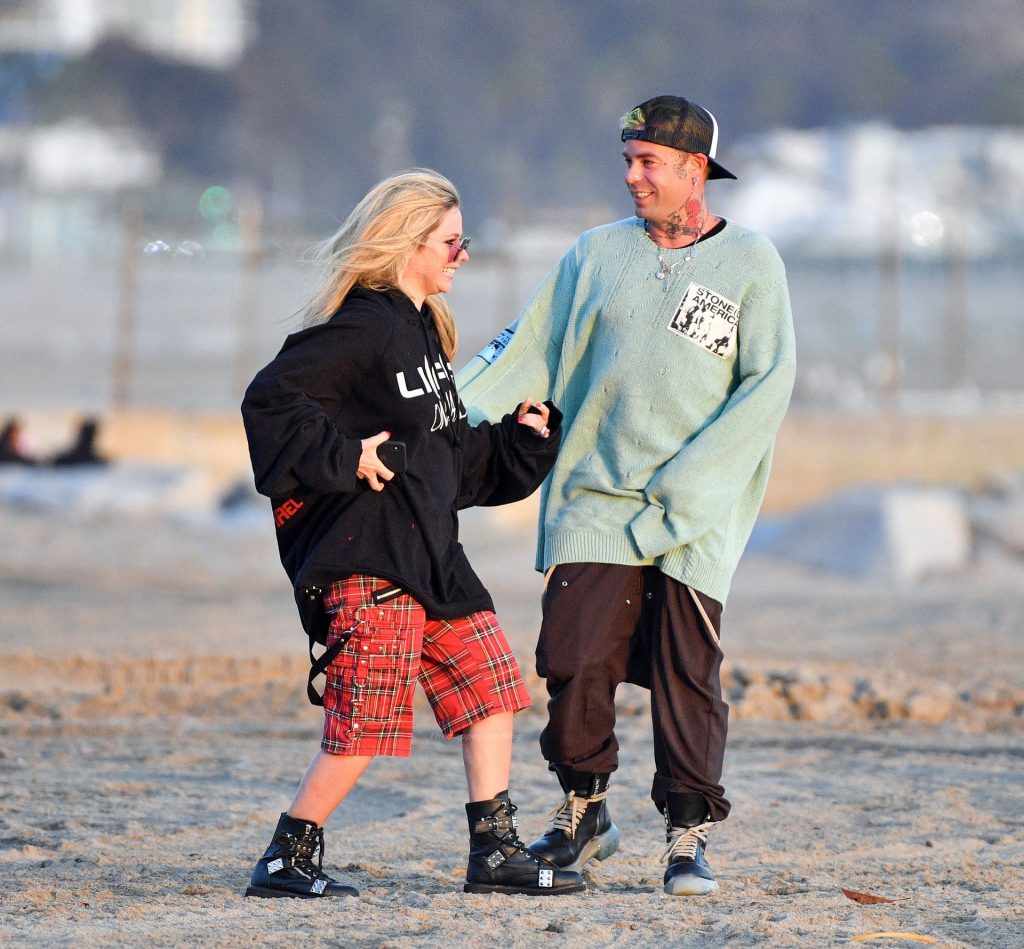 Los dos tortolitos parecían estar perdidamente enamorados mientras se besaban, se tomaban de la mano y se hacían divertidas selfies. Avril, de 36 años, hizo reír a su novio tatuado con un poco de guitarra imaginaria, y ambos estallaron en carcajadas mientras jugaban como adolescentes enamorados. En un momento, Mod Sun, cuyo nombre real es Derek Smith, levantó a su chica y ella se sentó a horcajadas sobre él.