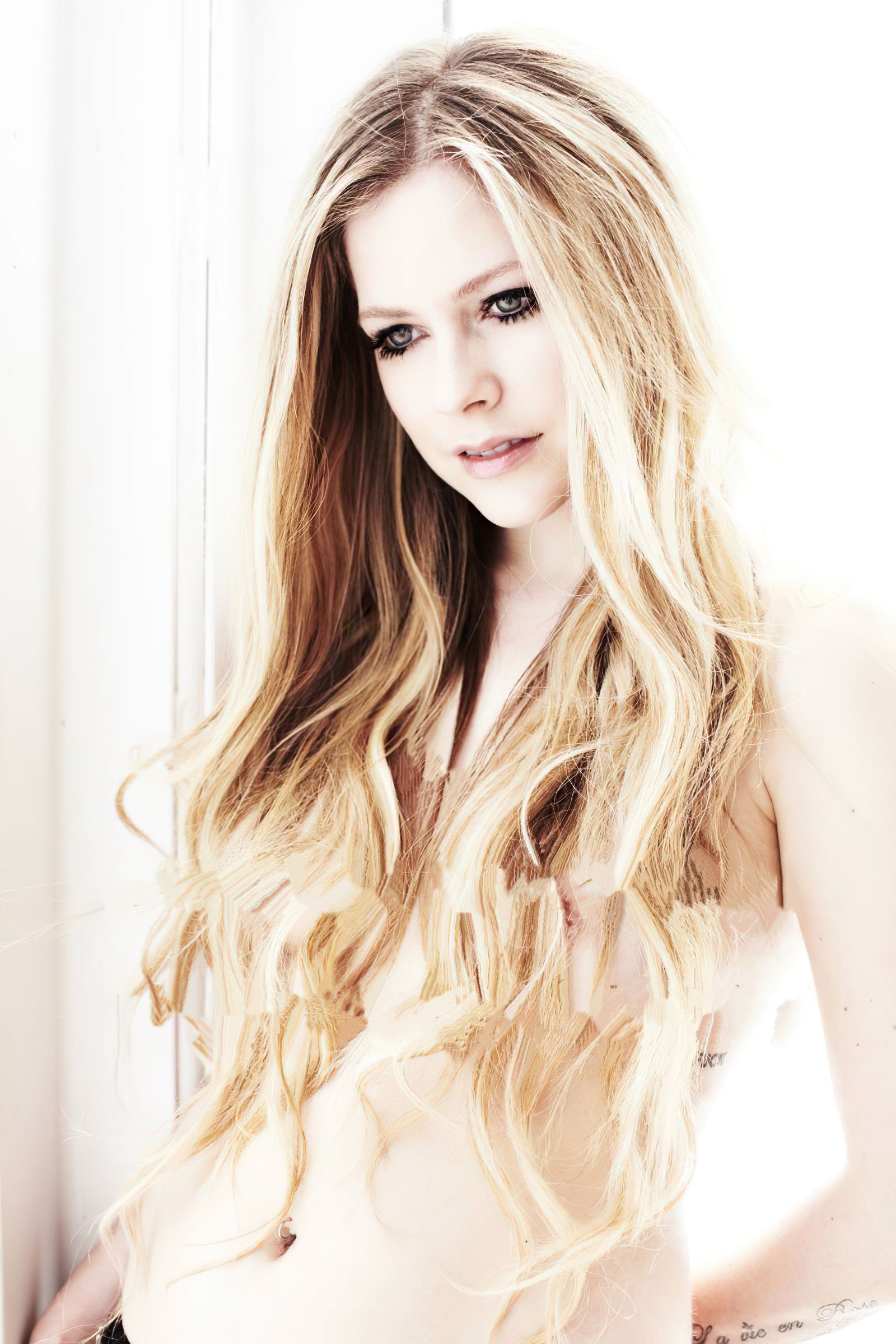 Mira las fotos desnudas y sexys de Avril Lavigne de una sesión fotográfica de Mark Liddell (2013). La cantante rara vez se muestra desnuda en sesiones fotográficas. Aquí casi cubre sus pechos desnudos con el cabello. Hay posible prueba filtrada de The Fappening al final. ¿Qué opinas?