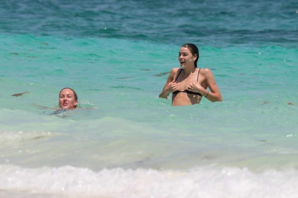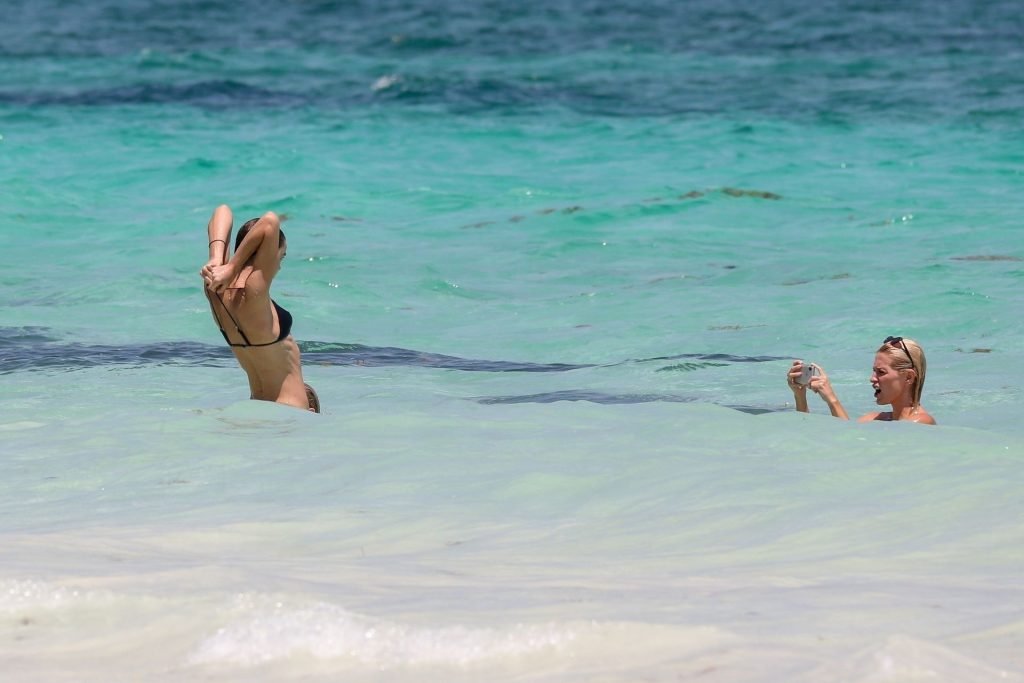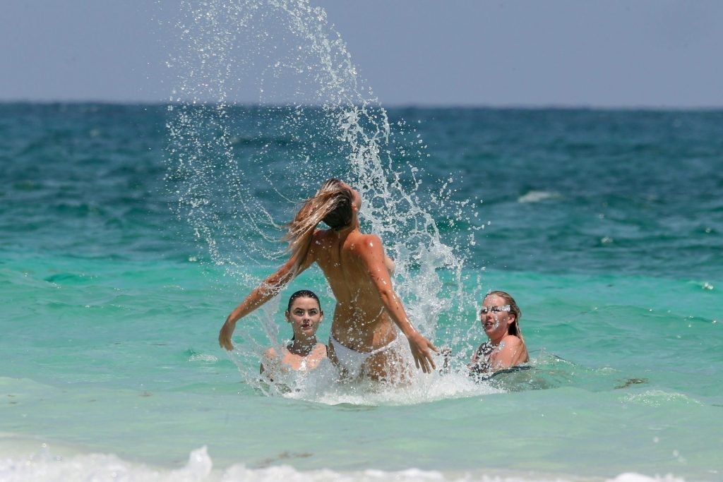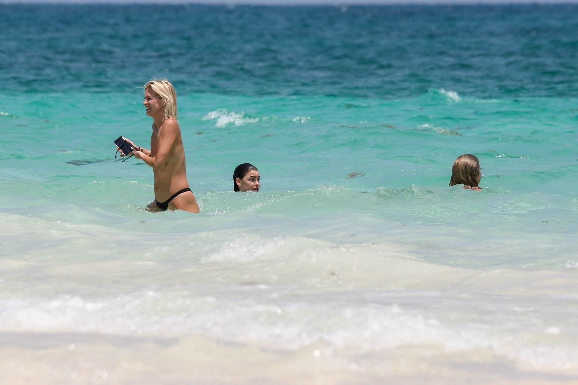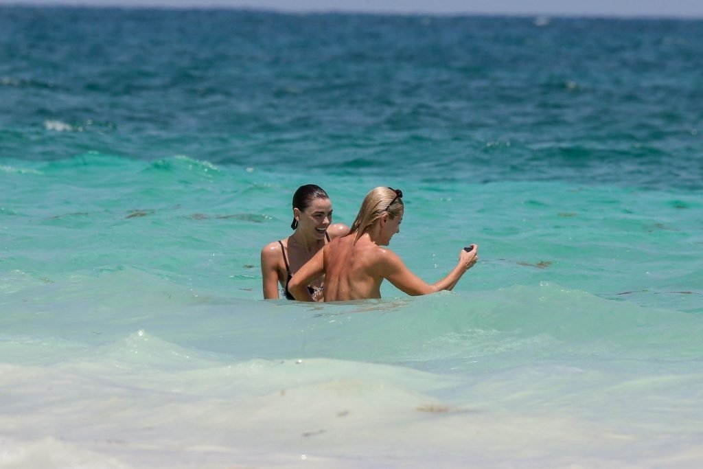 La modelo Bambi Northwood-Blyth muestra su físico en forma mientras juega en el océano y disfruta de unas vacaciones en Tulum con algunas amigas topless, Miriam Adler y Jessica Lawson, 03/04/2019.