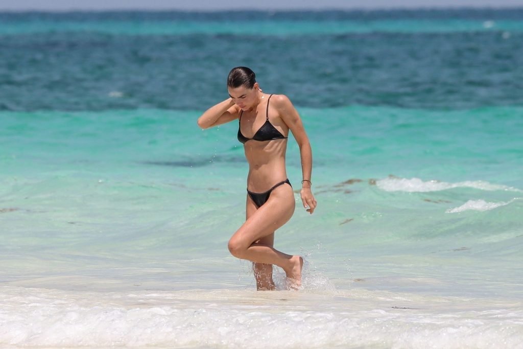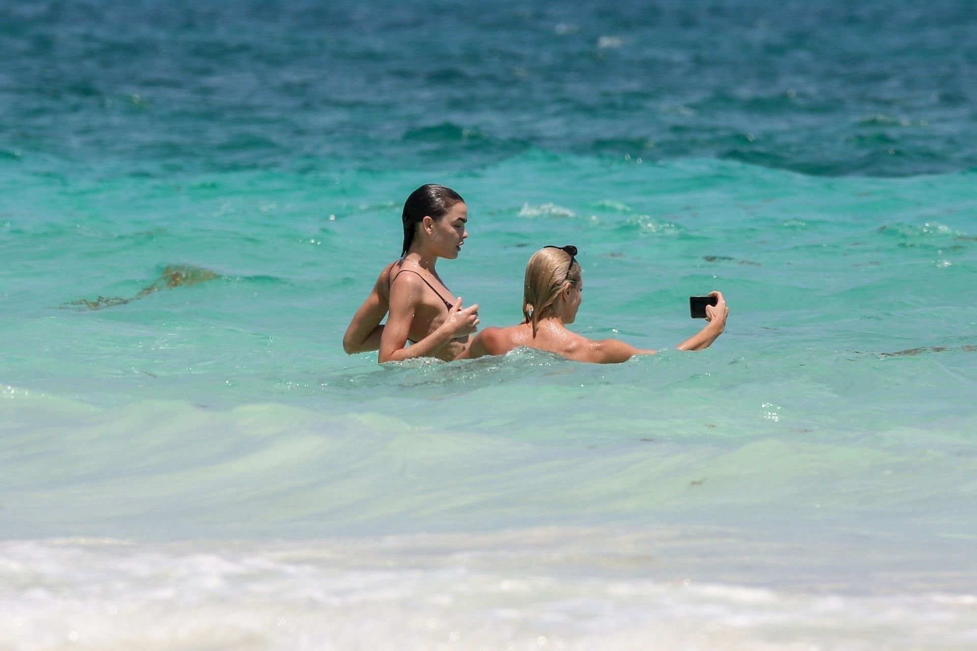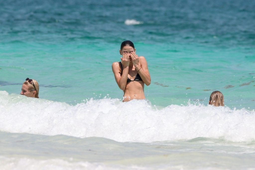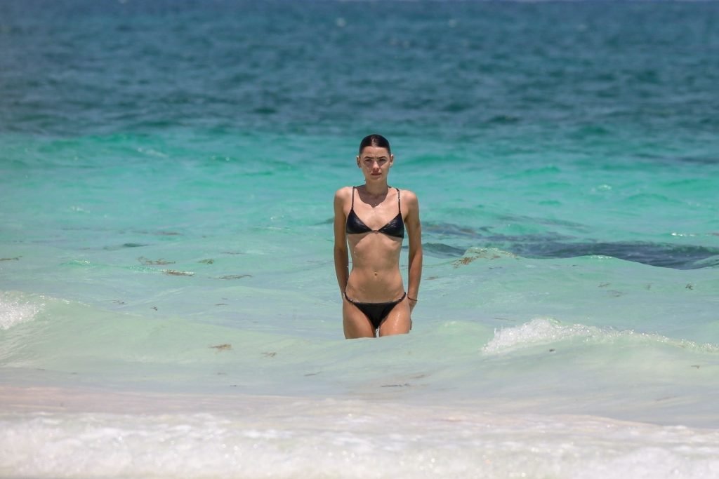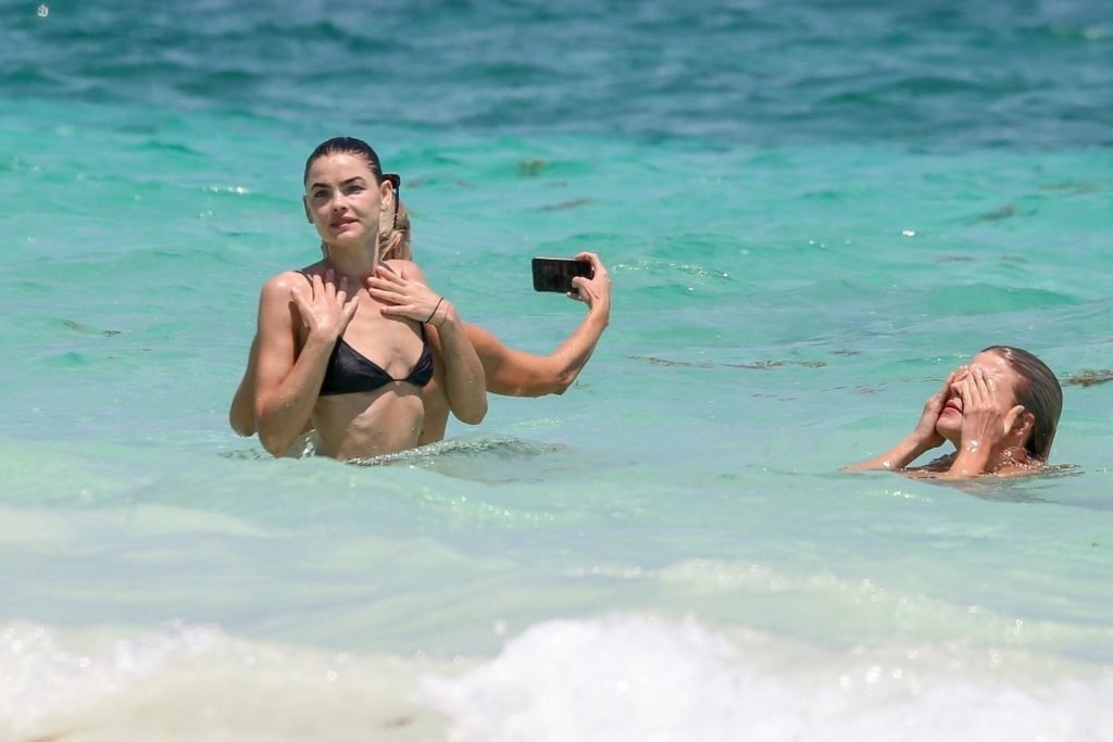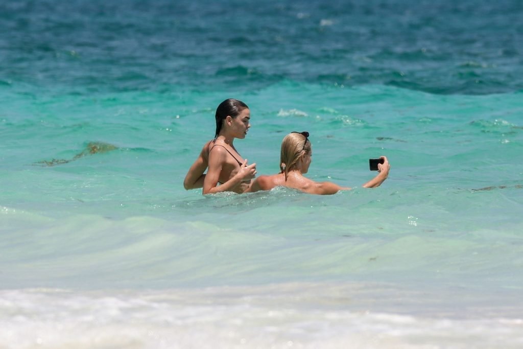 La modelo Bambi Northwood-Blyth muestra su físico en forma mientras juega en el océano y disfruta de unas vacaciones en Tulum con algunas amigas topless, Miriam Adler y Jessica Lawson, 03/04/2019.