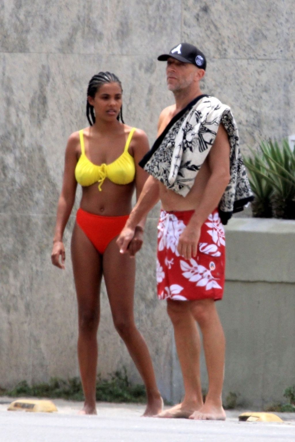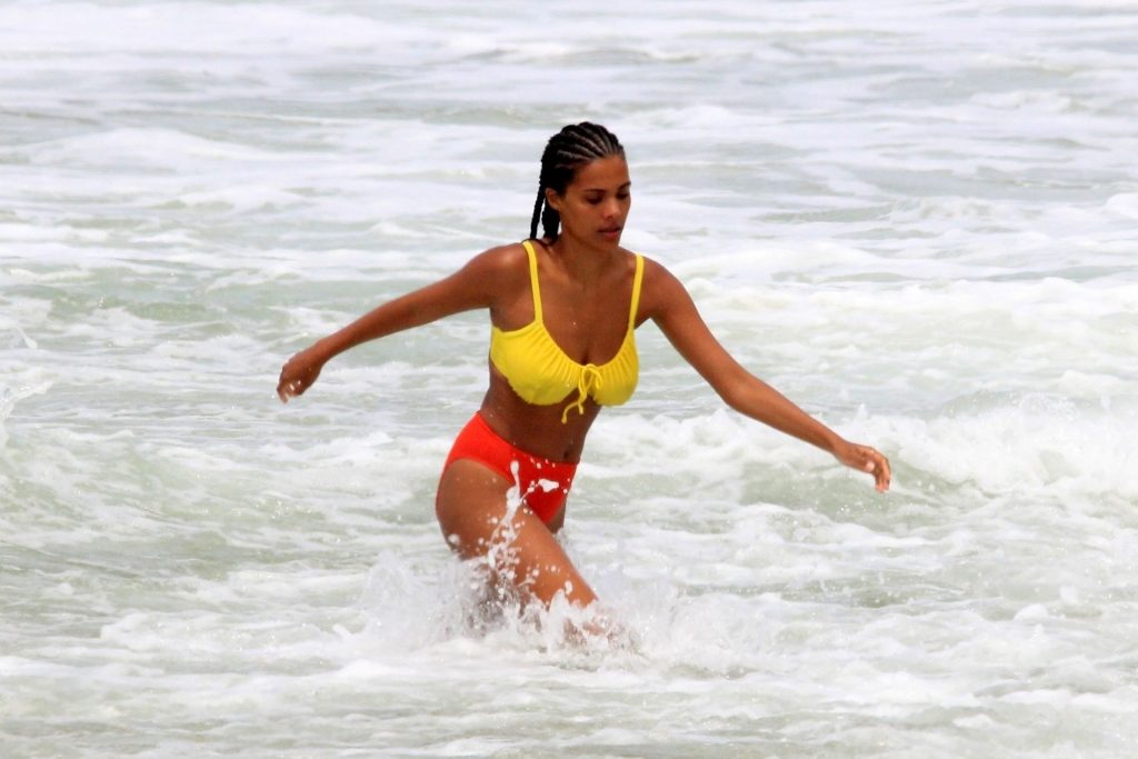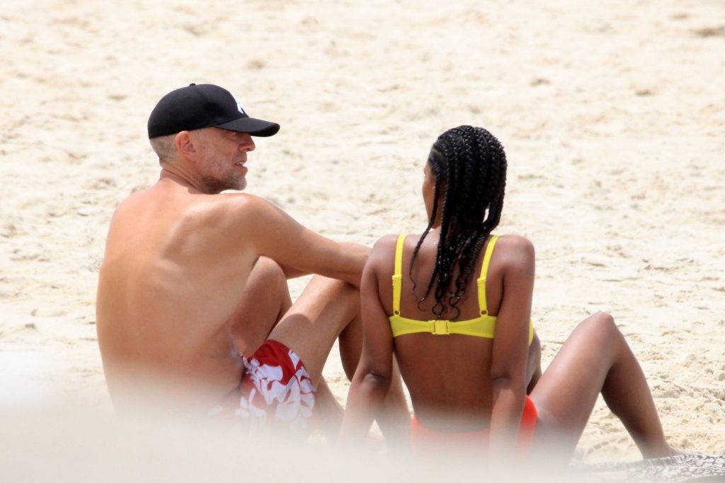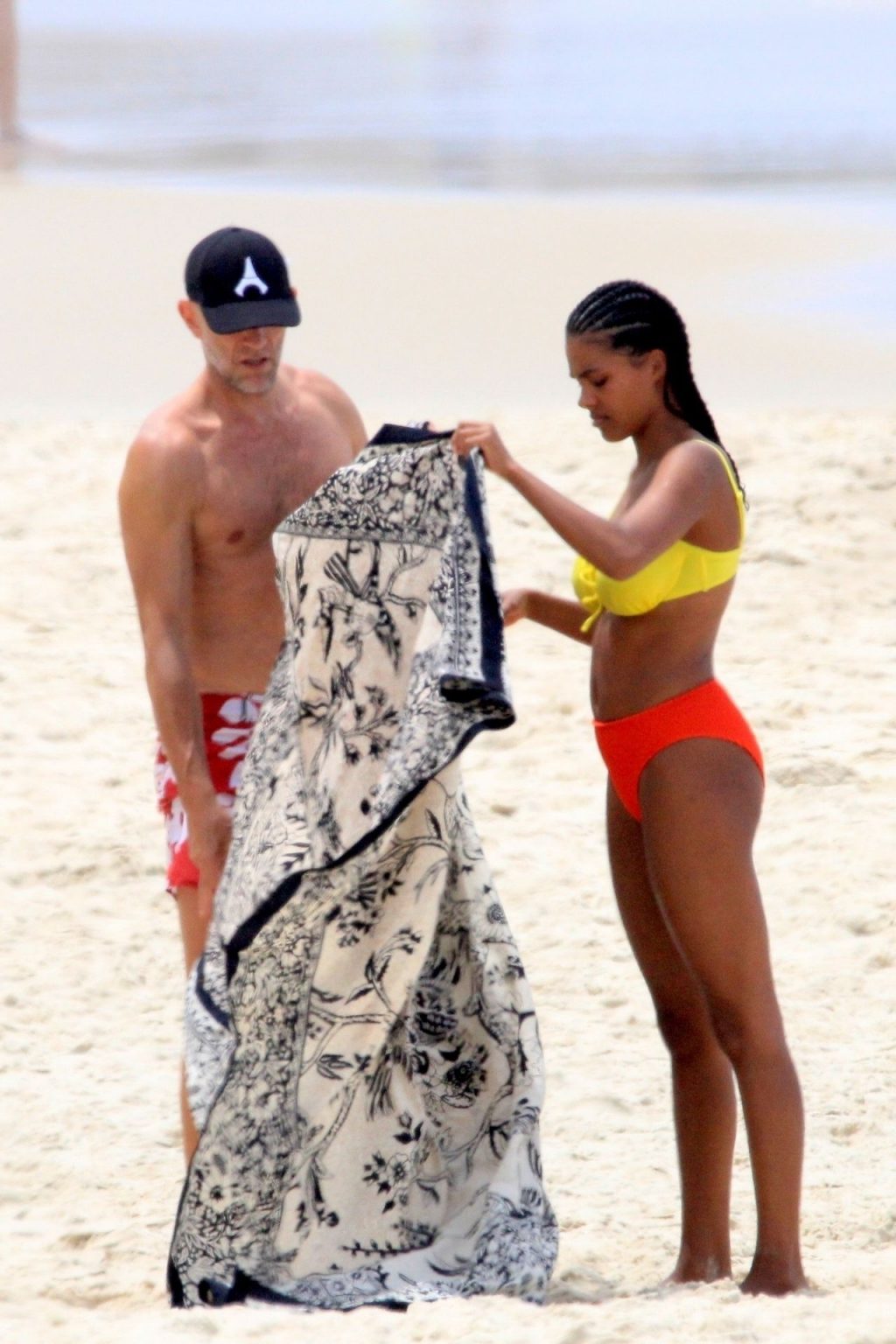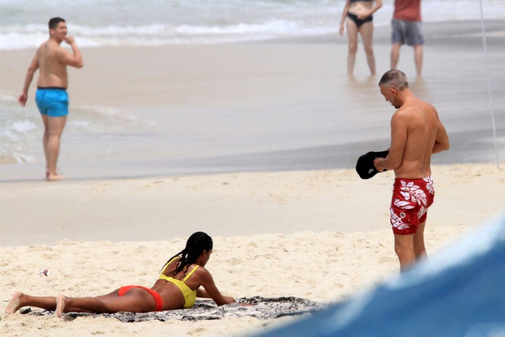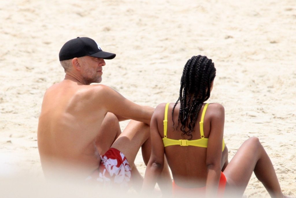 El actor francés Vincent Cassel y su esposa Tina Kunakey disfrutan de la compañía mutua bajo el sol de Río de Janeiro, 01/02/2020. Tina, con un top de bikini amarillo, se da un chapuzón en el agua antes de volver a la arena para recostarse con su esposo Vincent.