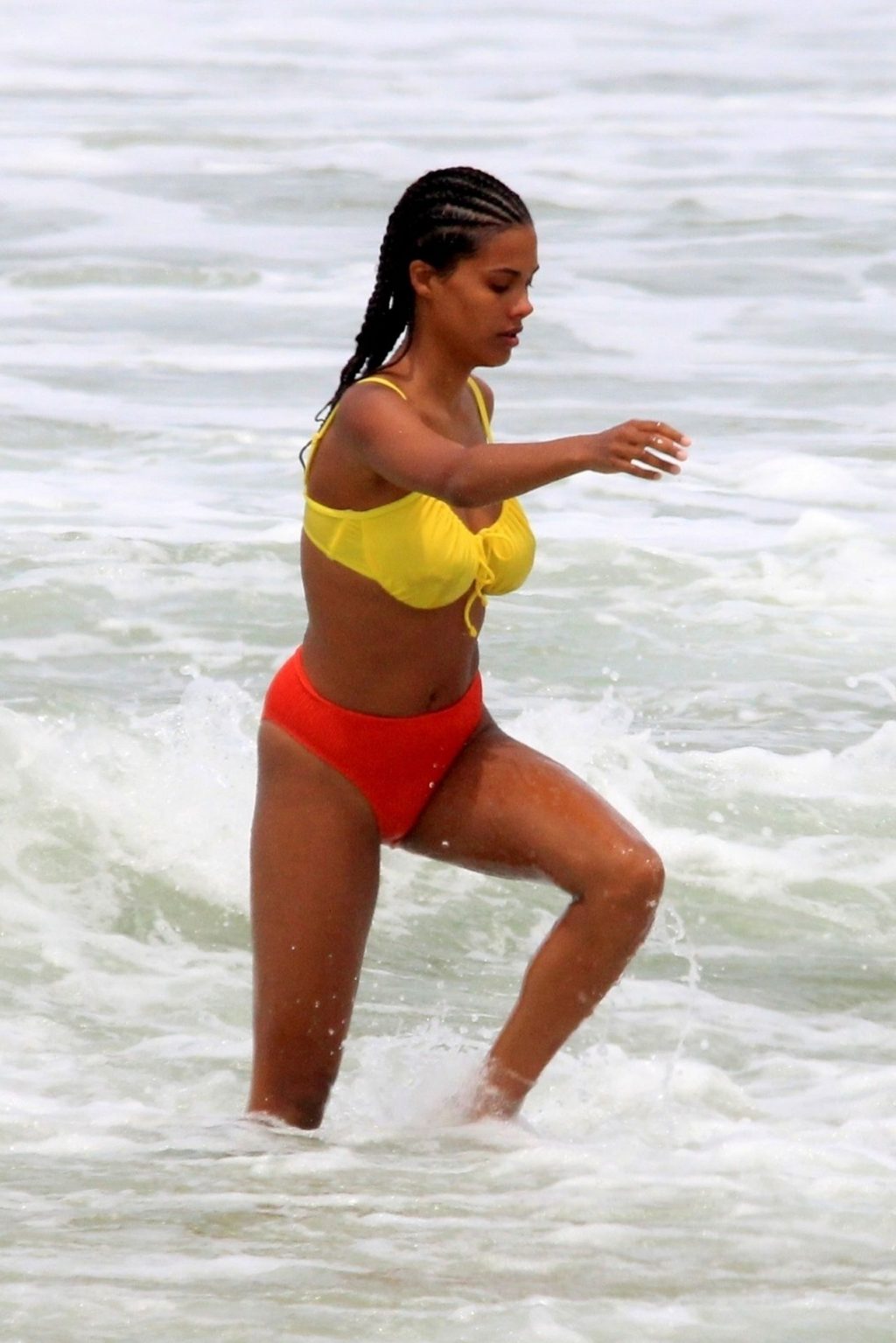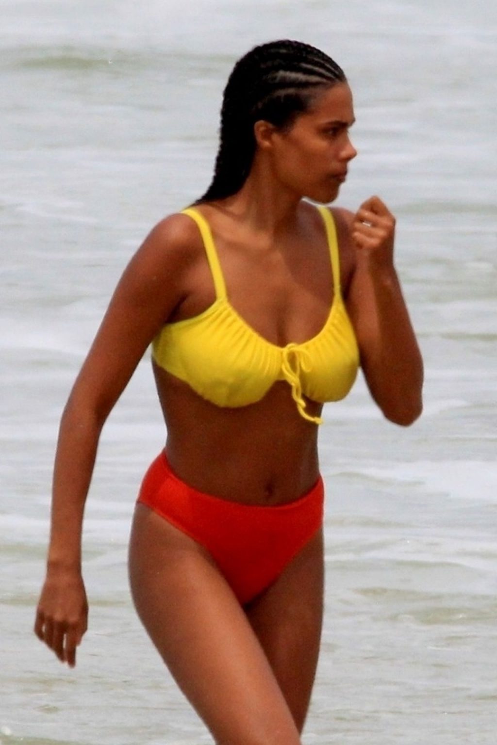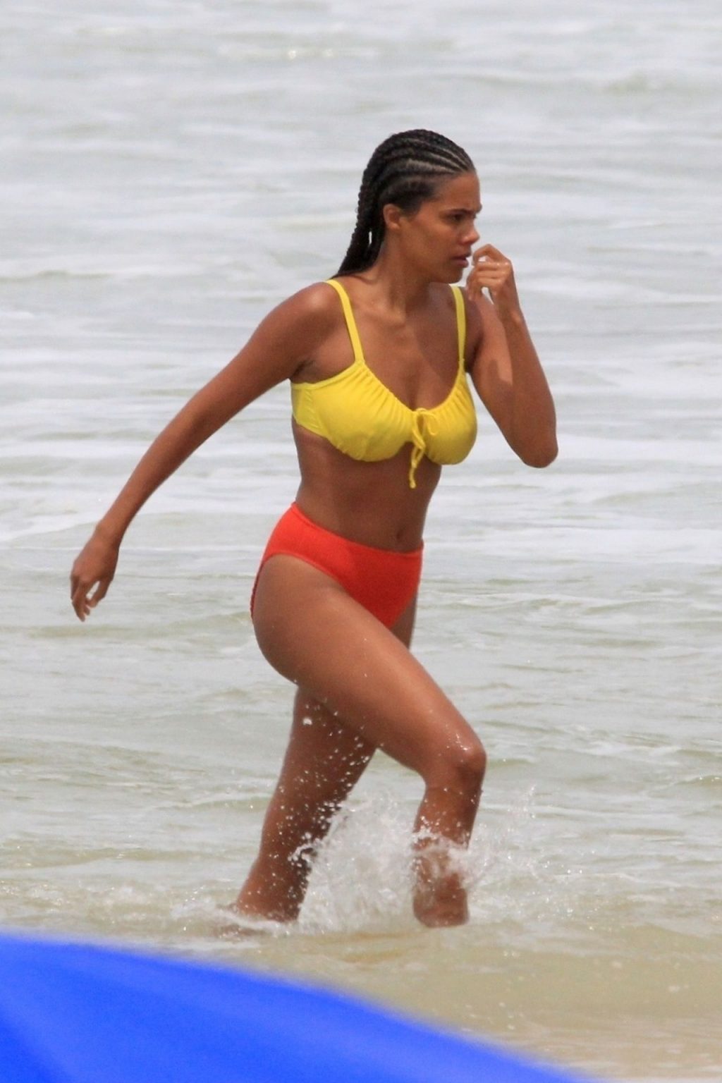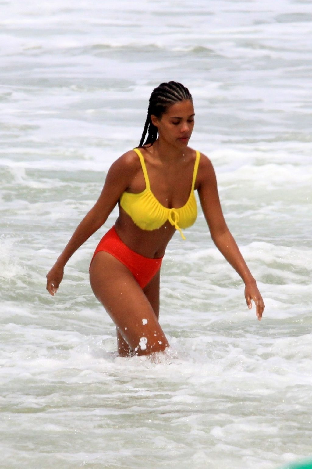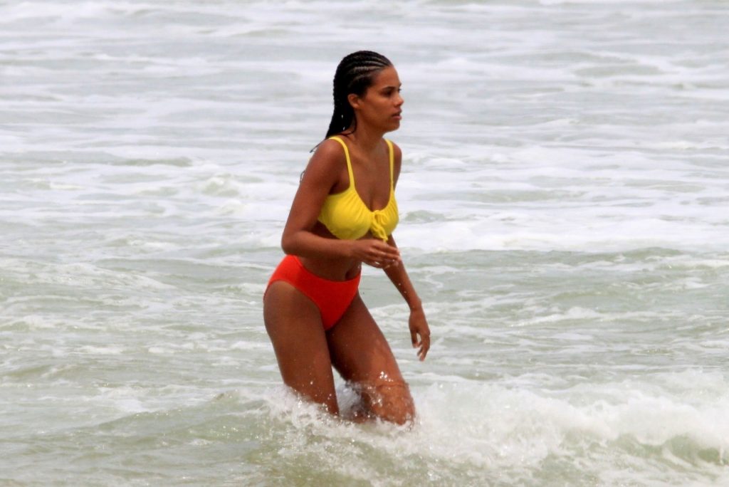 El actor francés Vincent Cassel y su esposa Tina Kunakey disfrutan de la compañía mutua bajo el sol de Río de Janeiro, 01/02/2020. Tina, con un top de bikini amarillo, se da un chapuzón en el agua antes de volver a la arena para recostarse con su esposo Vincent.