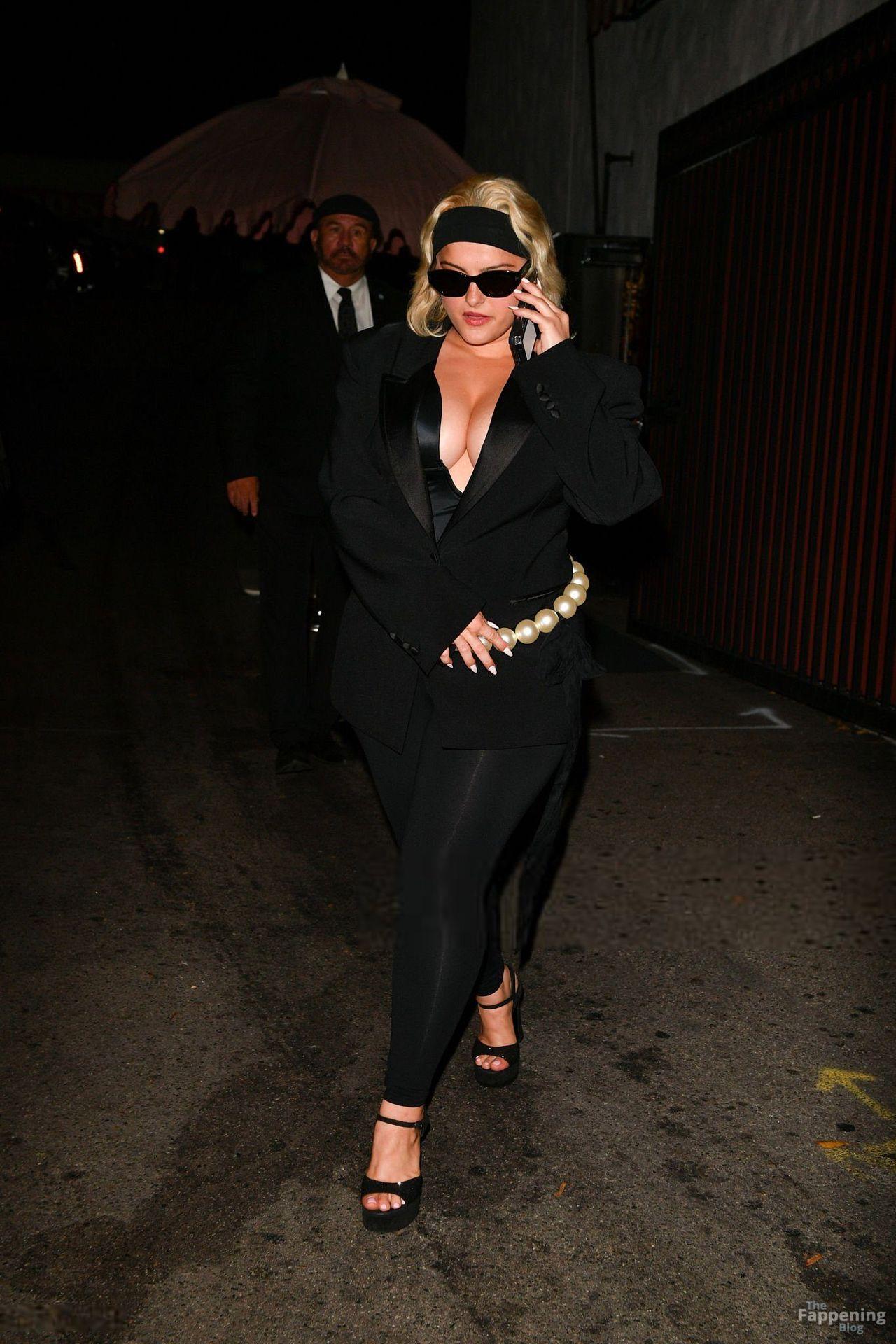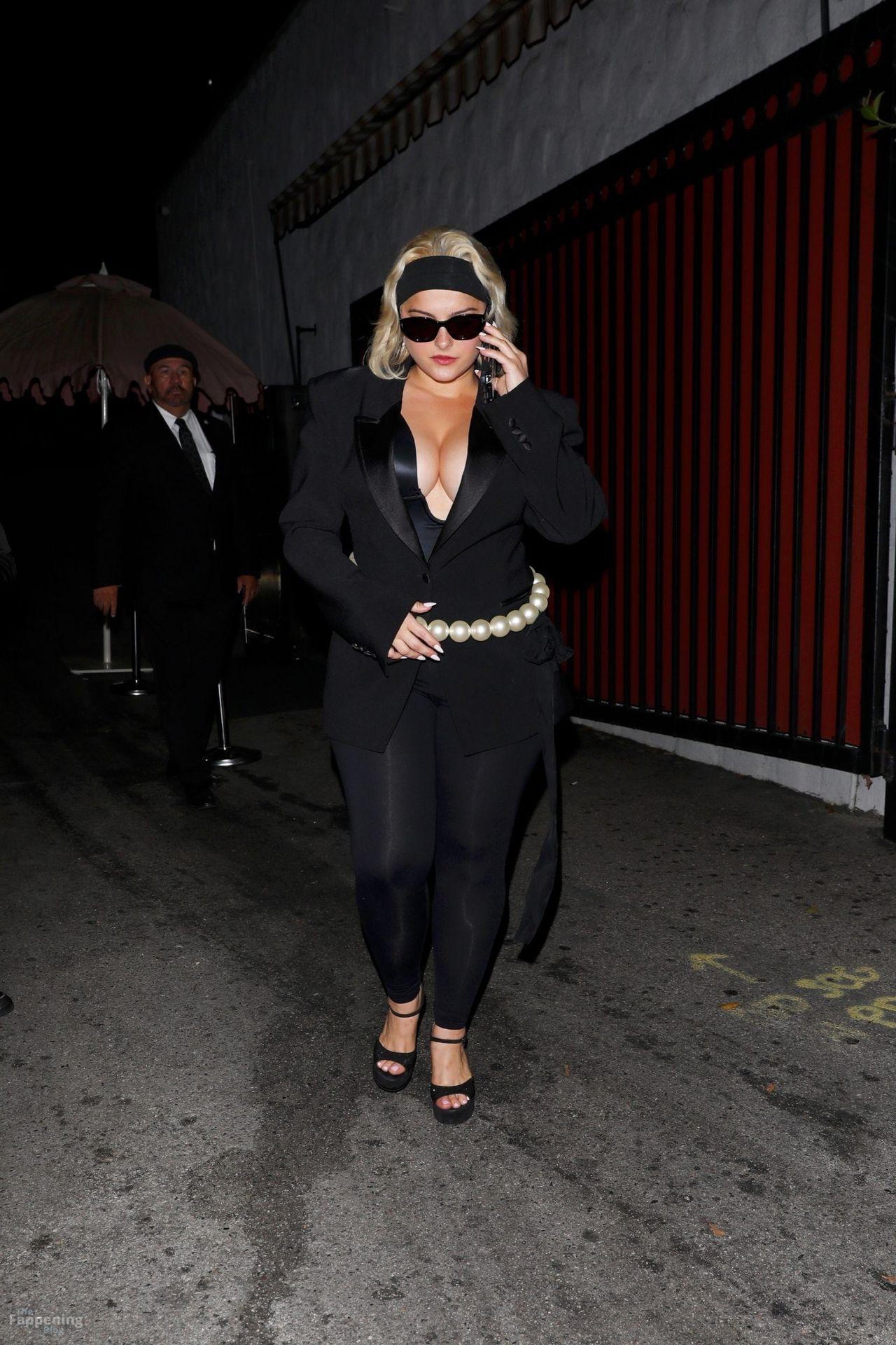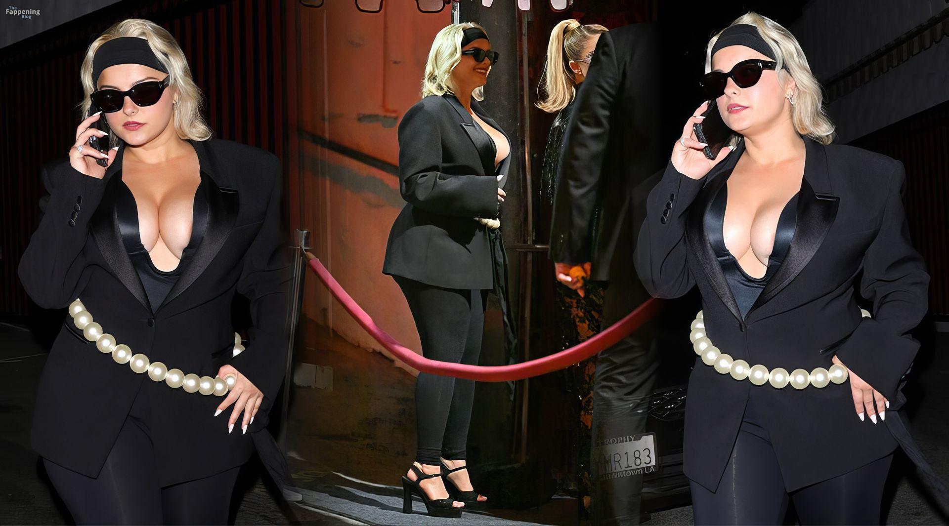 La cantante Bebe Rexha fue la dueña de la fiesta de Cara Delevingne, luciendo un body de satén profundo, mostrando sus grandes pechos.