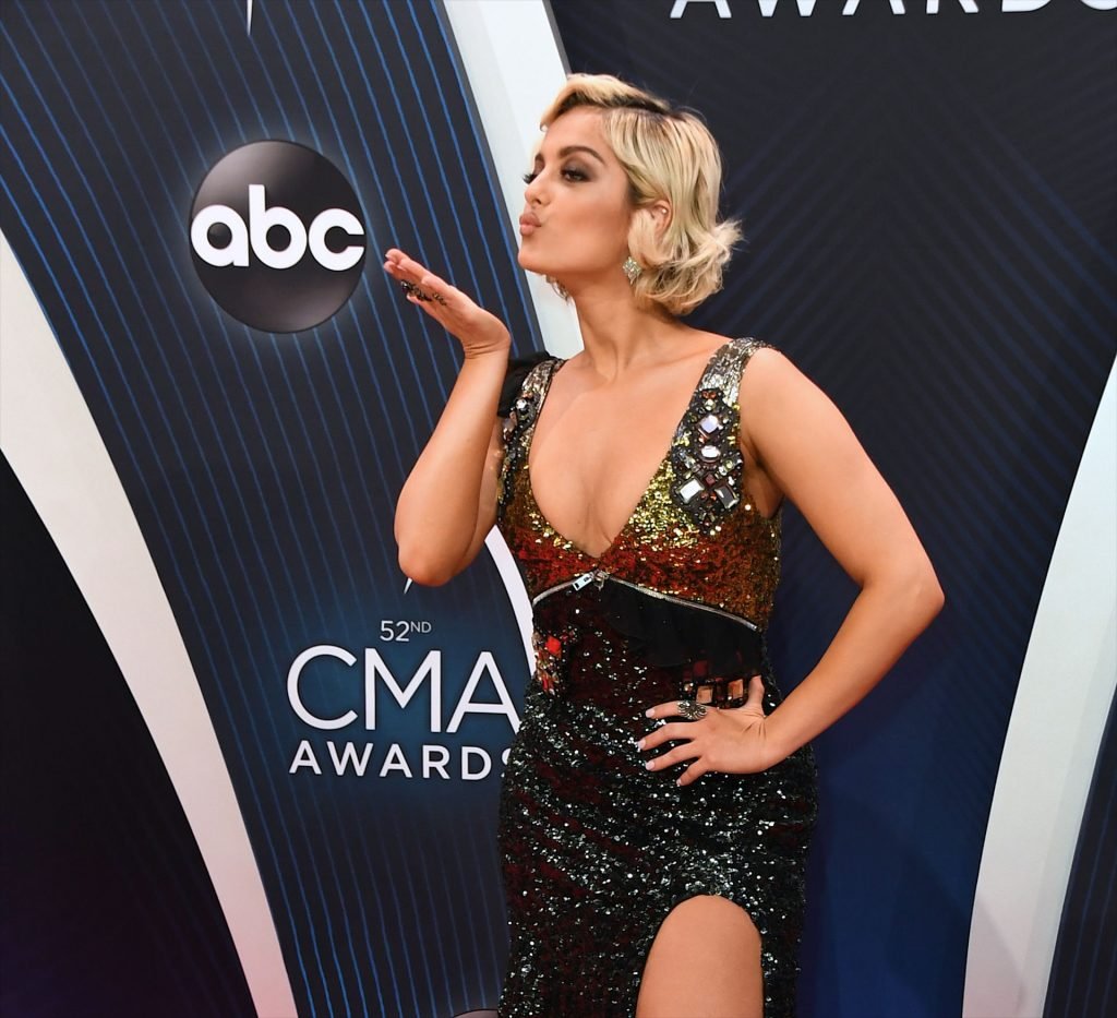 Singer Bebe Rexha mostró su escote en la 52ª Entrega Anual de los Premios de la Asociación de Música Country, presentada por Carrie Underwood y Brad Paisley y celebrada en el Bridgestone Arena en Nashville, 14/11/2018.