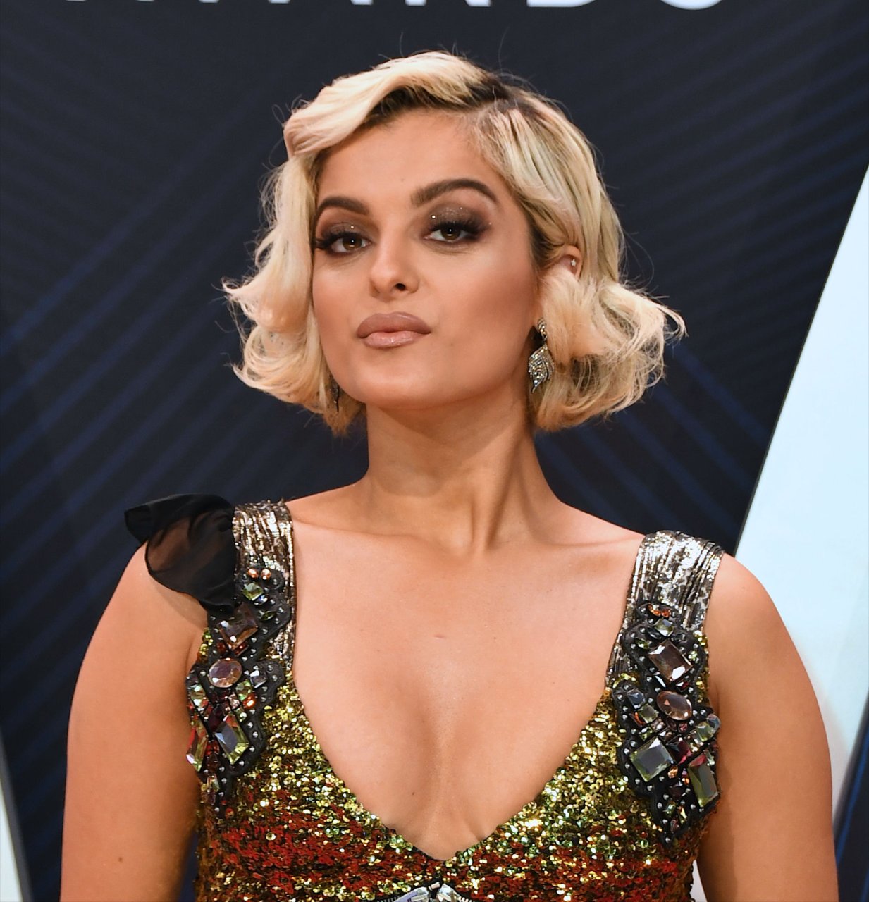 Singer Bebe Rexha mostró su escote en la 52ª Entrega Anual de los Premios de la Asociación de Música Country, presentada por Carrie Underwood y Brad Paisley y celebrada en el Bridgestone Arena en Nashville, 14/11/2018.