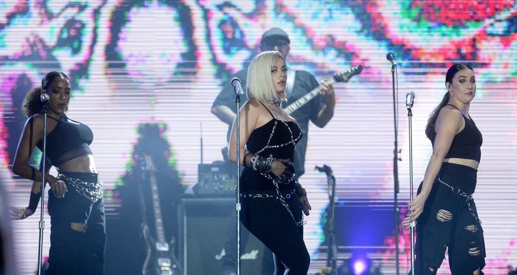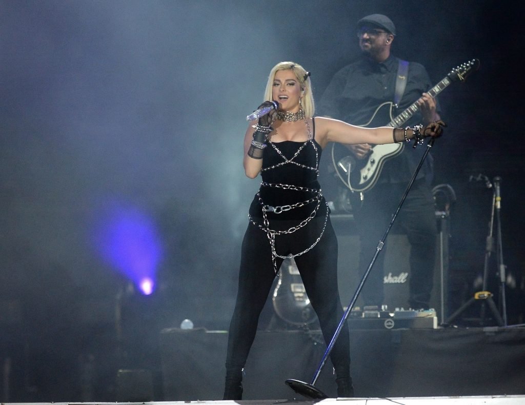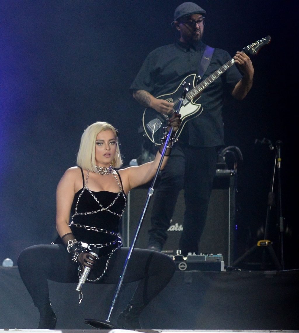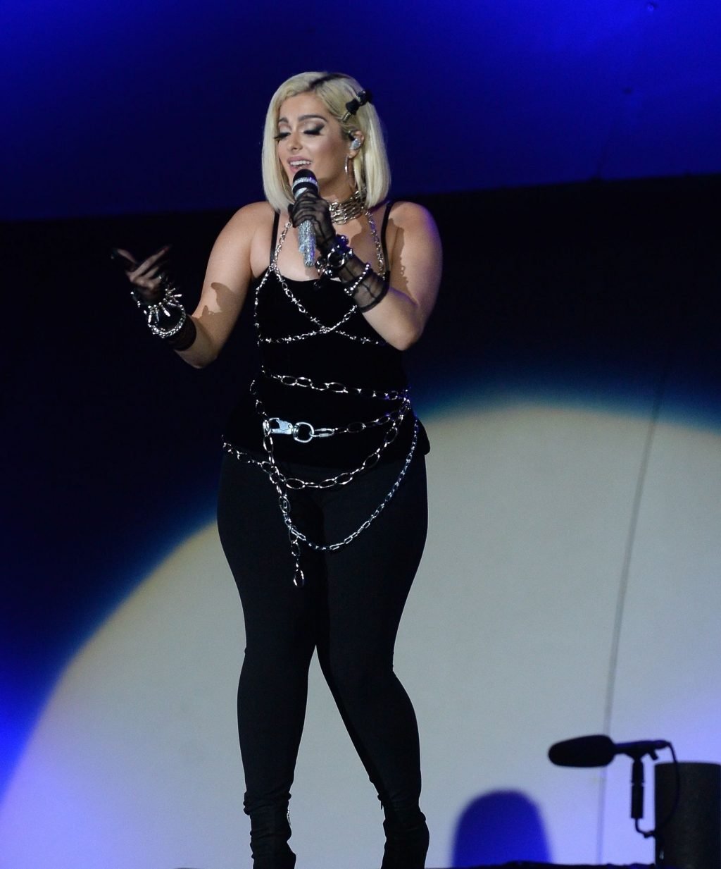La cantante curvilínea Bebe Rexha actúa durante el Festival de Música Rock in Rio 2019 en Río de Janeiro, Brasil, 27/09/2019.