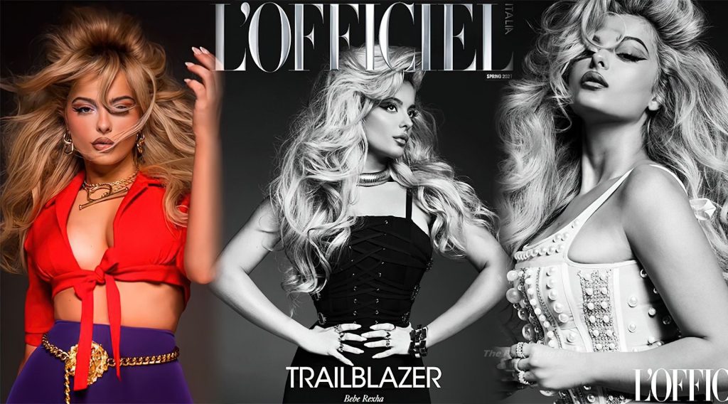 La graciosa cantante Bebe Rexha muestra sus curvas con varios vestidos mientras posa en una sesión fotográfica realizada por Steven Gomillion para la edición de primavera 2021 de la Revista L’Officiel Italia.