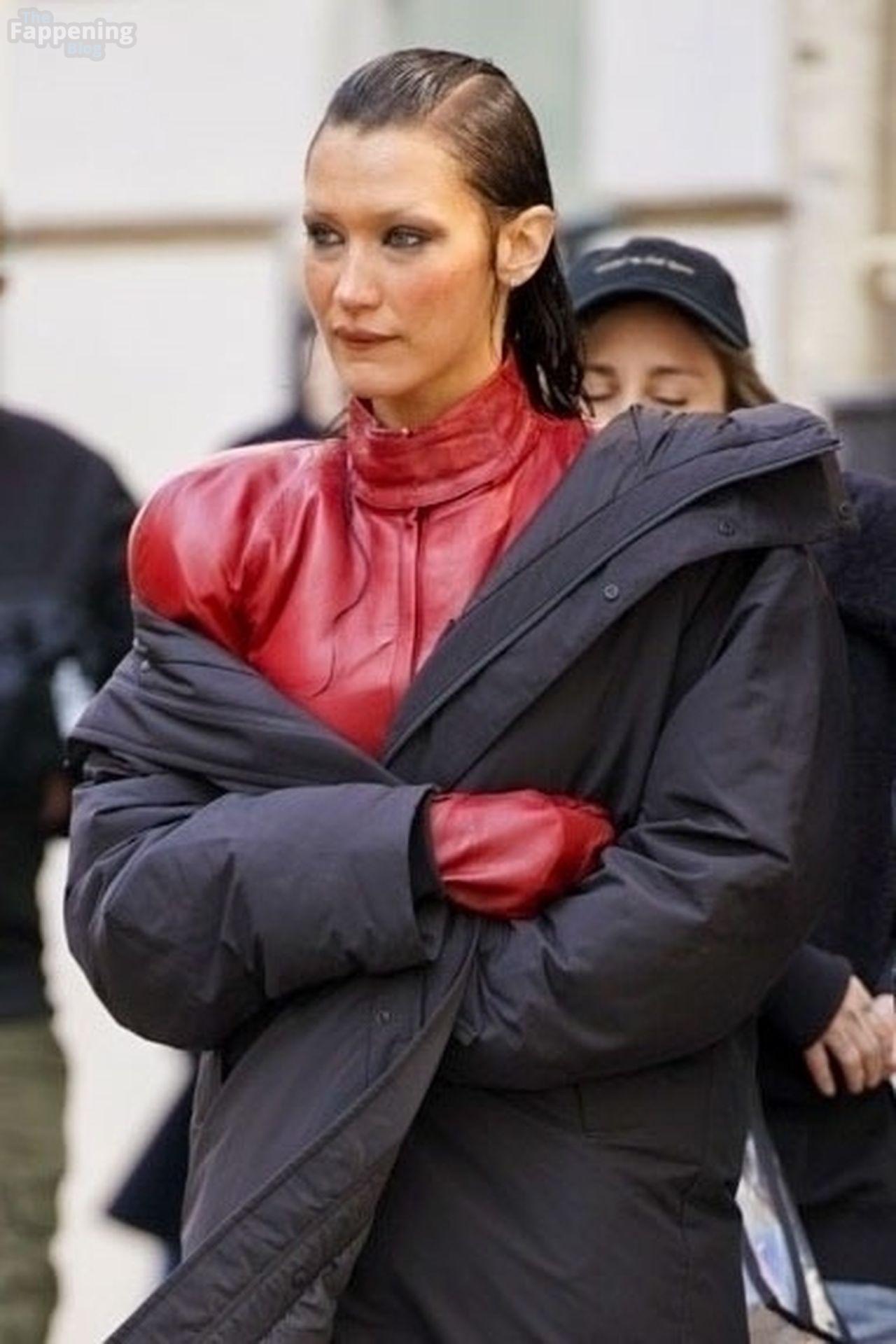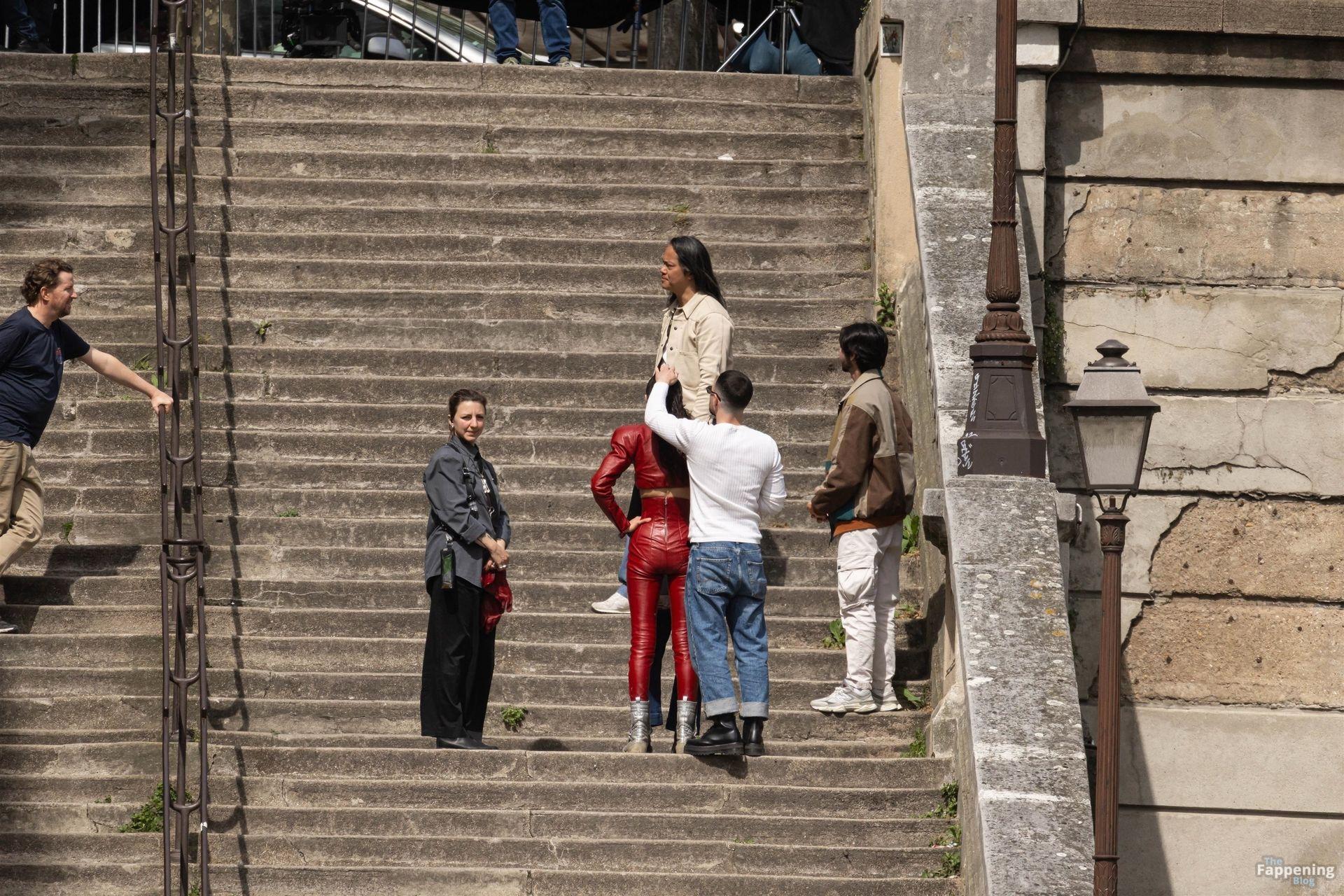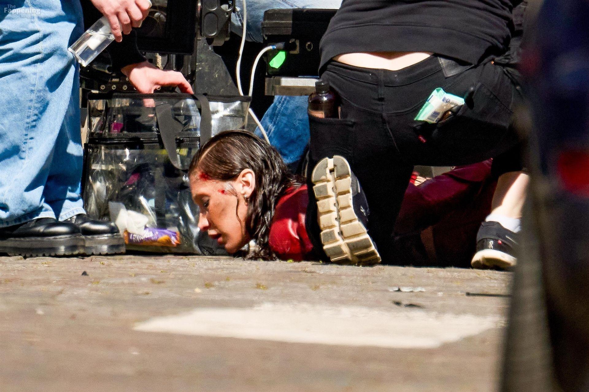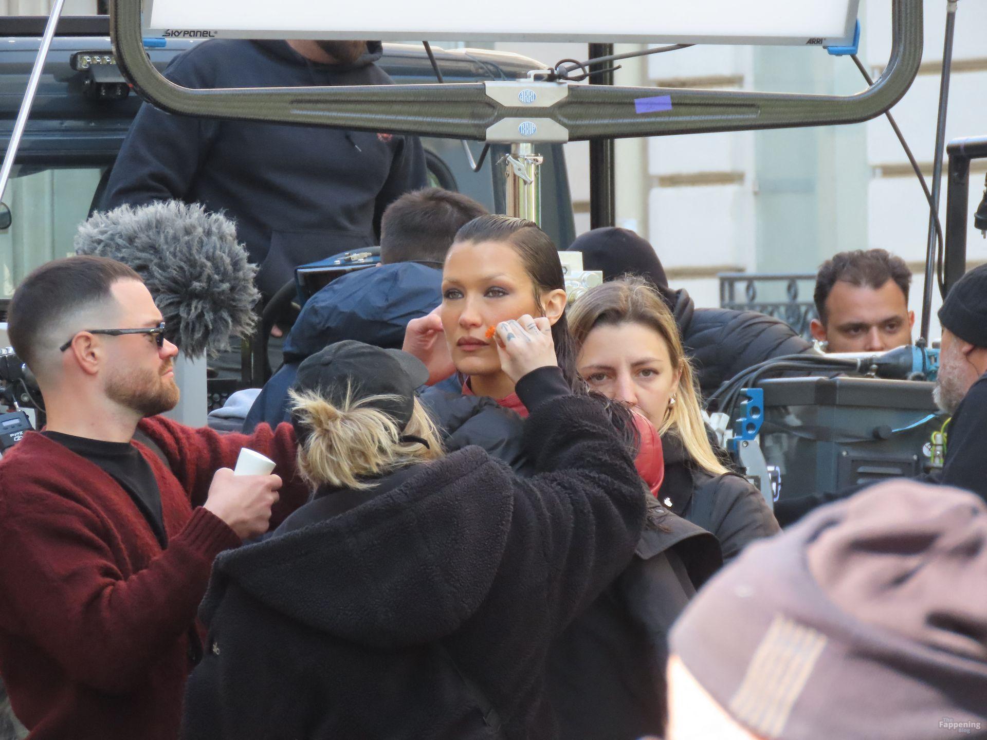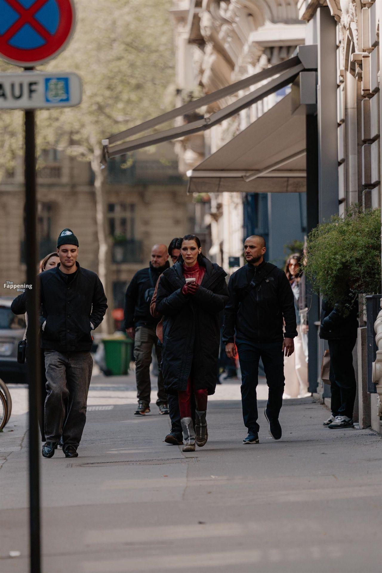 Bella Hadid es fotografiada en París, luciendo un mono de cuero rojo fuego y montando una moto. Después de ese loco accidente con el maniquí, está interpretando un papel duro con una fea lesión en la pierna para una escena en la serie “The Beauty” en París, Francia.