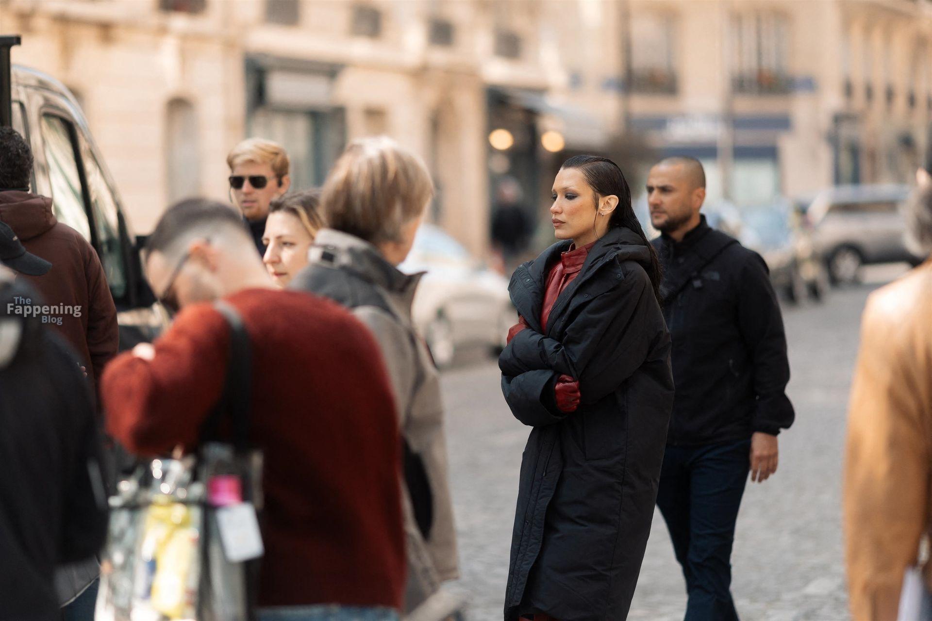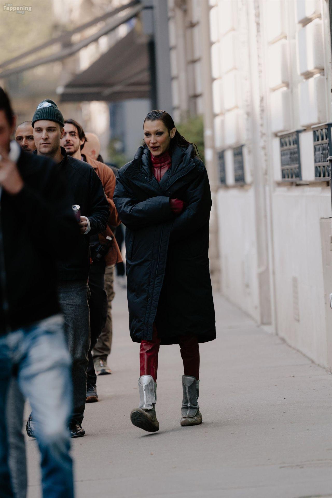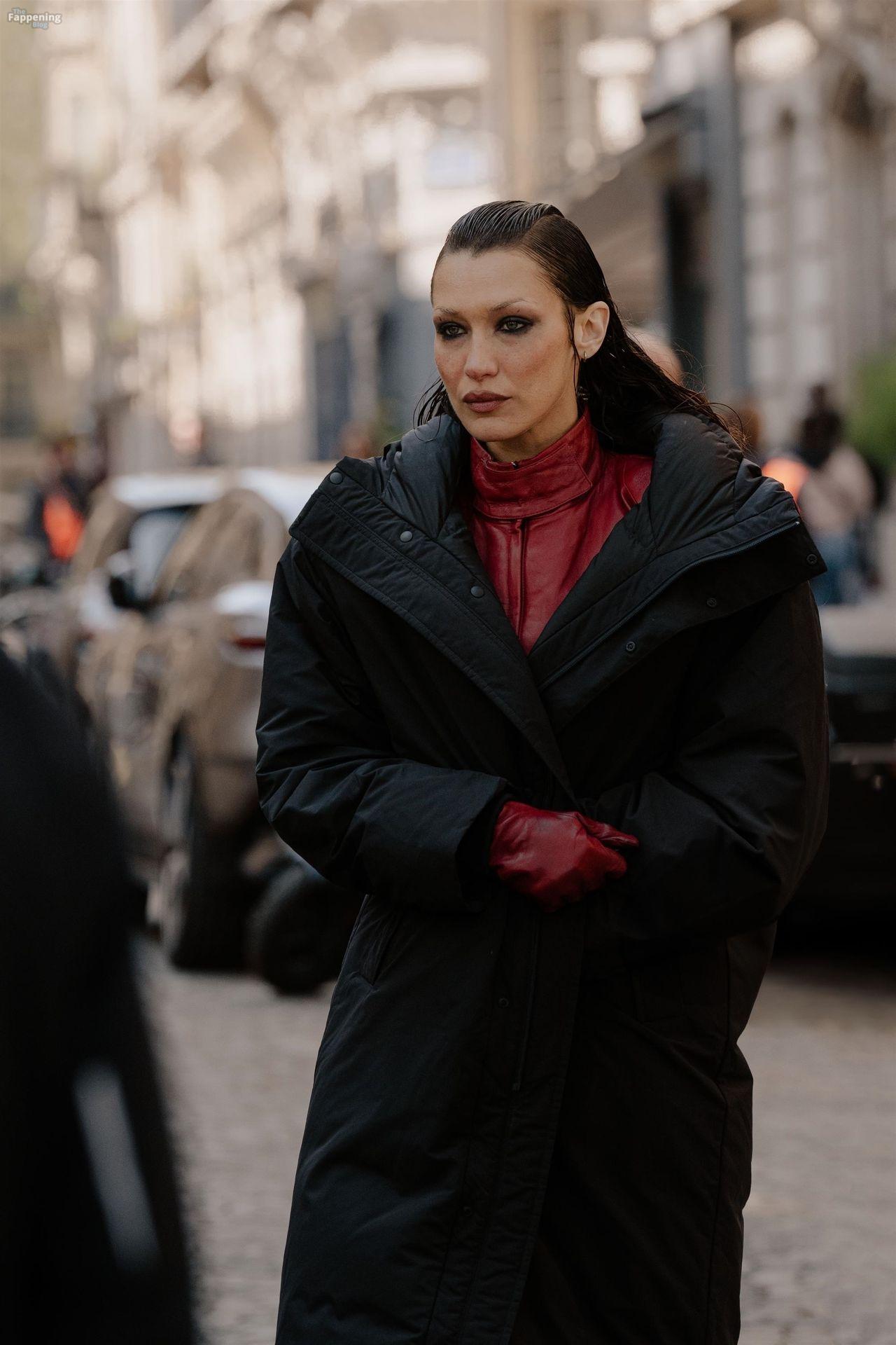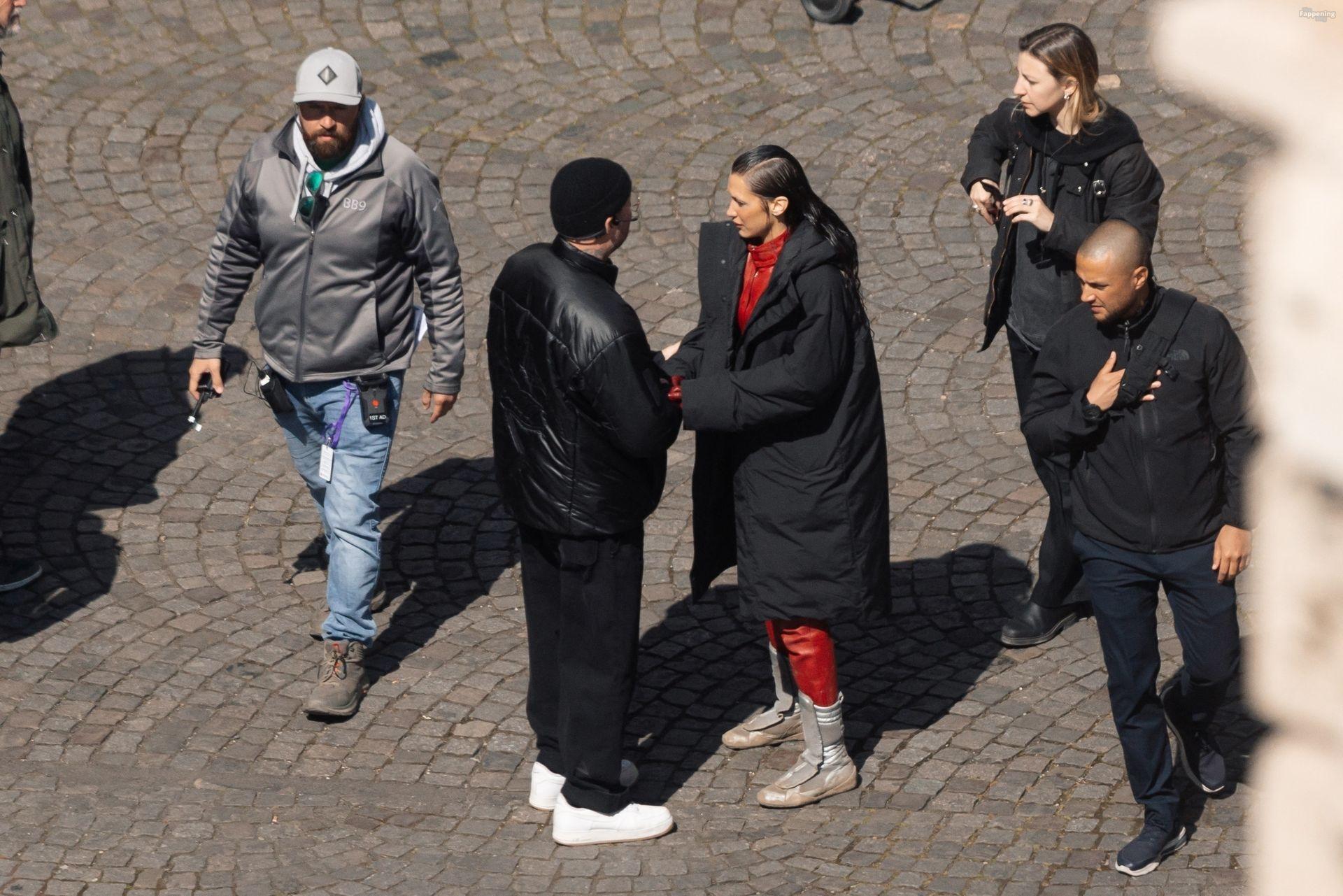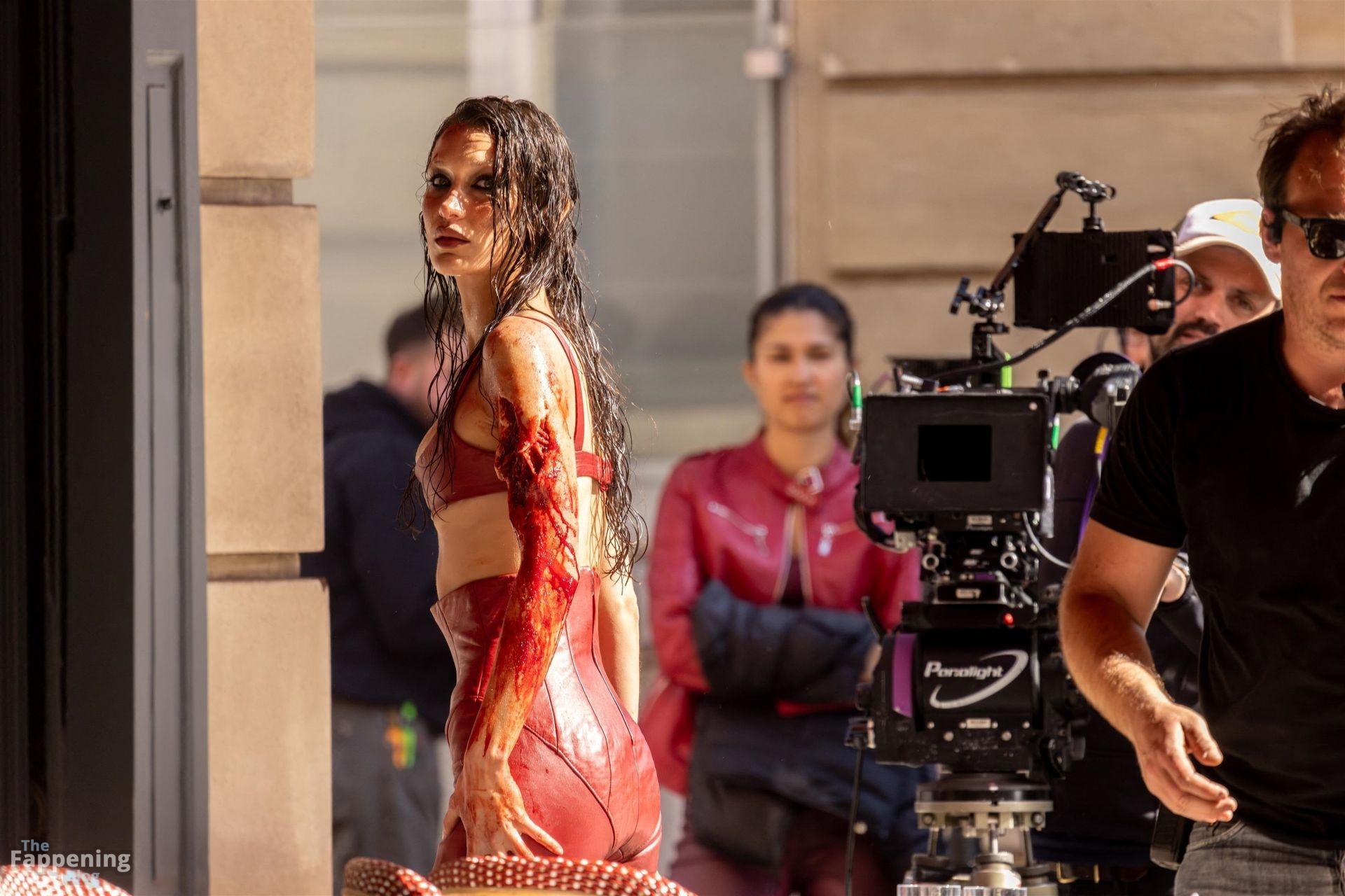 Bella Hadid es fotografiada en París, luciendo un mono de cuero rojo fuego y montando una moto. Después de ese loco accidente con el maniquí, está interpretando un papel duro con una fea lesión en la pierna para una escena en la serie “The Beauty” en París, Francia.