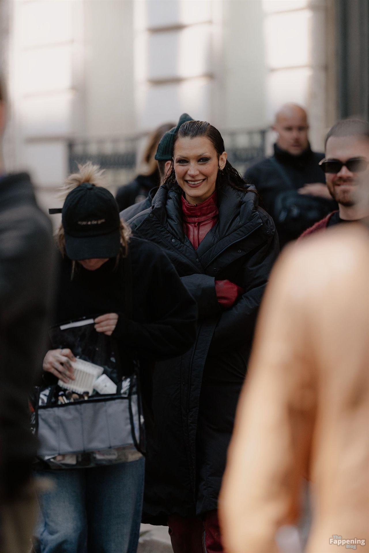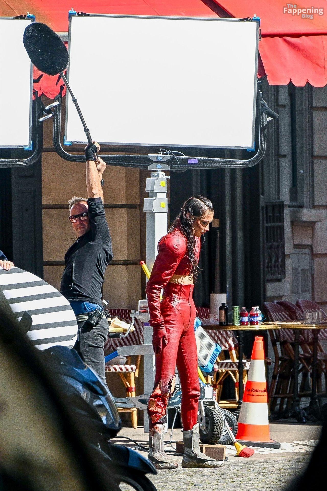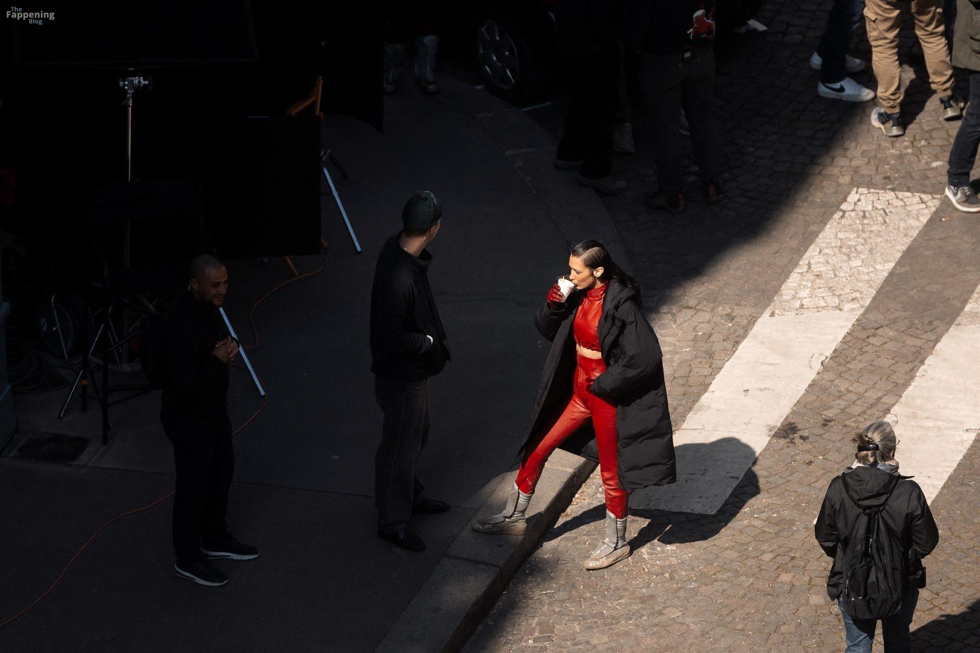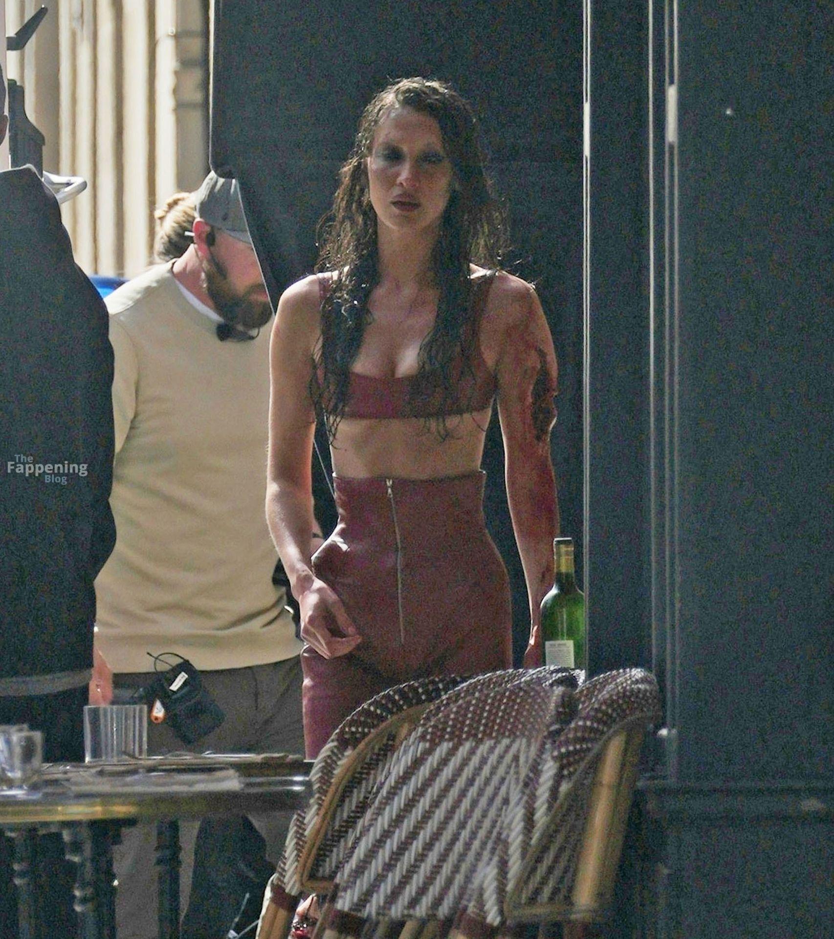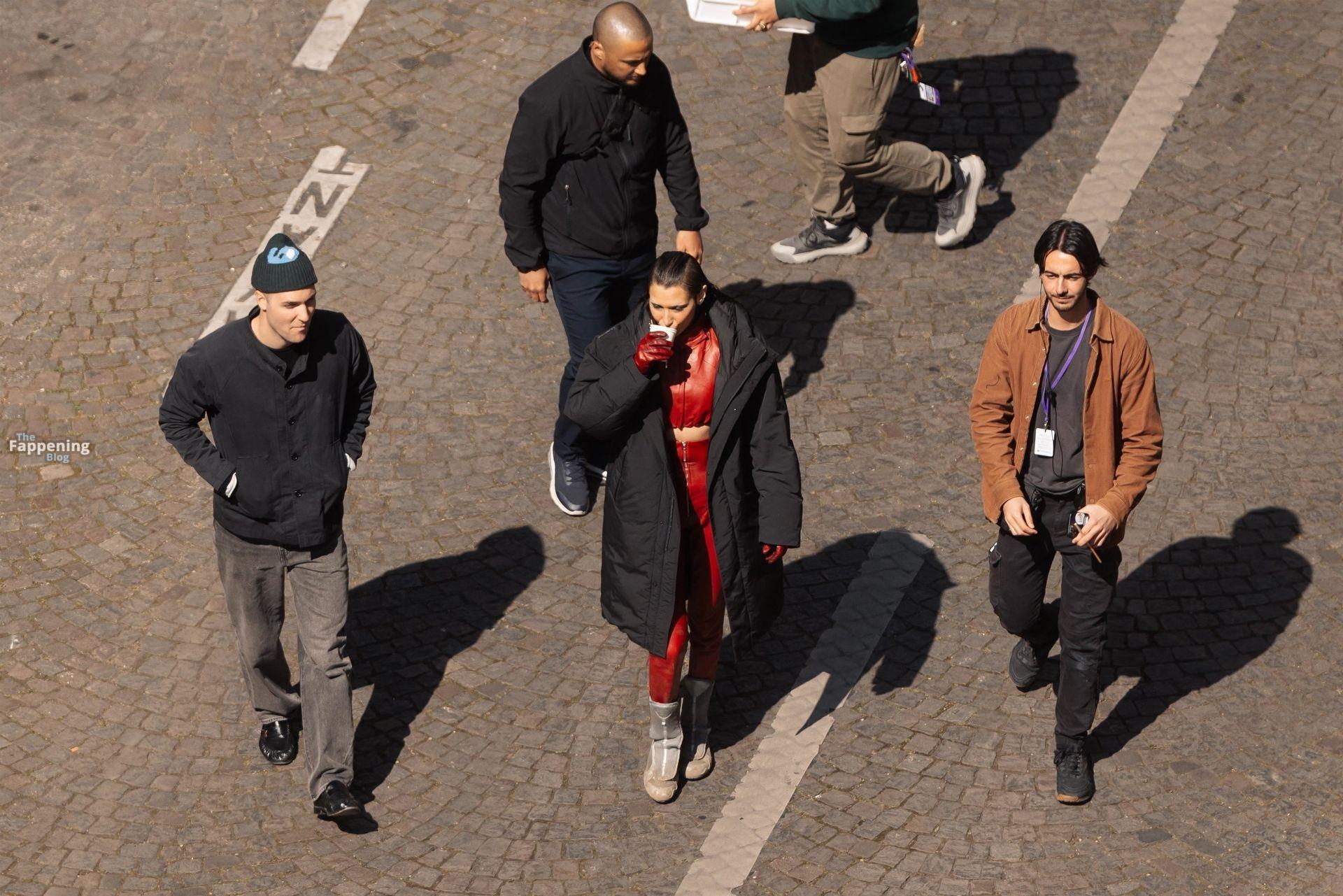 Bella Hadid es fotografiada en París, luciendo un mono de cuero rojo fuego y montando una moto. Después de ese loco accidente con el maniquí, está interpretando un papel duro con una fea lesión en la pierna para una escena en la serie “The Beauty” en París, Francia.