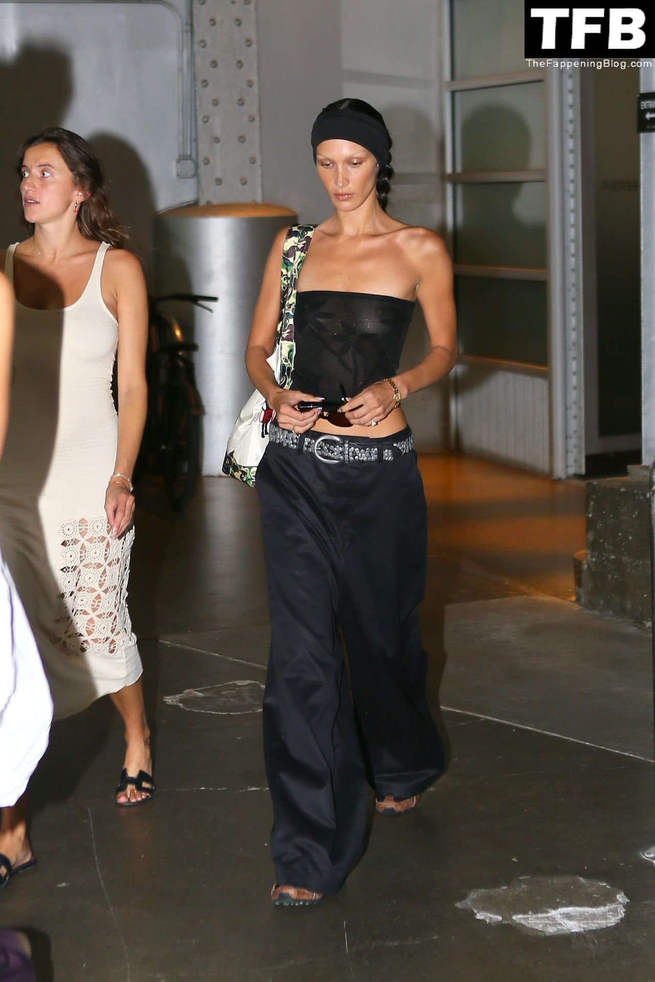 La modelo Bella Hadid fue vista sin sostén saliendo de Pier 59 Studios después de una sesión de fotos en Nueva York, 21/07/2022.