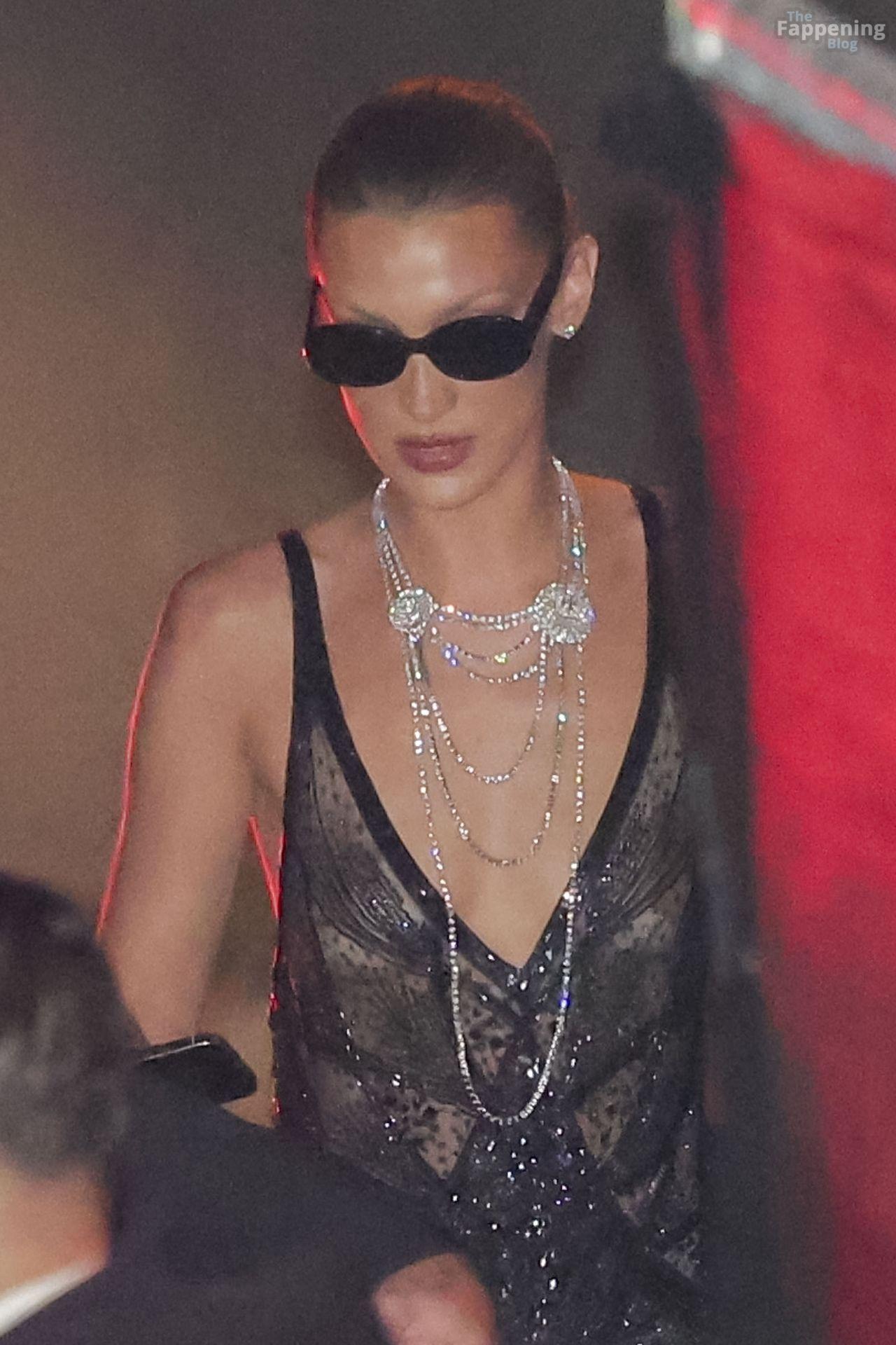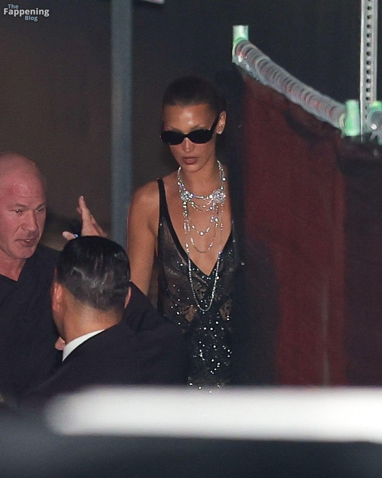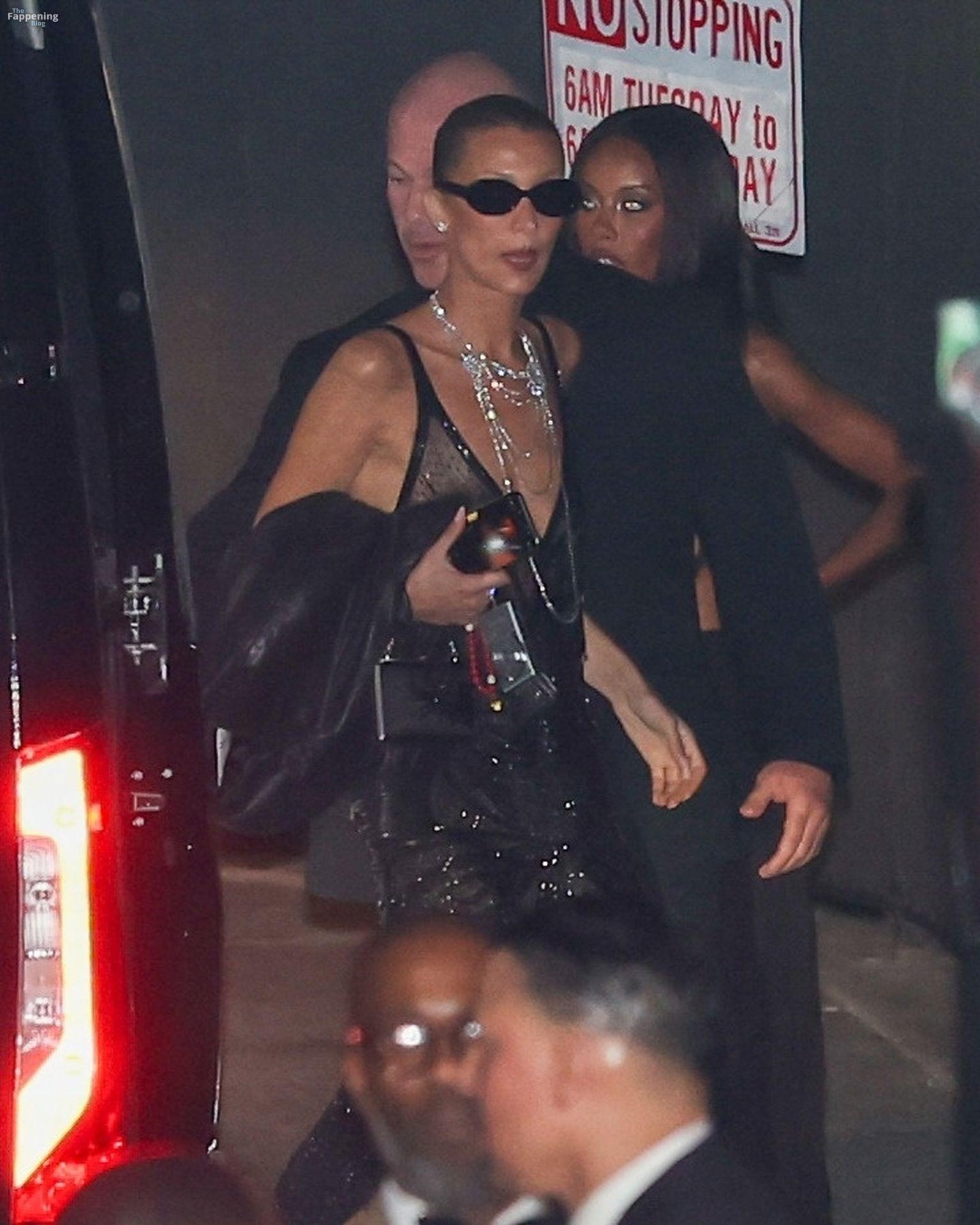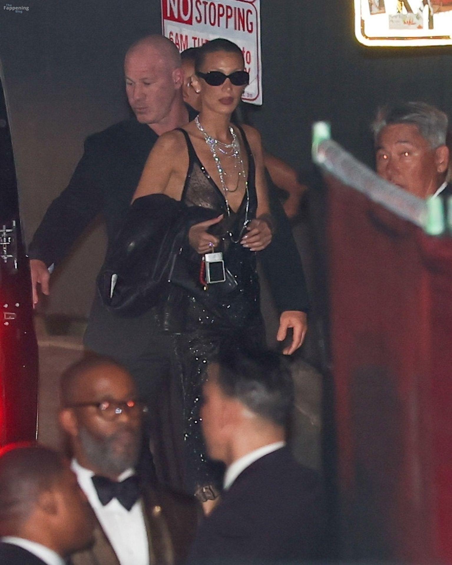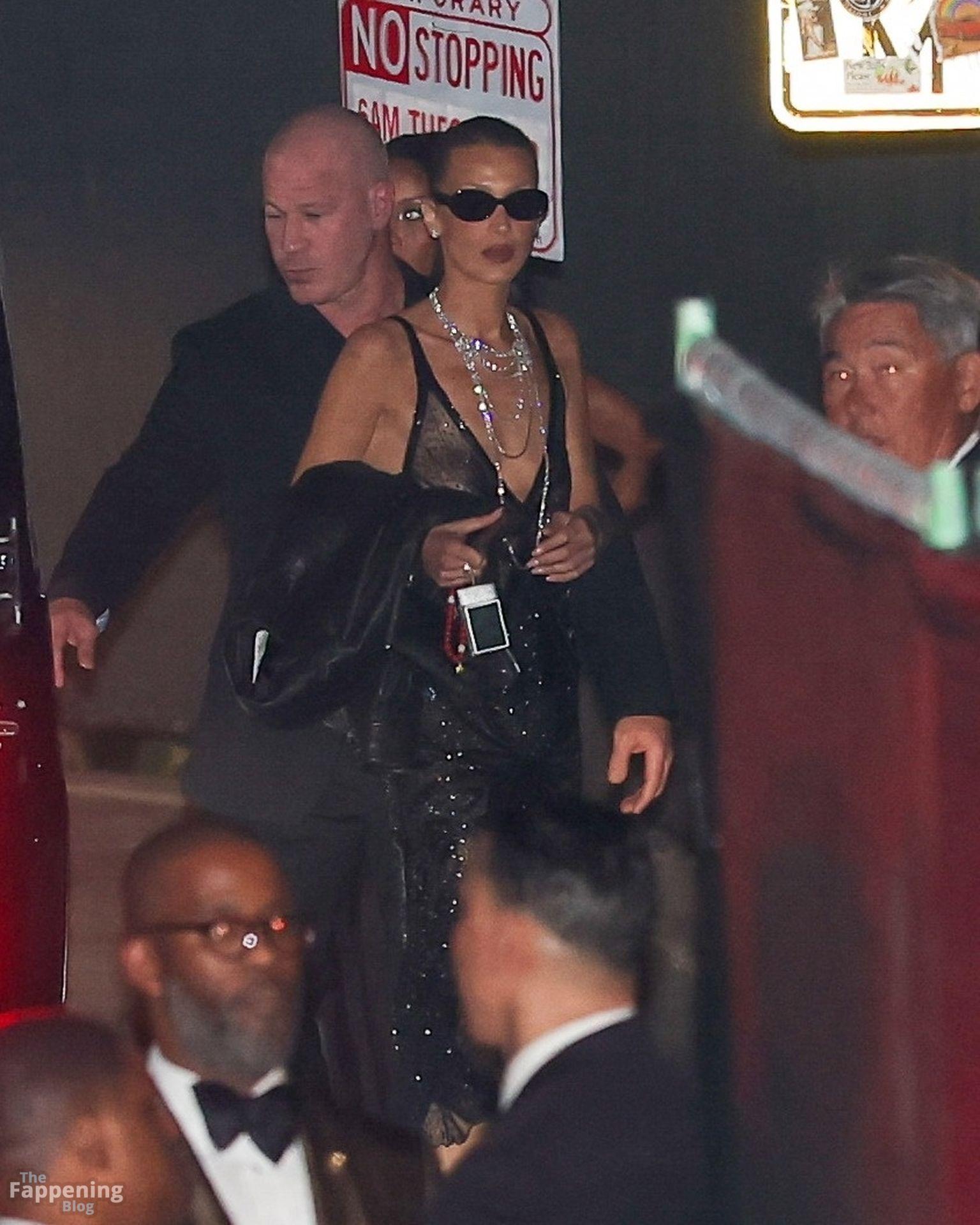 Bella Hadid va sin sostén con un vestido de seda Prada para la fiesta post-Oscars de Beyoncé y Jay Z (22 fotos)