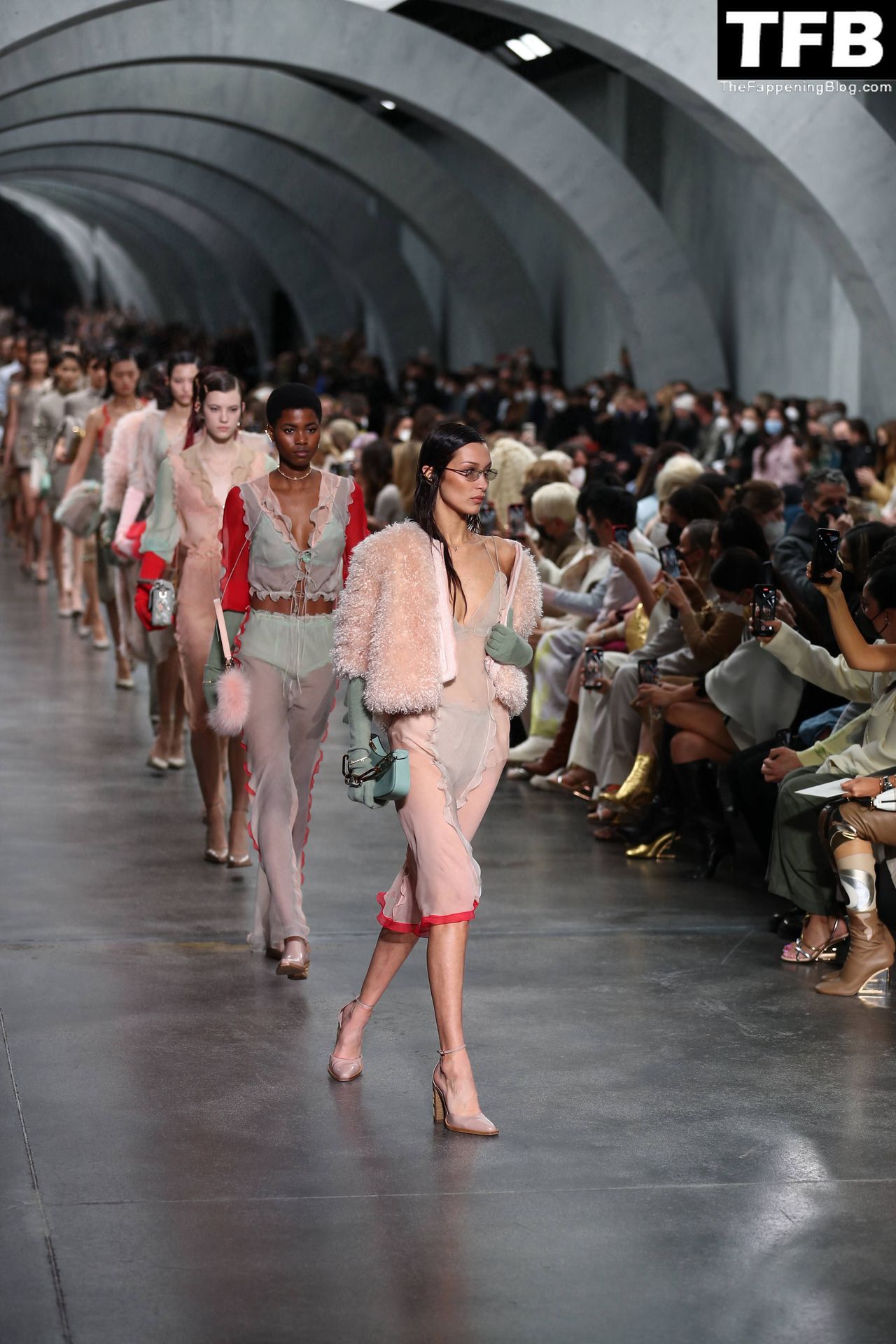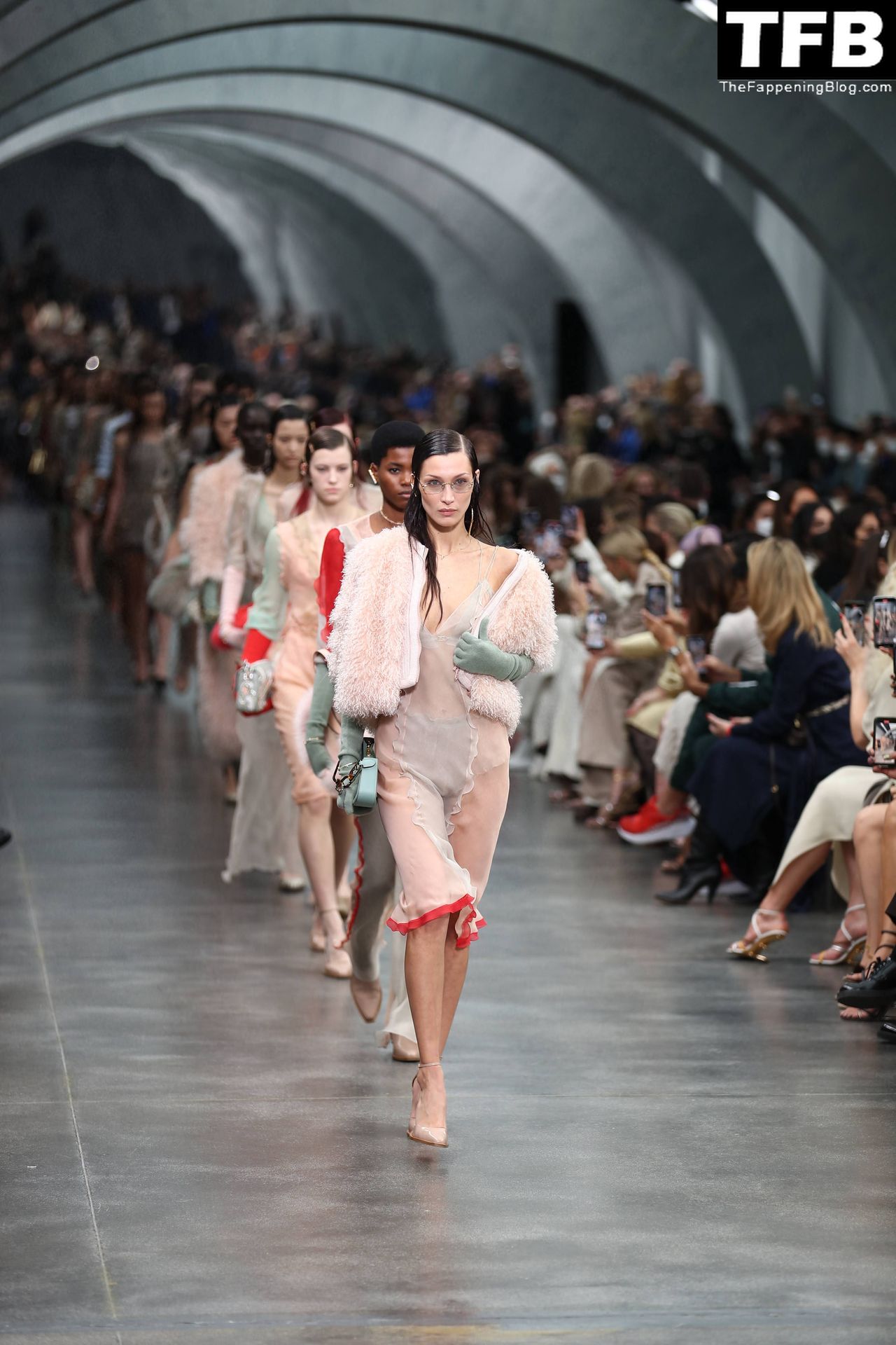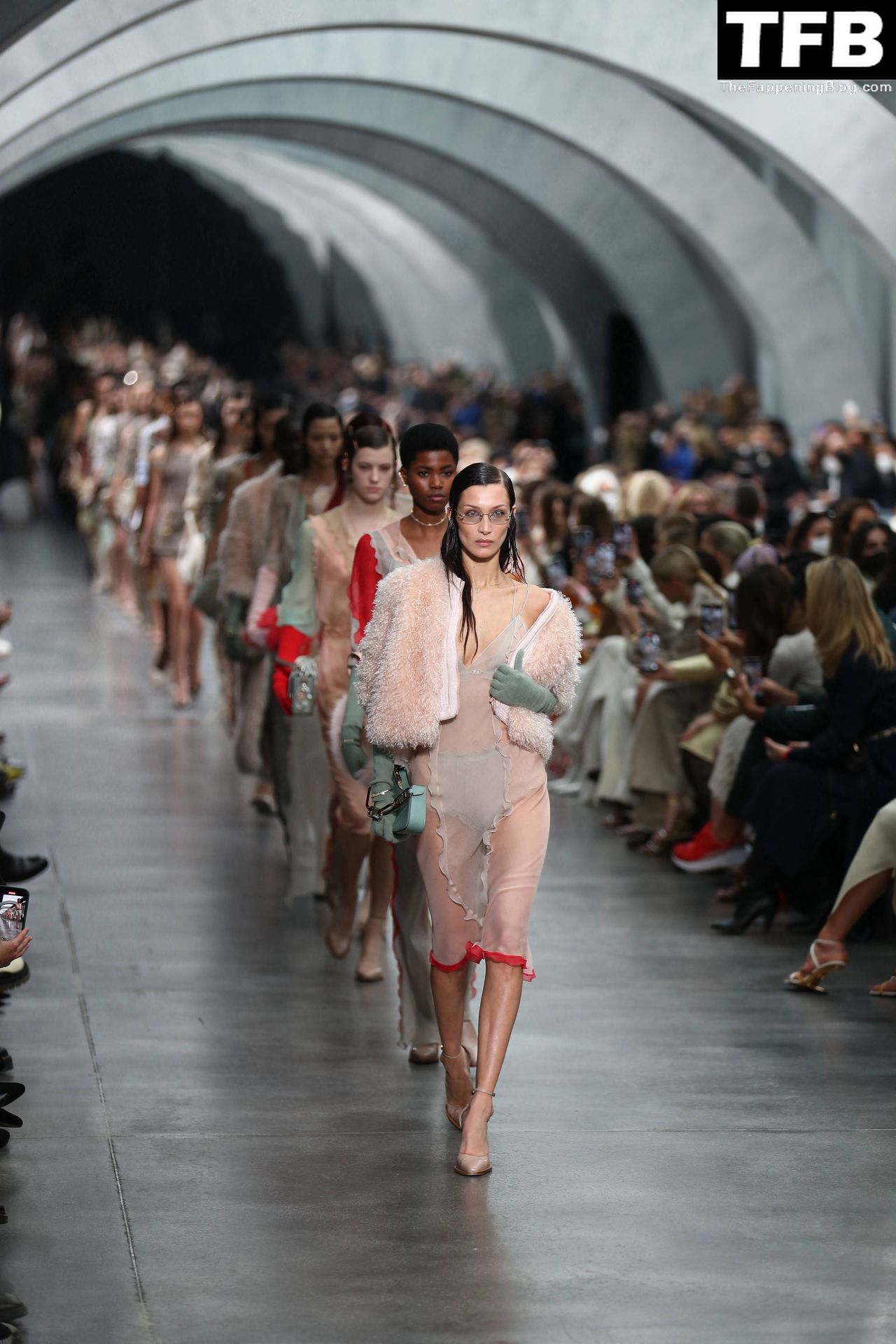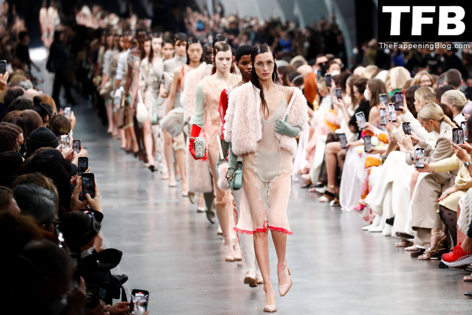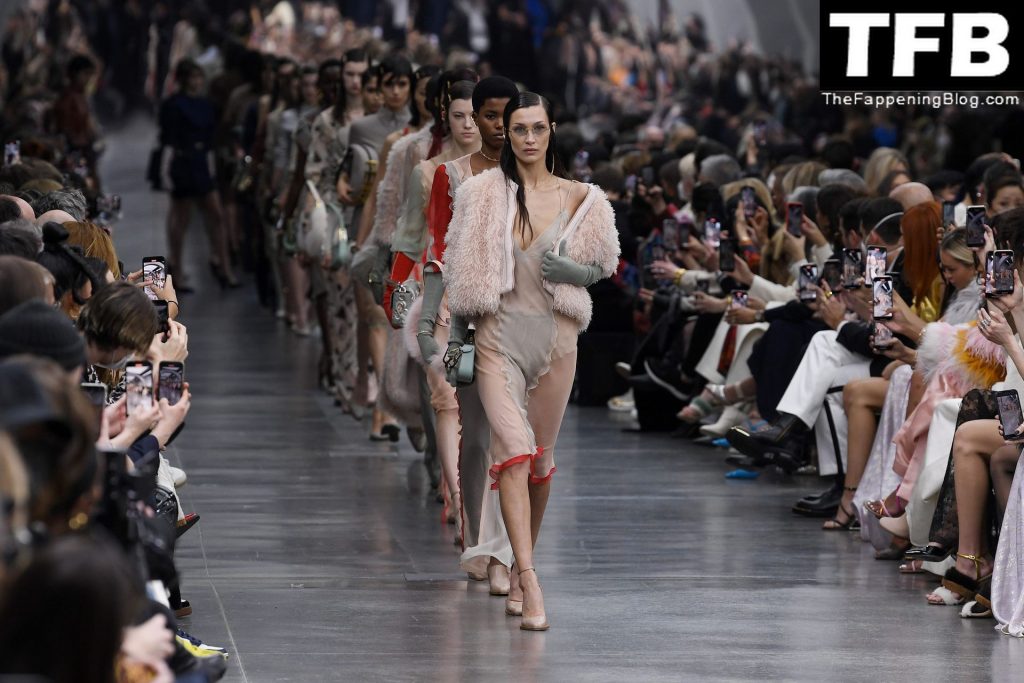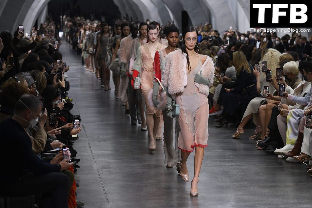 Bella Hadid camina por la pasarela en el desfile de moda de Fendi durante la Semana de la Moda de Milán Otoño/Invierno 2022/2023 en Milán, 23/02/2022.