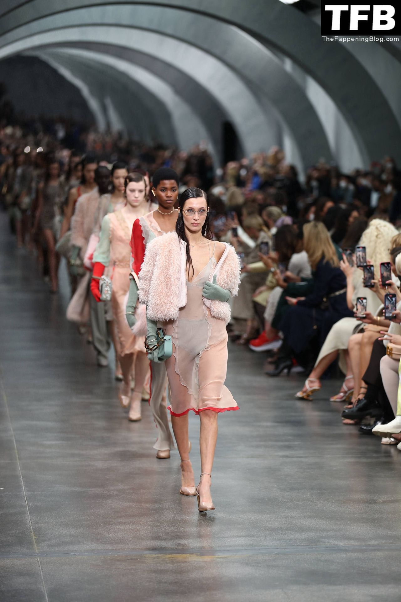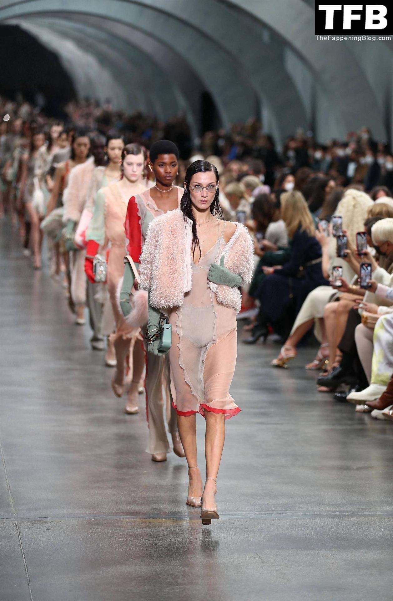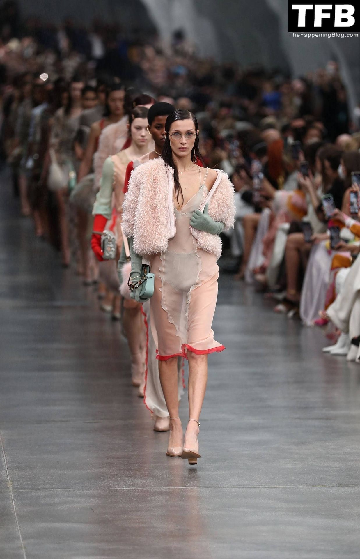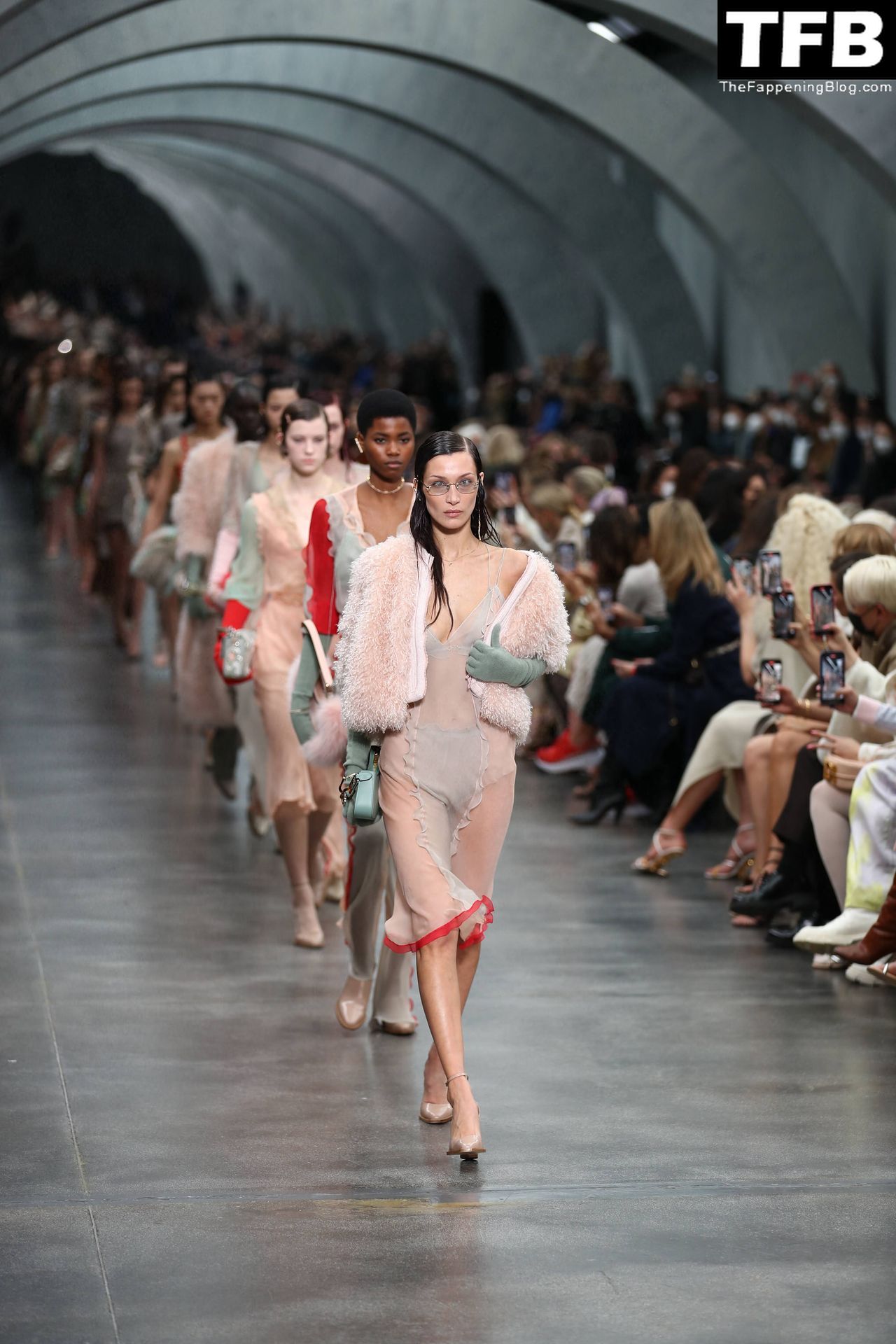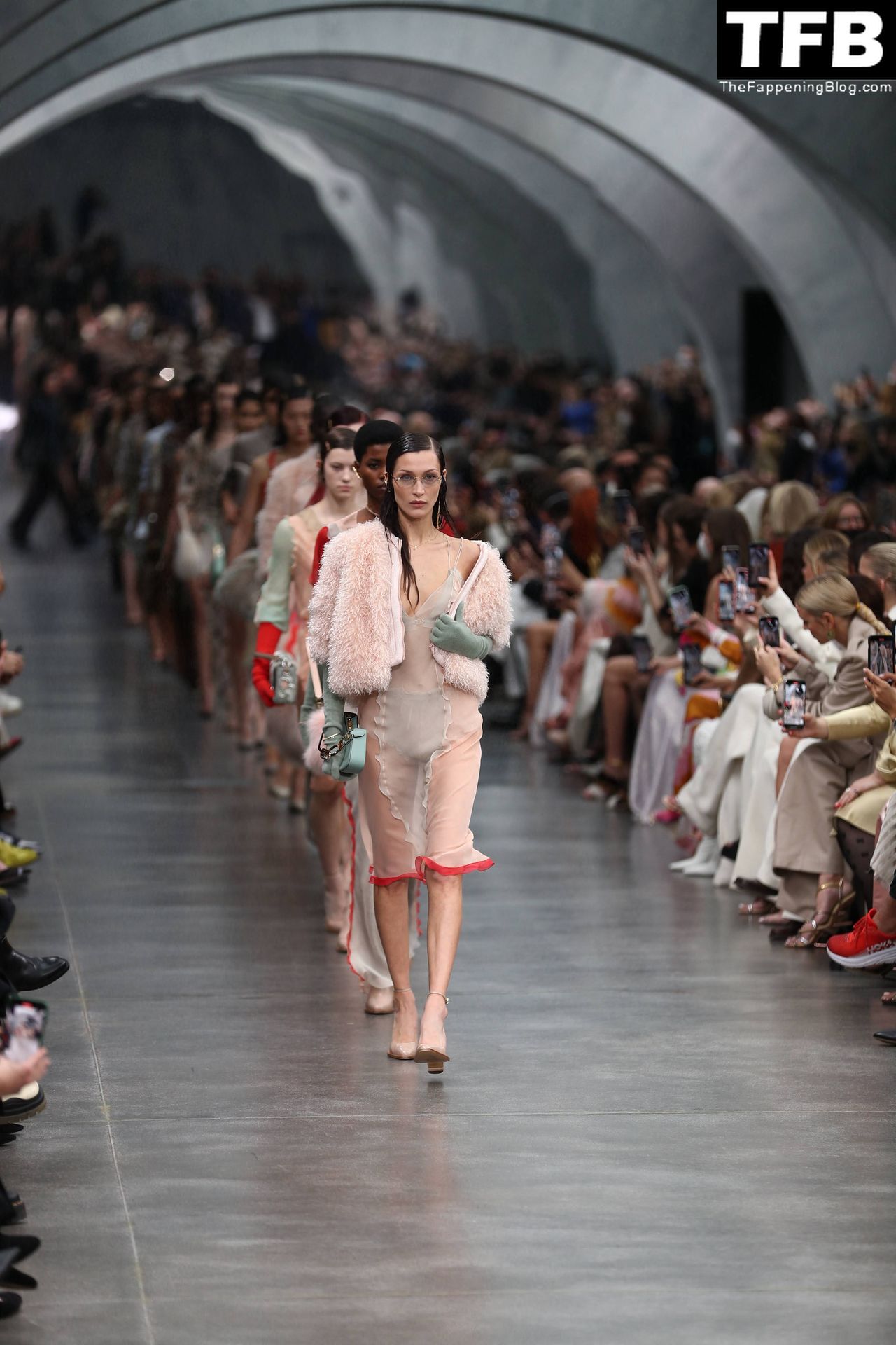 Bella Hadid camina por la pasarela en el desfile de moda de Fendi durante la Semana de la Moda de Milán Otoño/Invierno 2022/2023 en Milán, 23/02/2022.