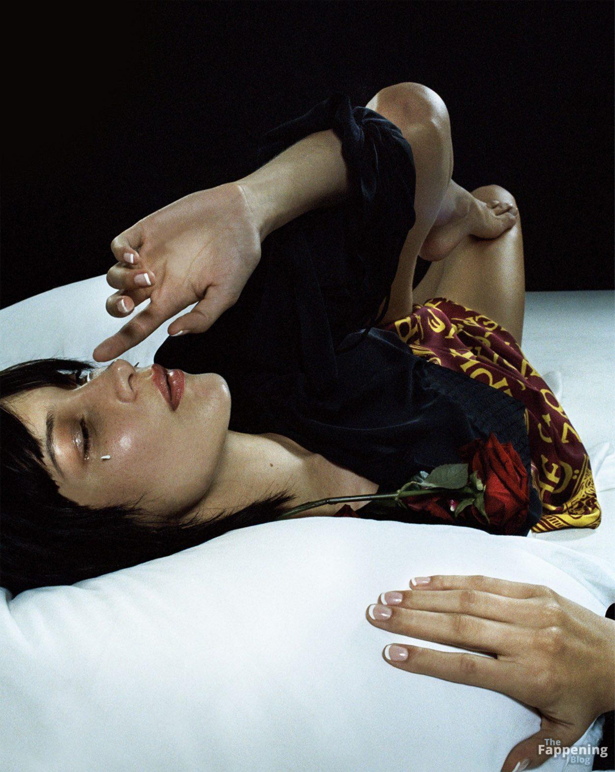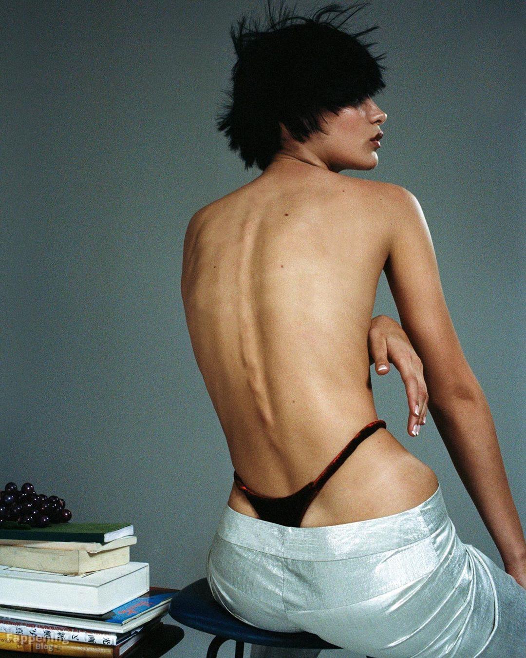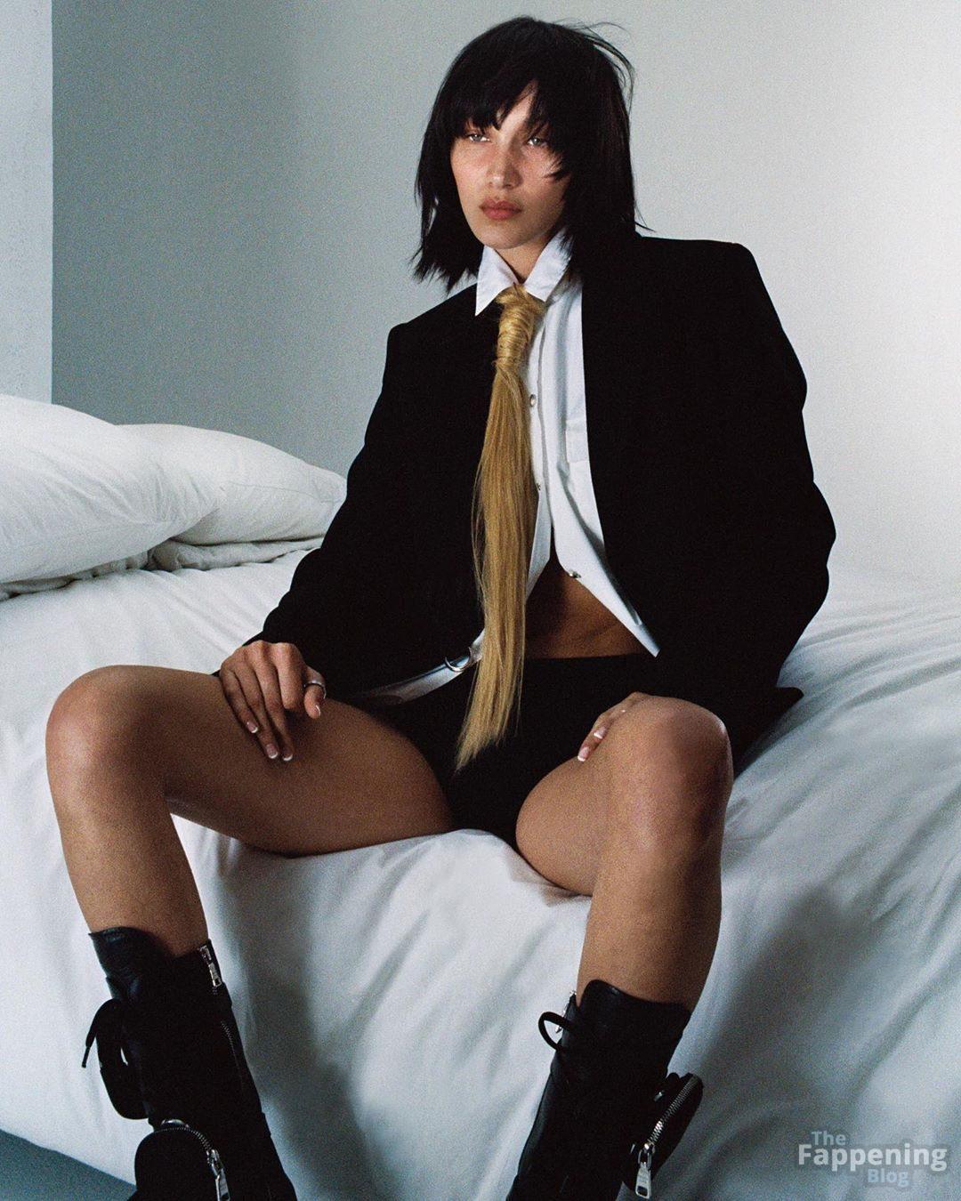 La modelo estadounidense Bella Hadid posa en una sesión caliente para POP Magazine AW19, mostrando su pecho desnudo.