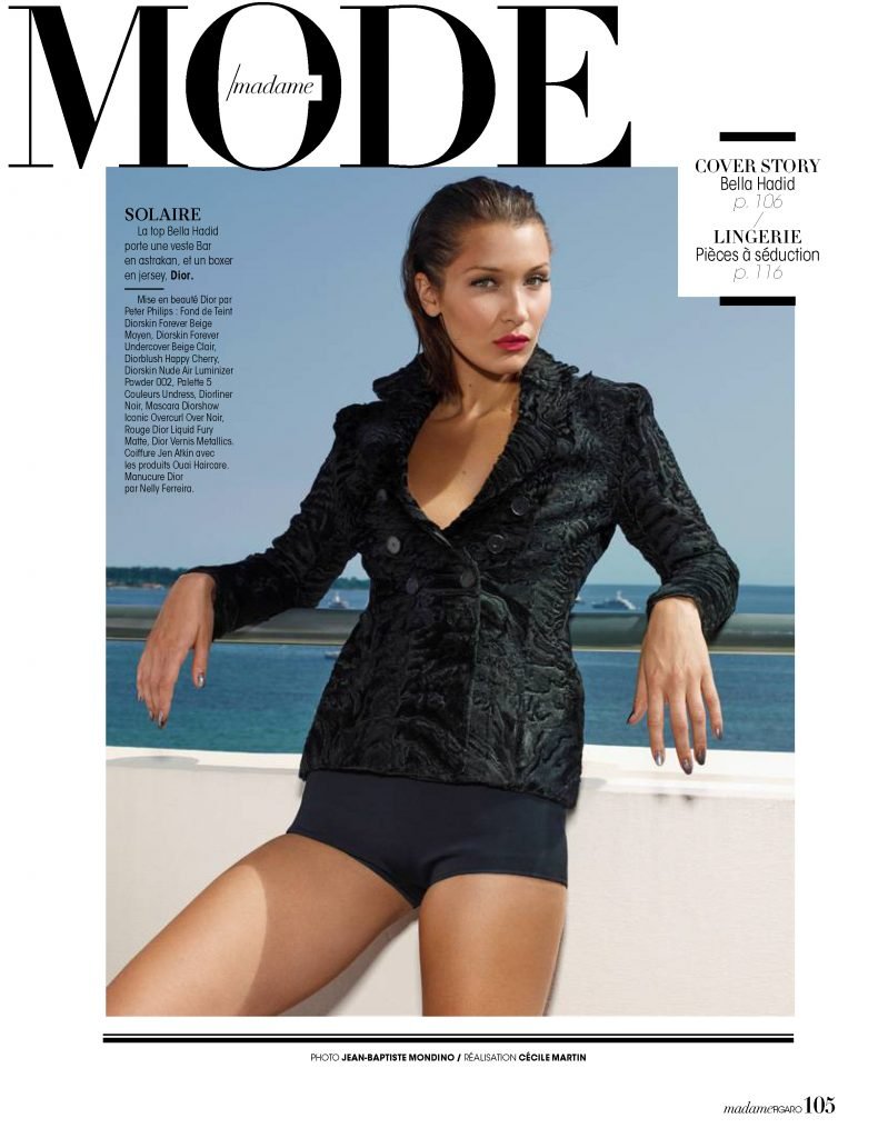 Bella Hadid está en la revista Madame Figaro, 27/10/2017. Fotos de Jean-Baptiste Mondino. Isabella Hadid es una supermodelo estadounidense de moda, estrella de reality tv, actriz. Edad – 21 años.