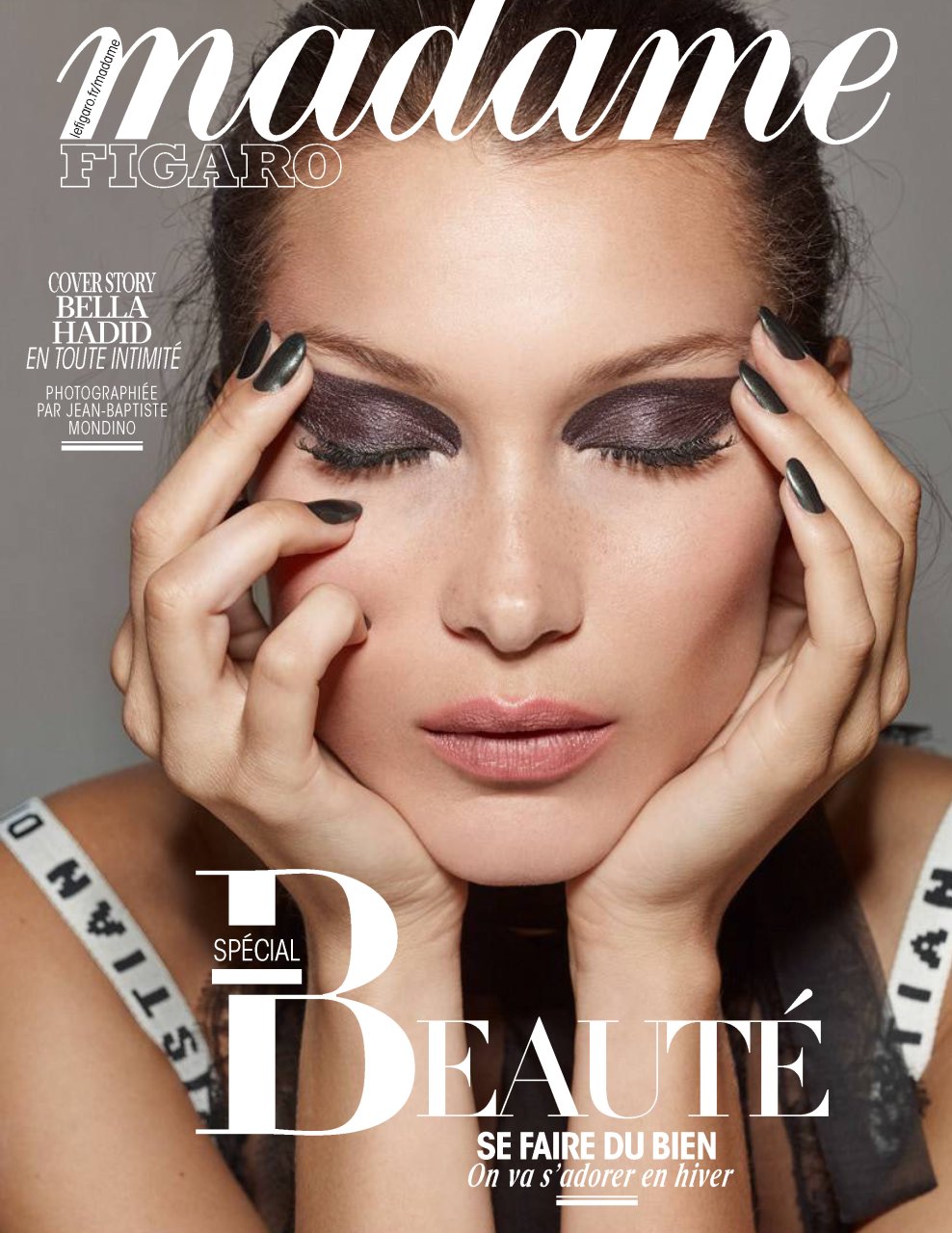 Bella Hadid está en la revista Madame Figaro, 27/10/2017. Fotos de Jean-Baptiste Mondino. Isabella Hadid es una supermodelo estadounidense de moda, estrella de reality tv, actriz. Edad – 21 años.