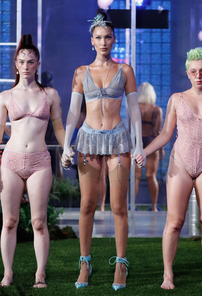 Supermodelo Bella Hadid (21) camina por la pasarela en el desfile Savage x Fenty de la Semana de la Moda de Nueva York en Brooklyn Navy Yard, Ciudad de Nueva York, 12/09/2018.