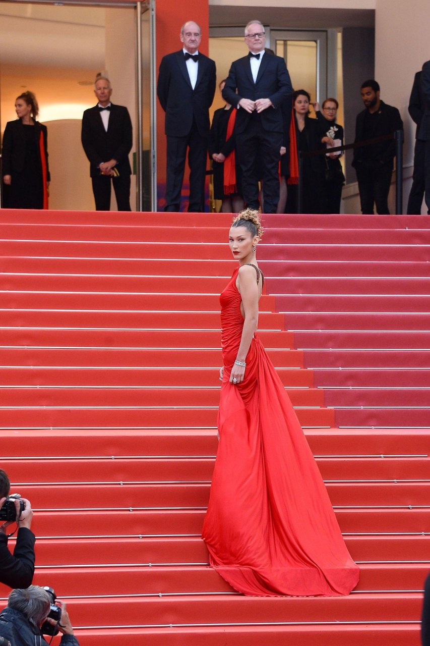 Model Bella Hadid fue vista con un vestido rojo asistiendo al estreno de “Dolor Y Gloria” durante el 72º Festival de Cine de Cannes en Cannes, Francia, 17/05/2019.