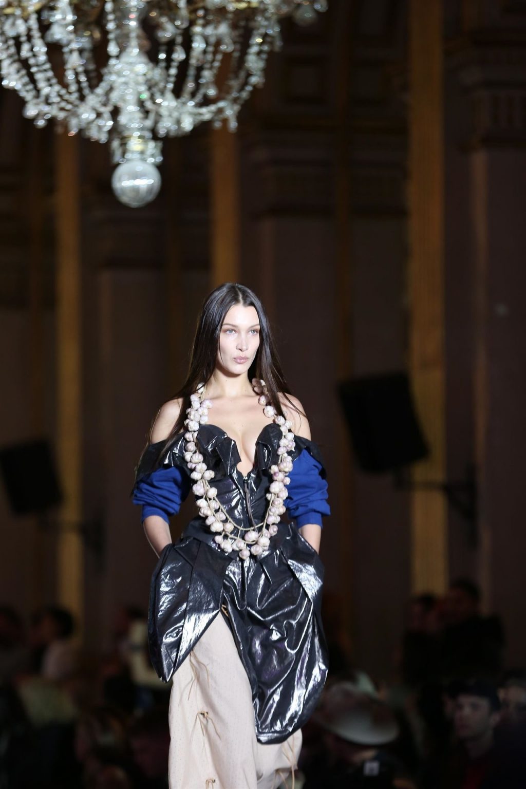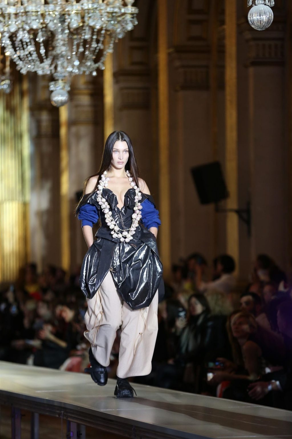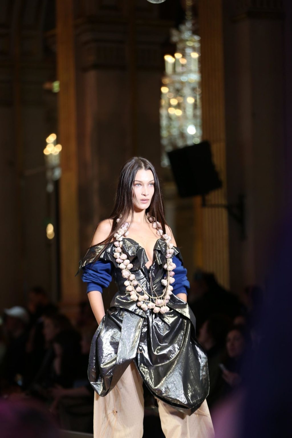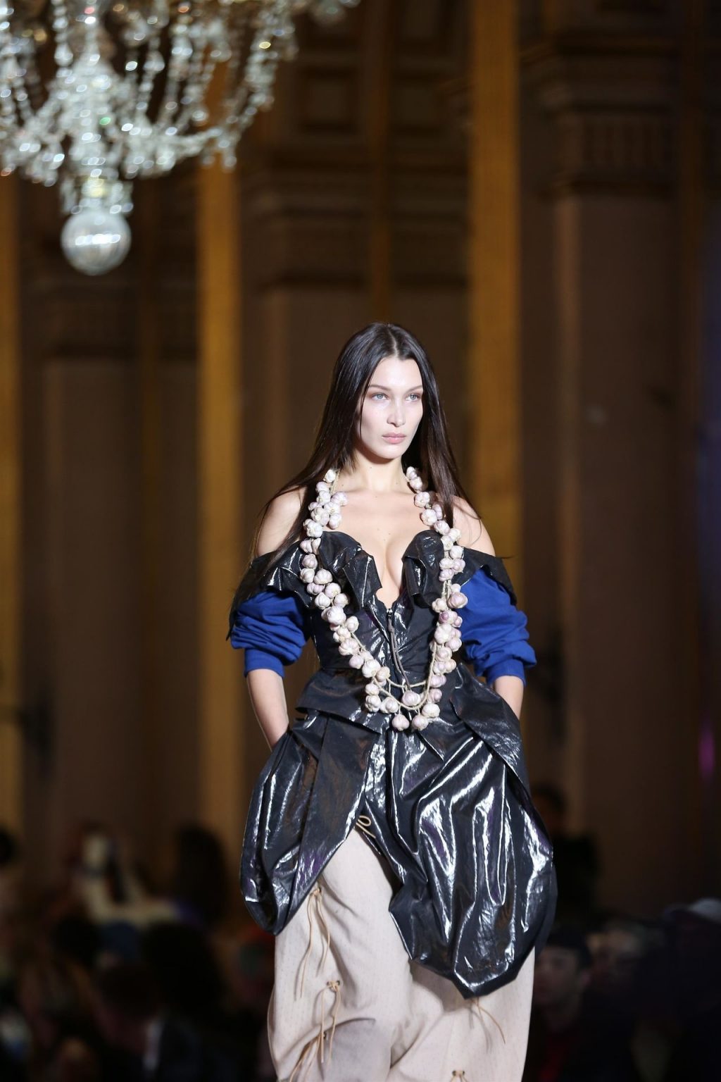 La modelo estadounidense y estrella de reality TV Bella Hadid fue fotografiada caminando en la pasarela en el desfile de moda de Vivienne Westwood en París, 29/02/2020.