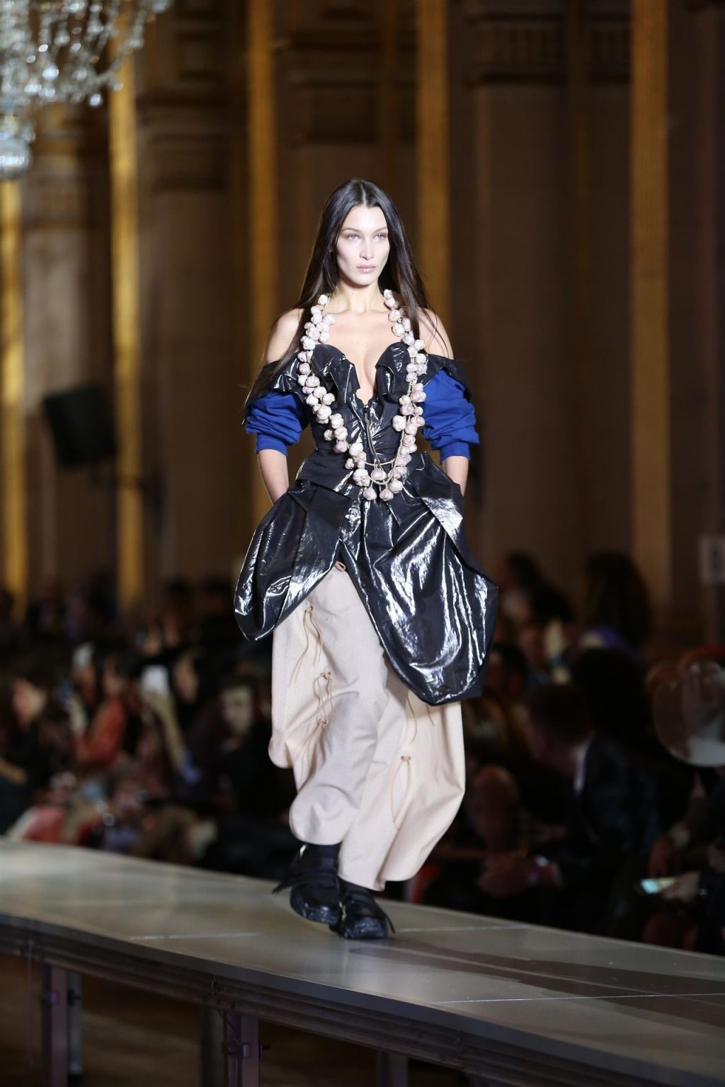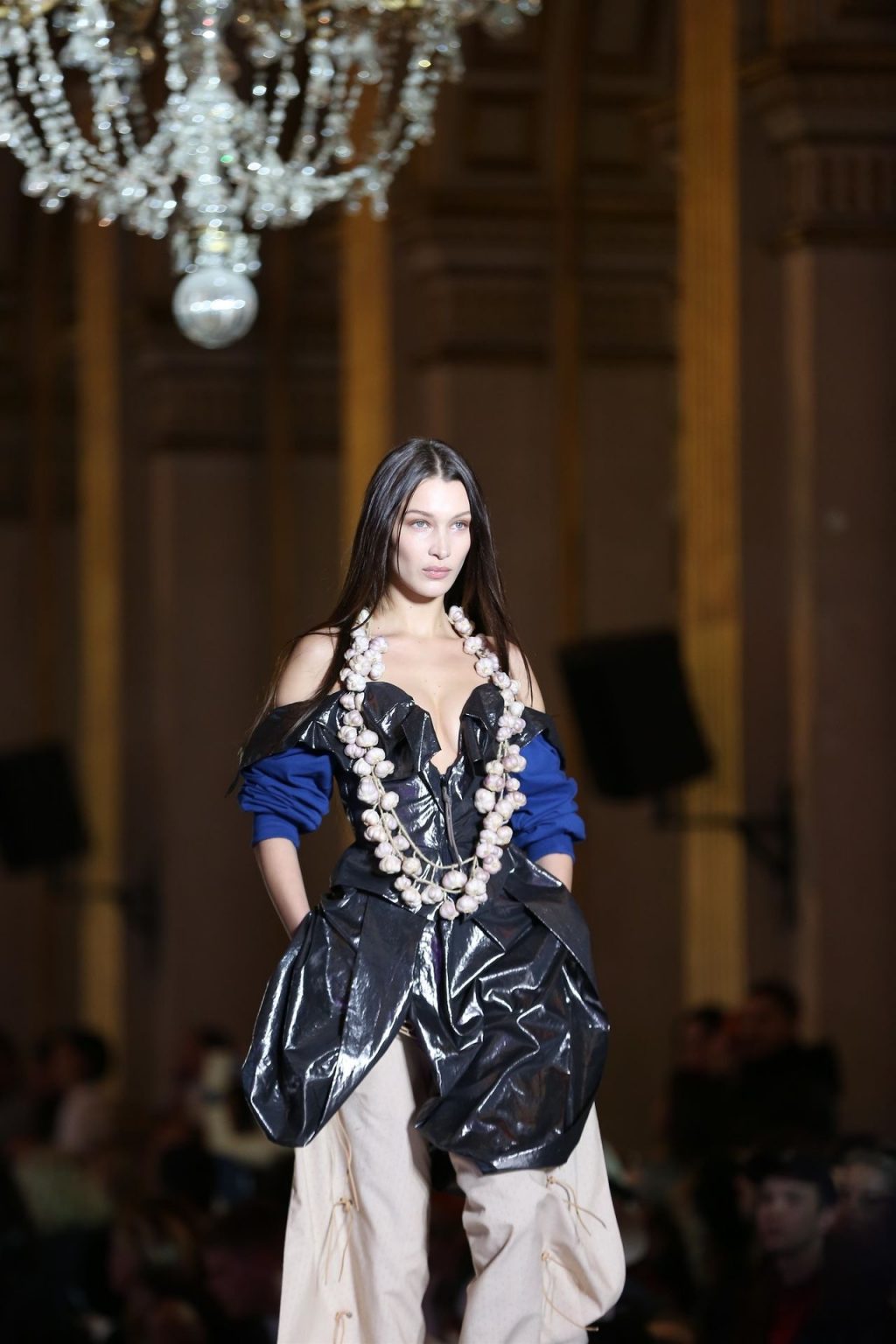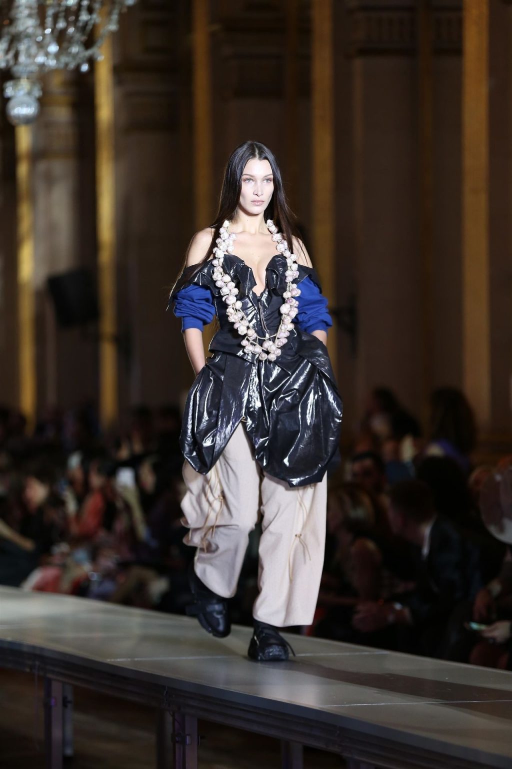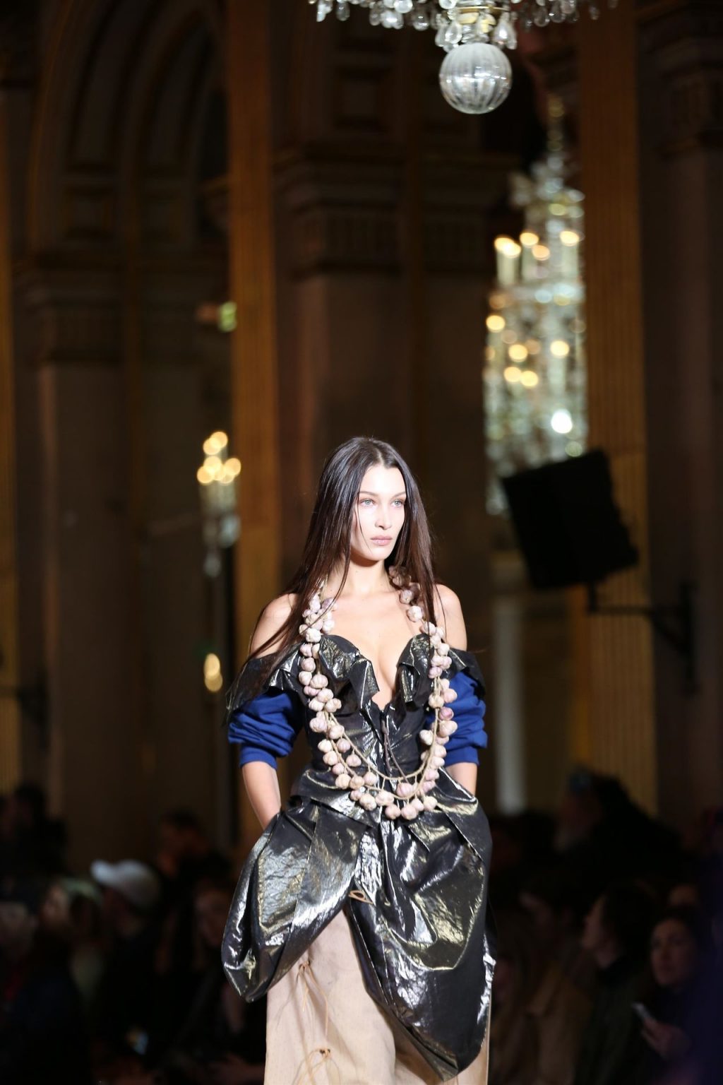 La modelo estadounidense y estrella de reality TV Bella Hadid fue fotografiada caminando en la pasarela en el desfile de moda de Vivienne Westwood en París, 29/02/2020.