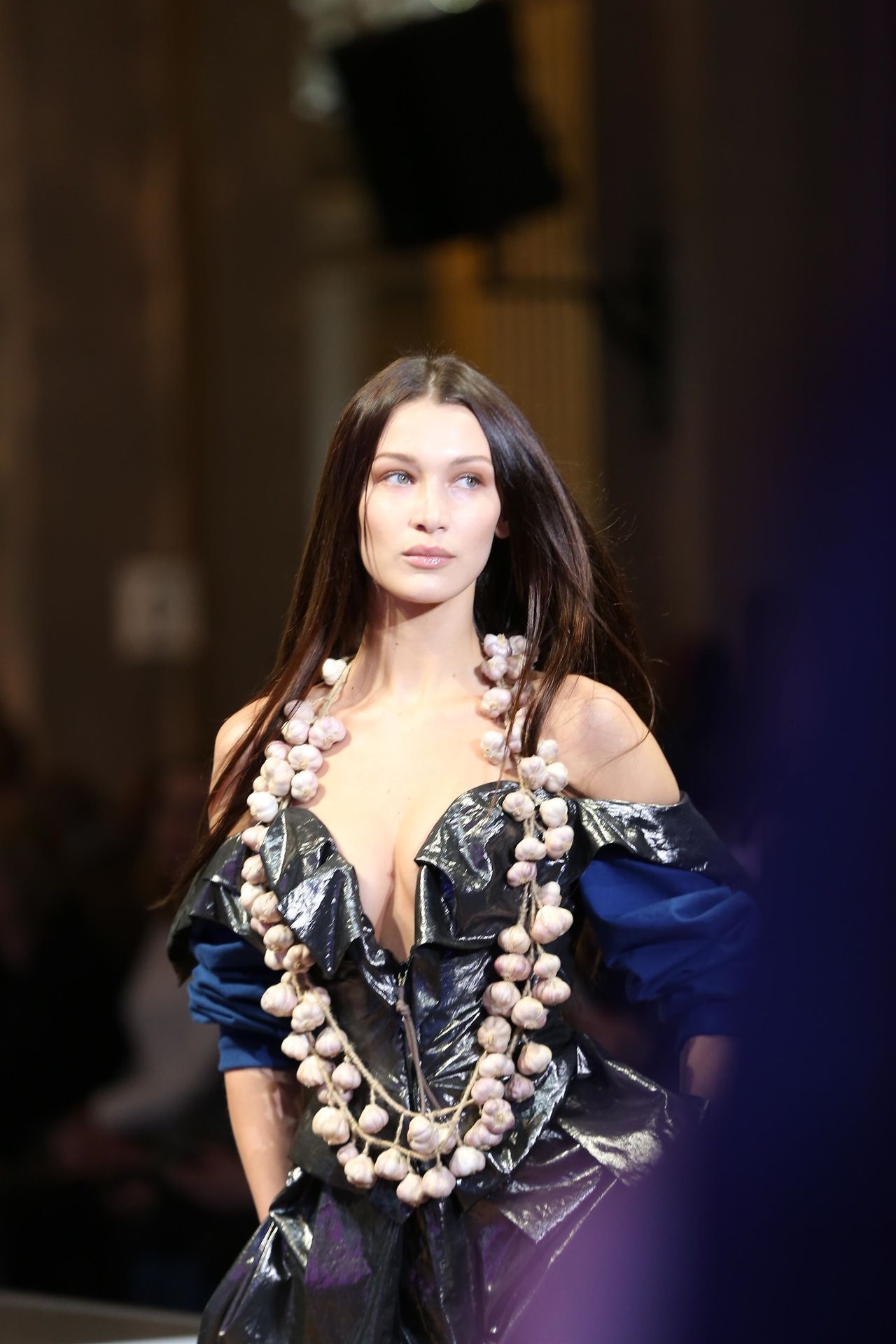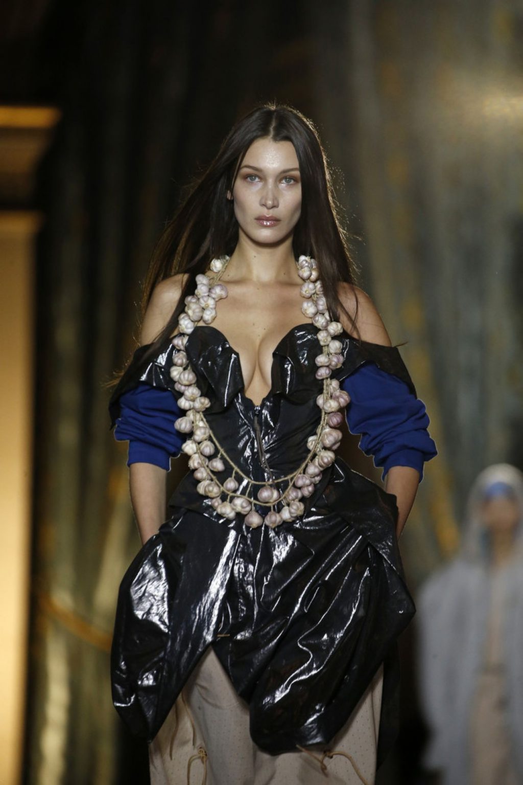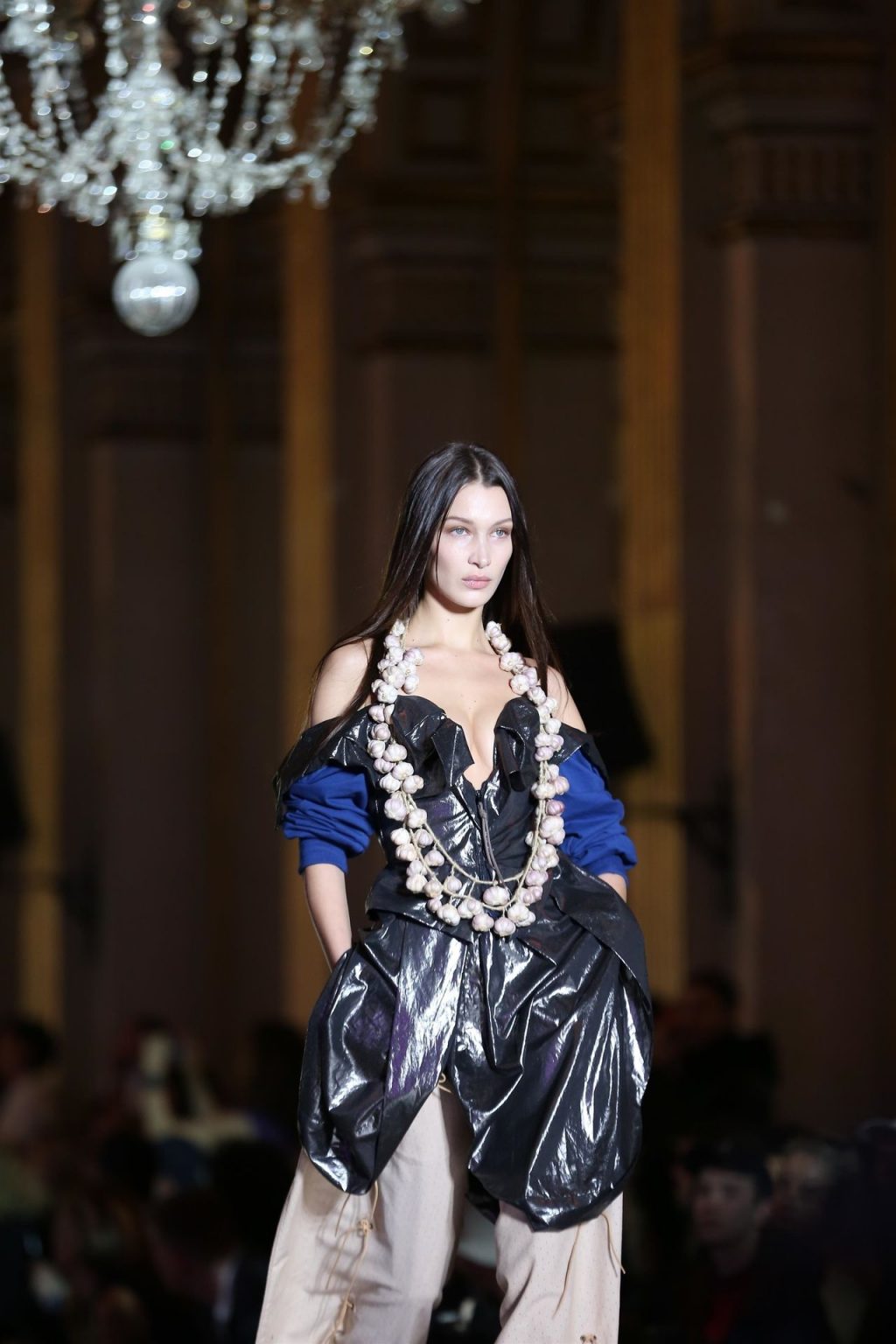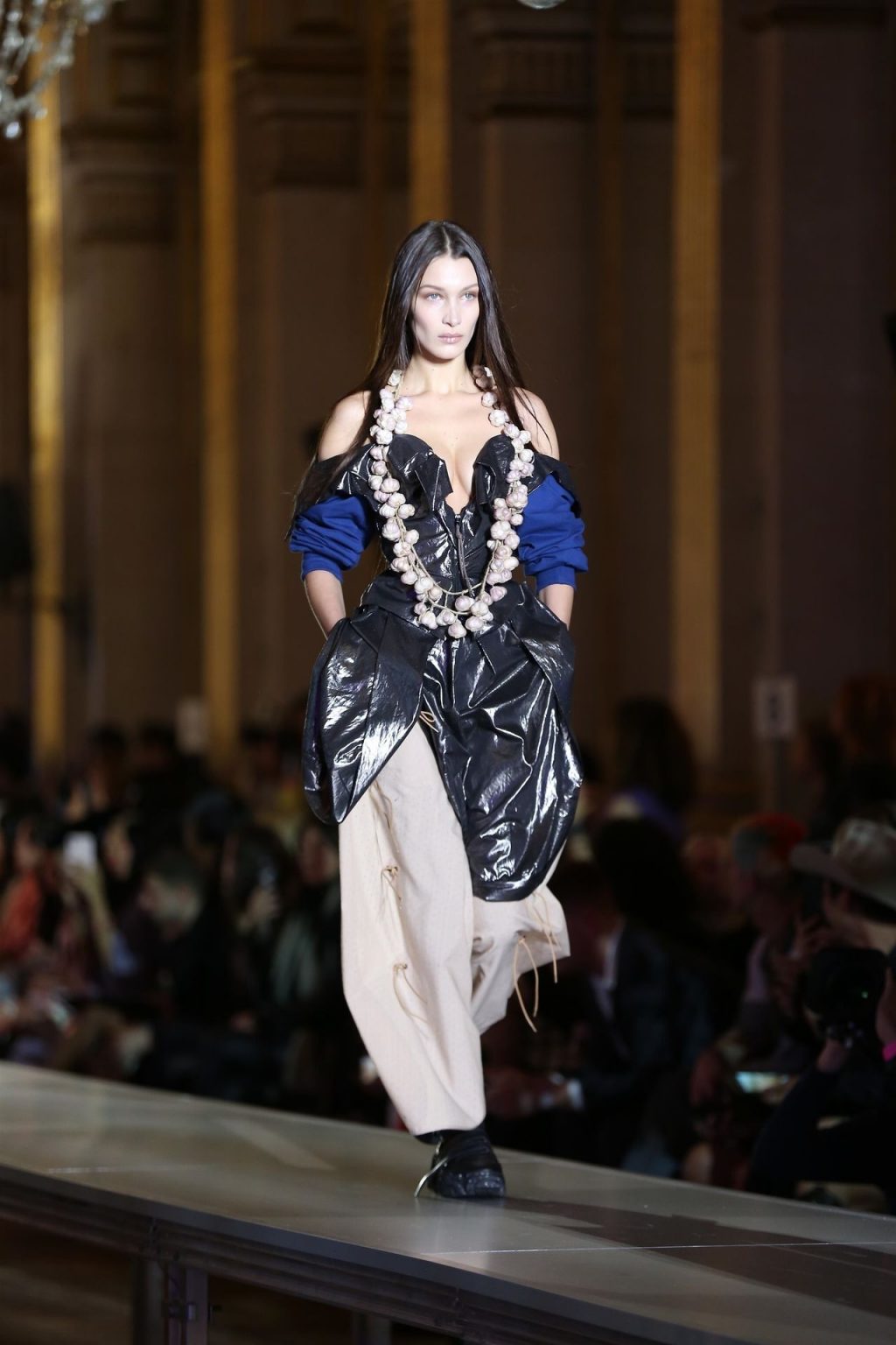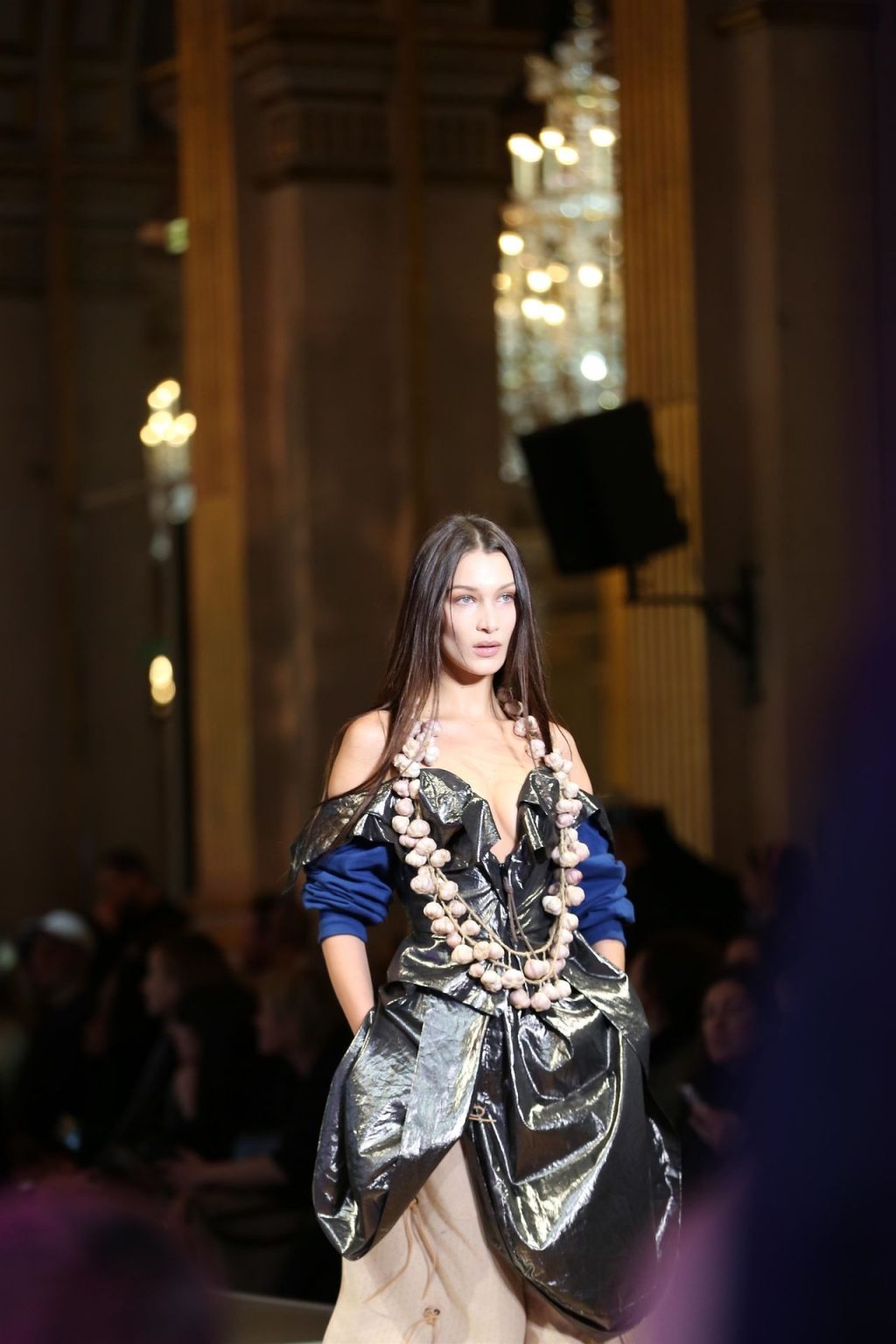 La modelo estadounidense y estrella de reality TV Bella Hadid fue fotografiada caminando en la pasarela en el desfile de moda de Vivienne Westwood en París, 29/02/2020.