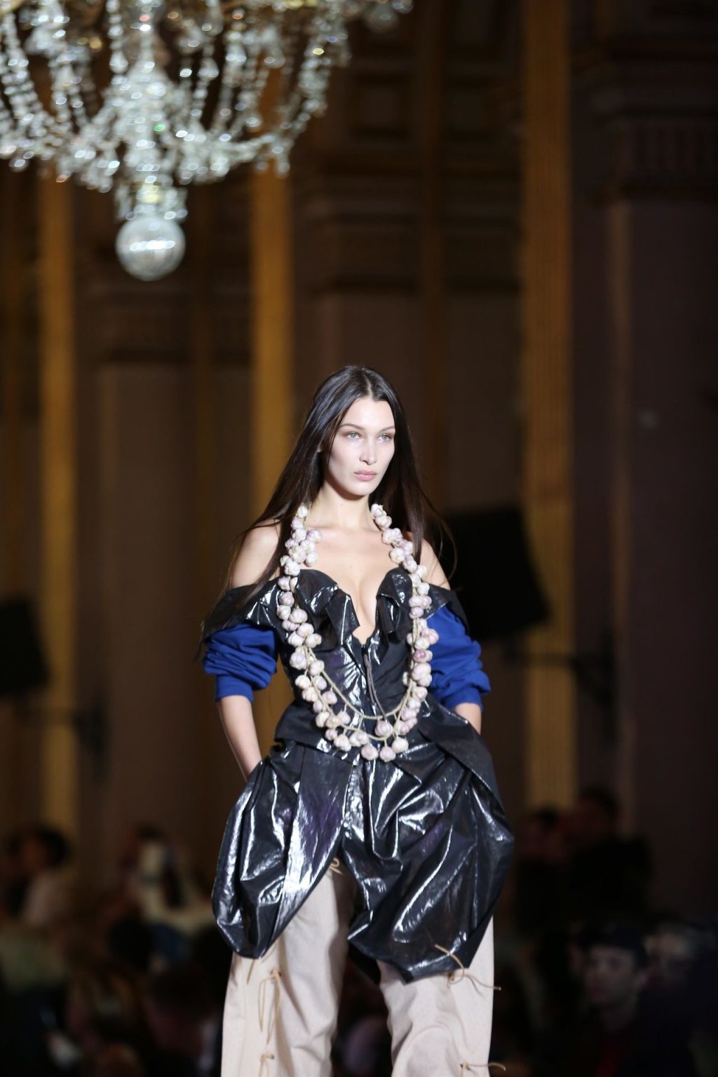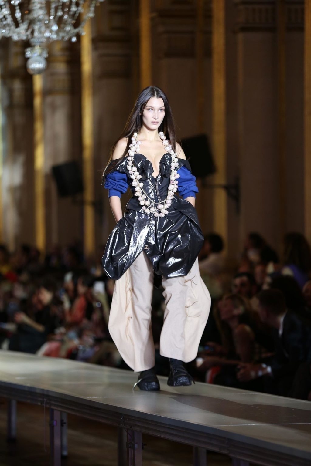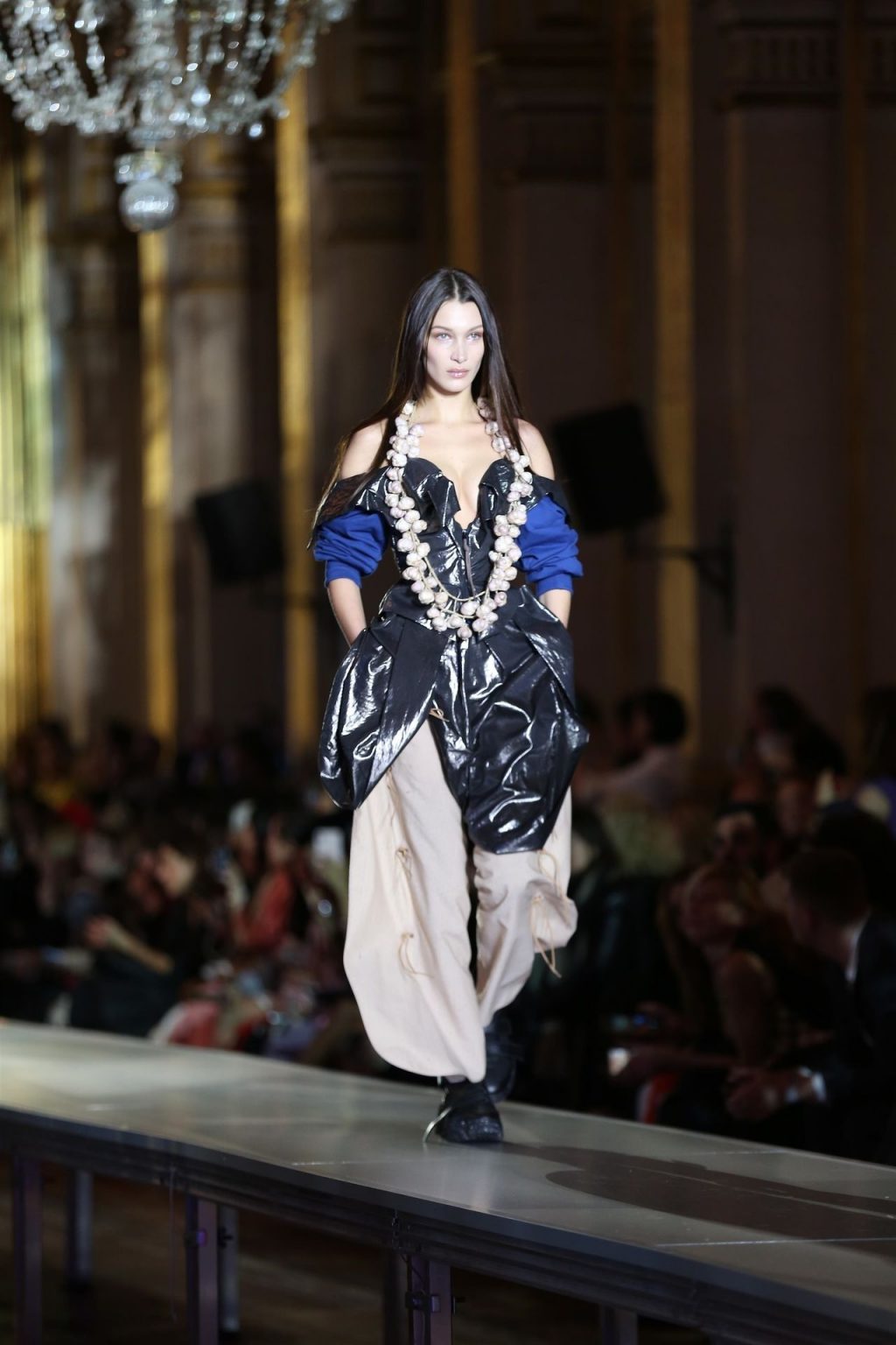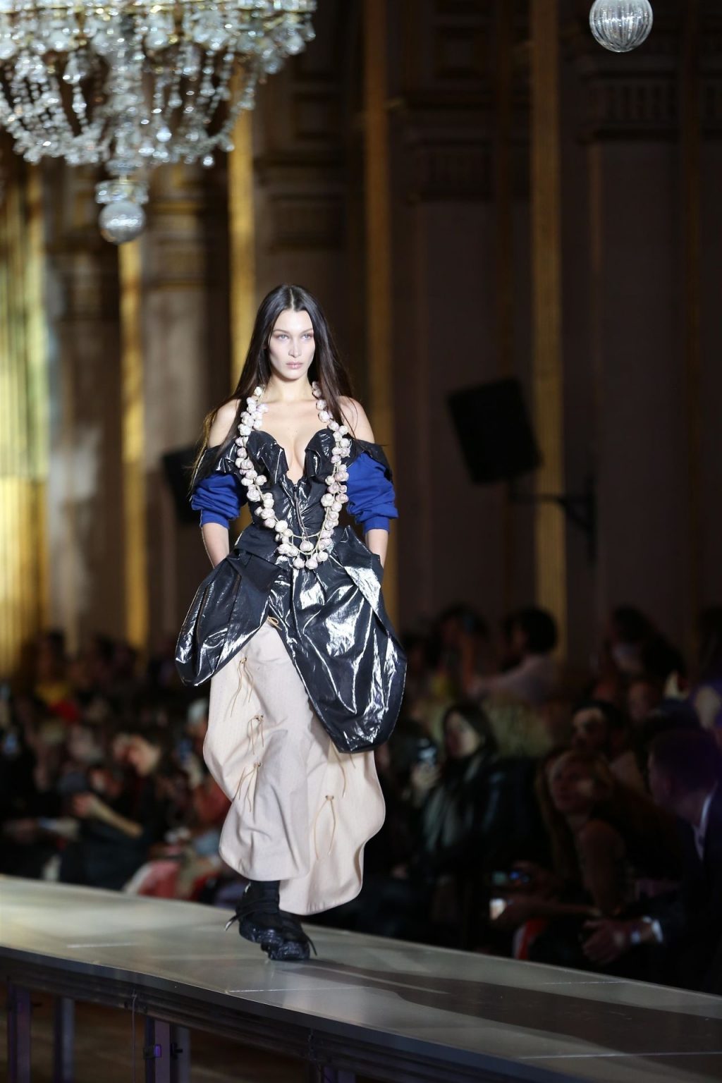 La modelo estadounidense y estrella de reality TV Bella Hadid fue fotografiada caminando en la pasarela en el desfile de moda de Vivienne Westwood en París, 29/02/2020.