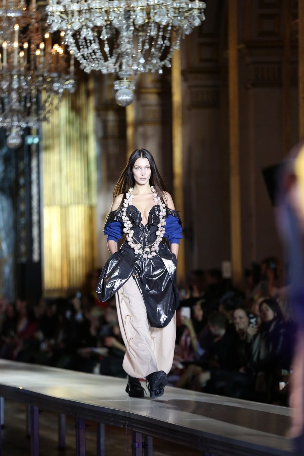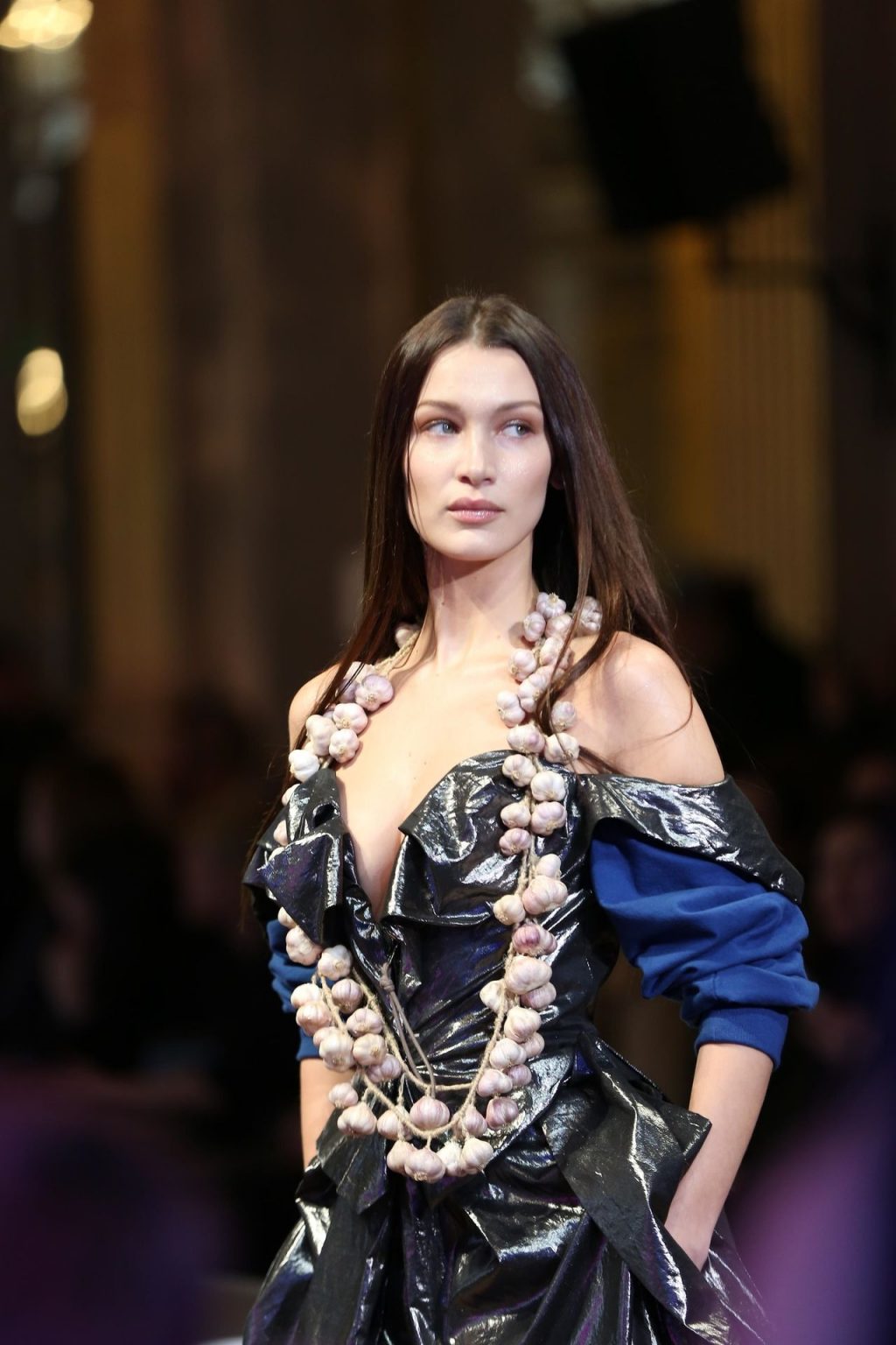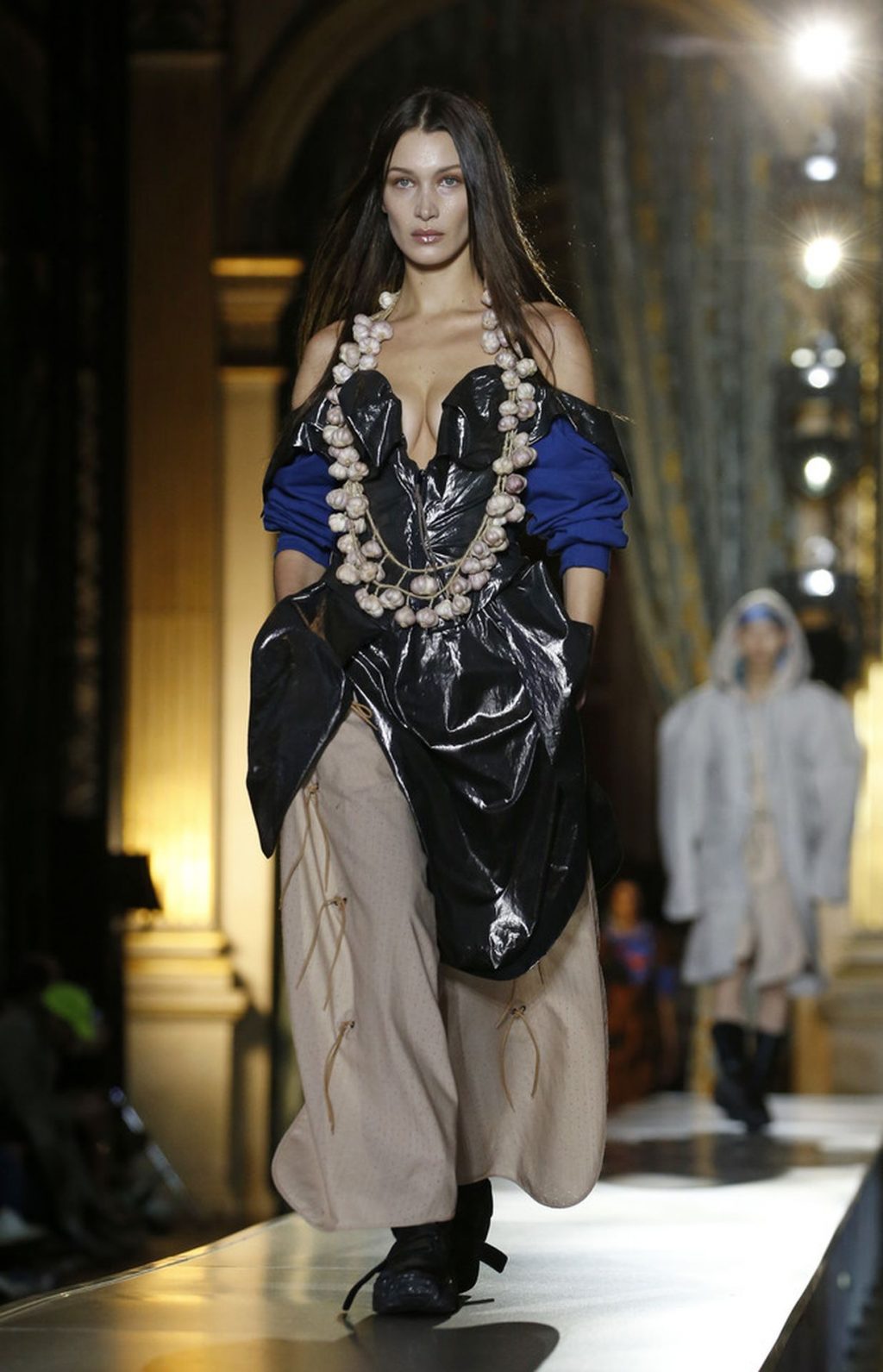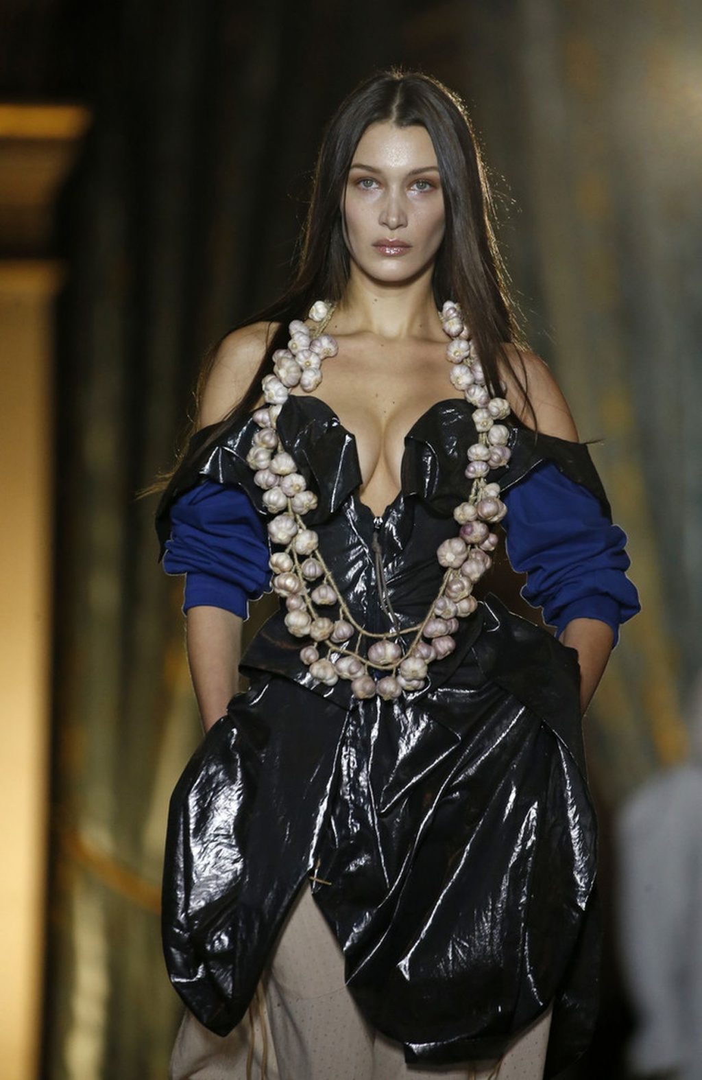 La modelo estadounidense y estrella de reality TV Bella Hadid fue fotografiada caminando en la pasarela en el desfile de moda de Vivienne Westwood en París, 29/02/2020.