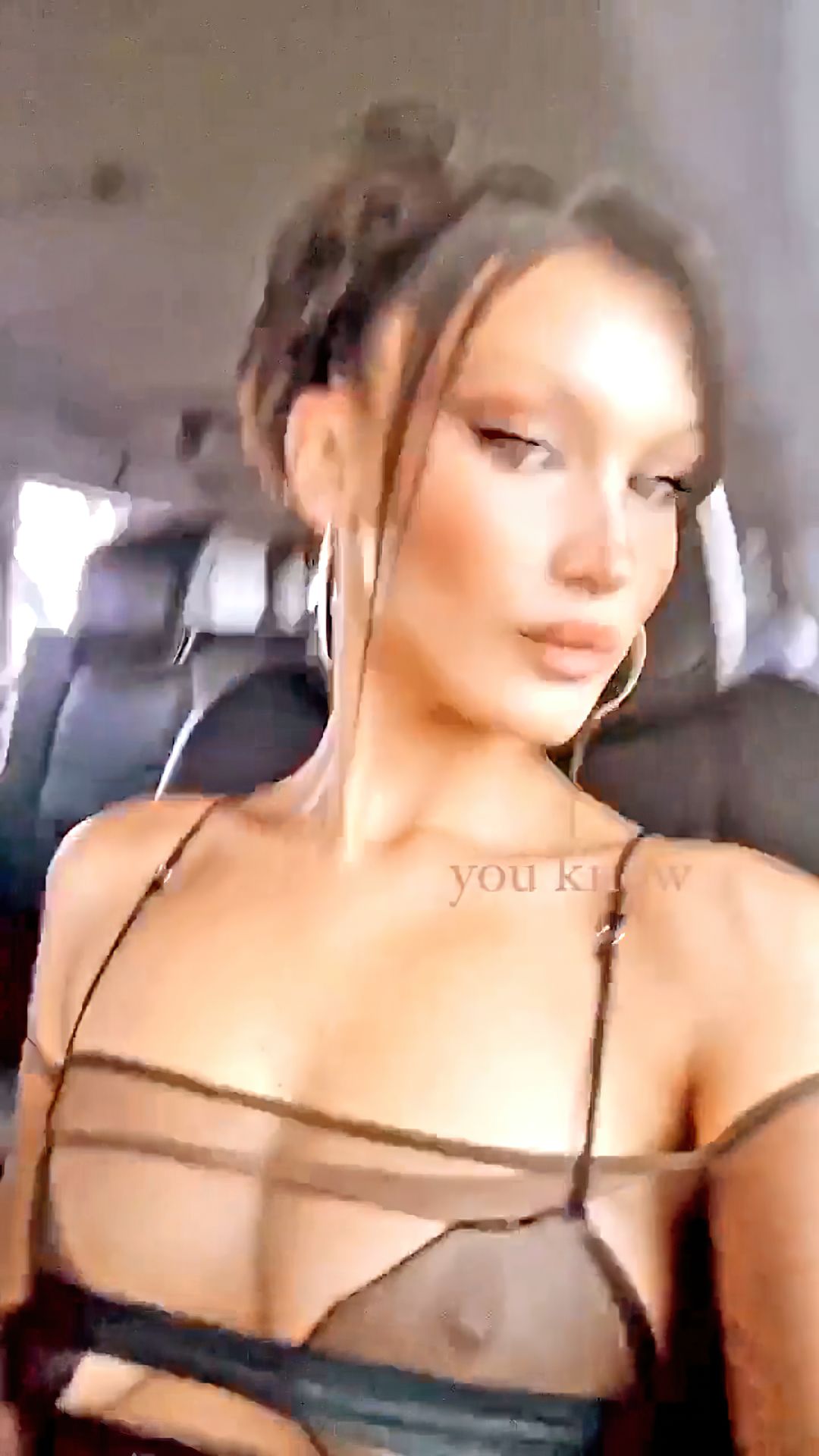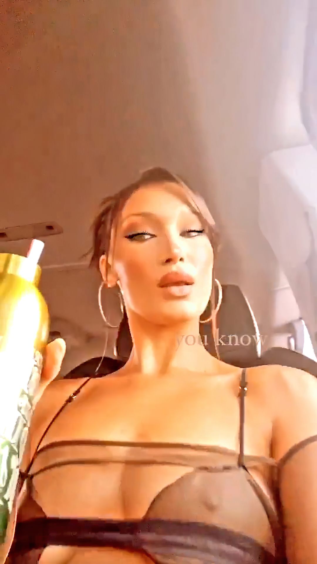 Modelo Bella Hadid muestra sus tetas ligeramente desnudas usando un sostén transparente – Instagram, 28/08/2020.