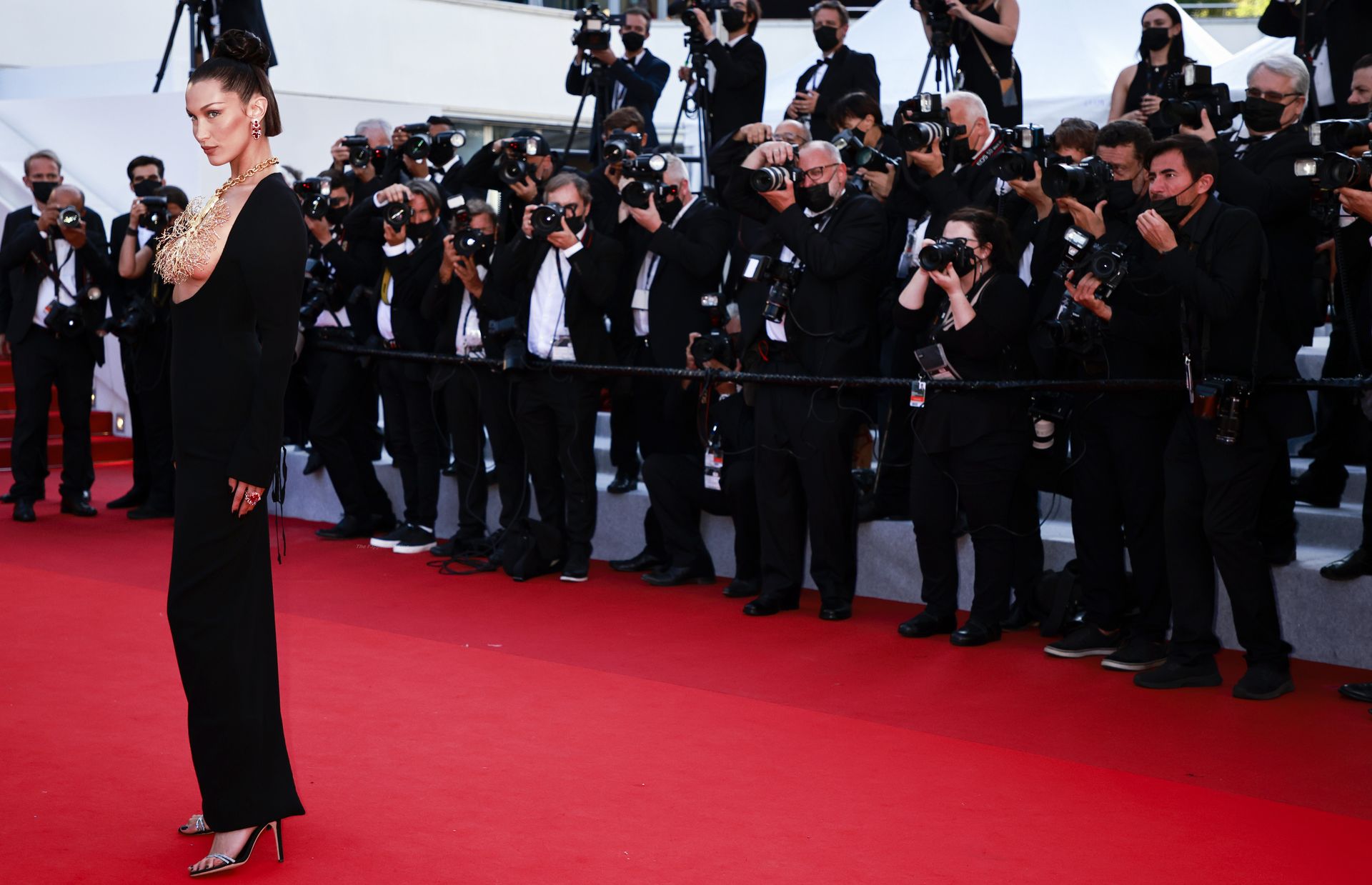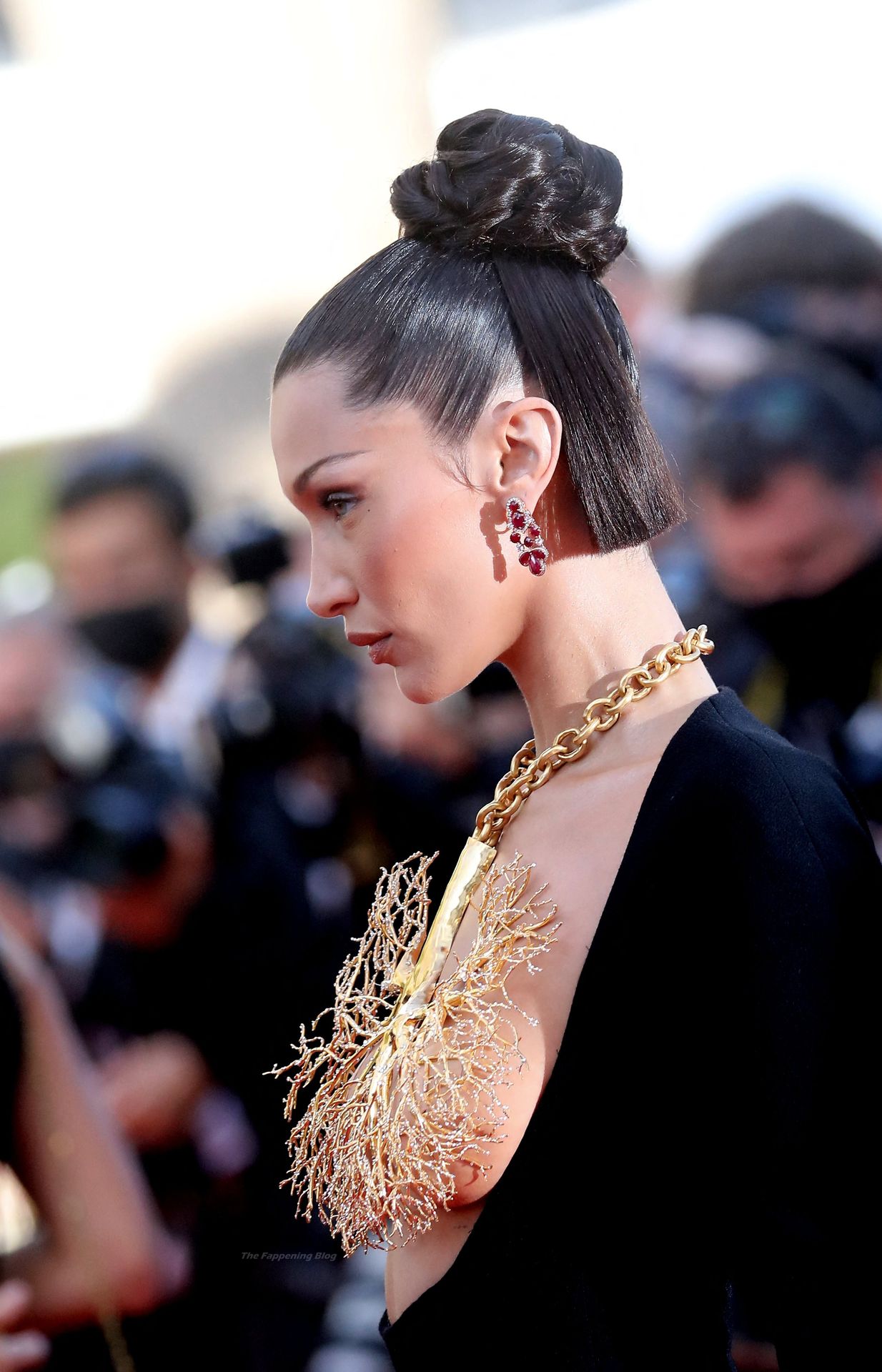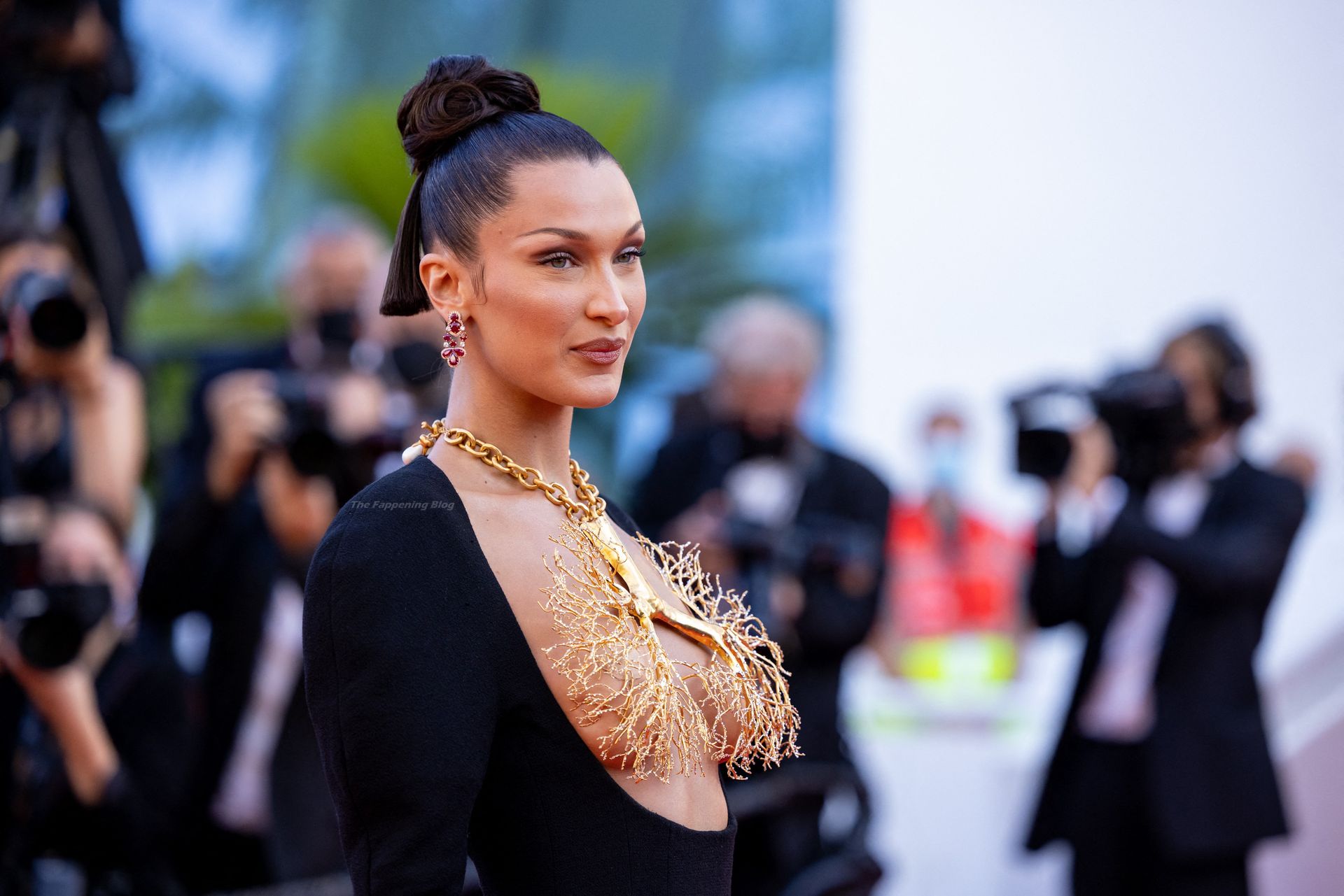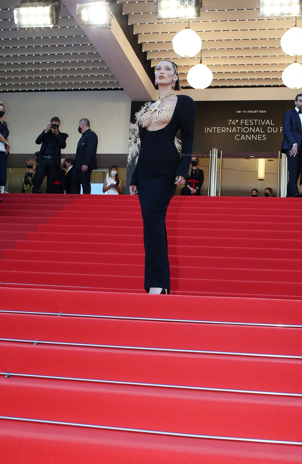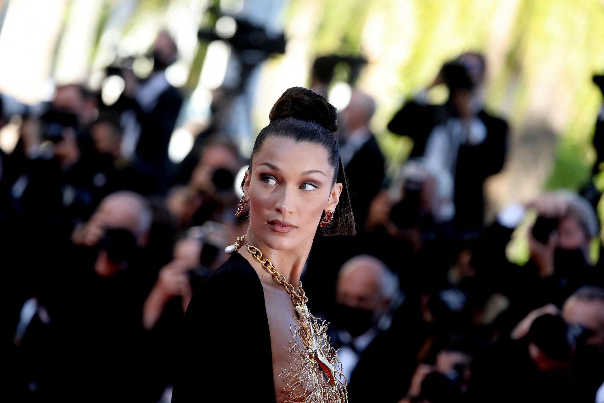 La estrella de The Fappening Bella Hadid fue fotografiada en la alfombra roja, asistiendo a la proyección de ‘Tre Piani’ celebrada en el Palais Des Festivals en Cannes, 11/07/2021.