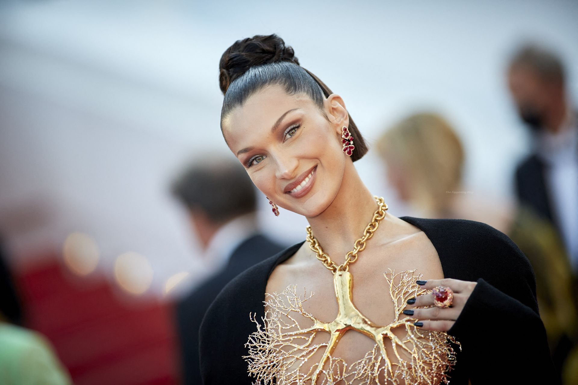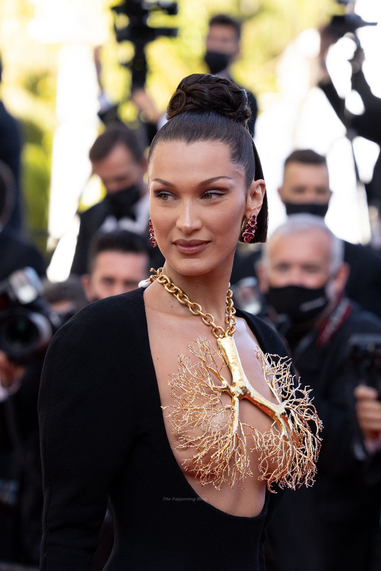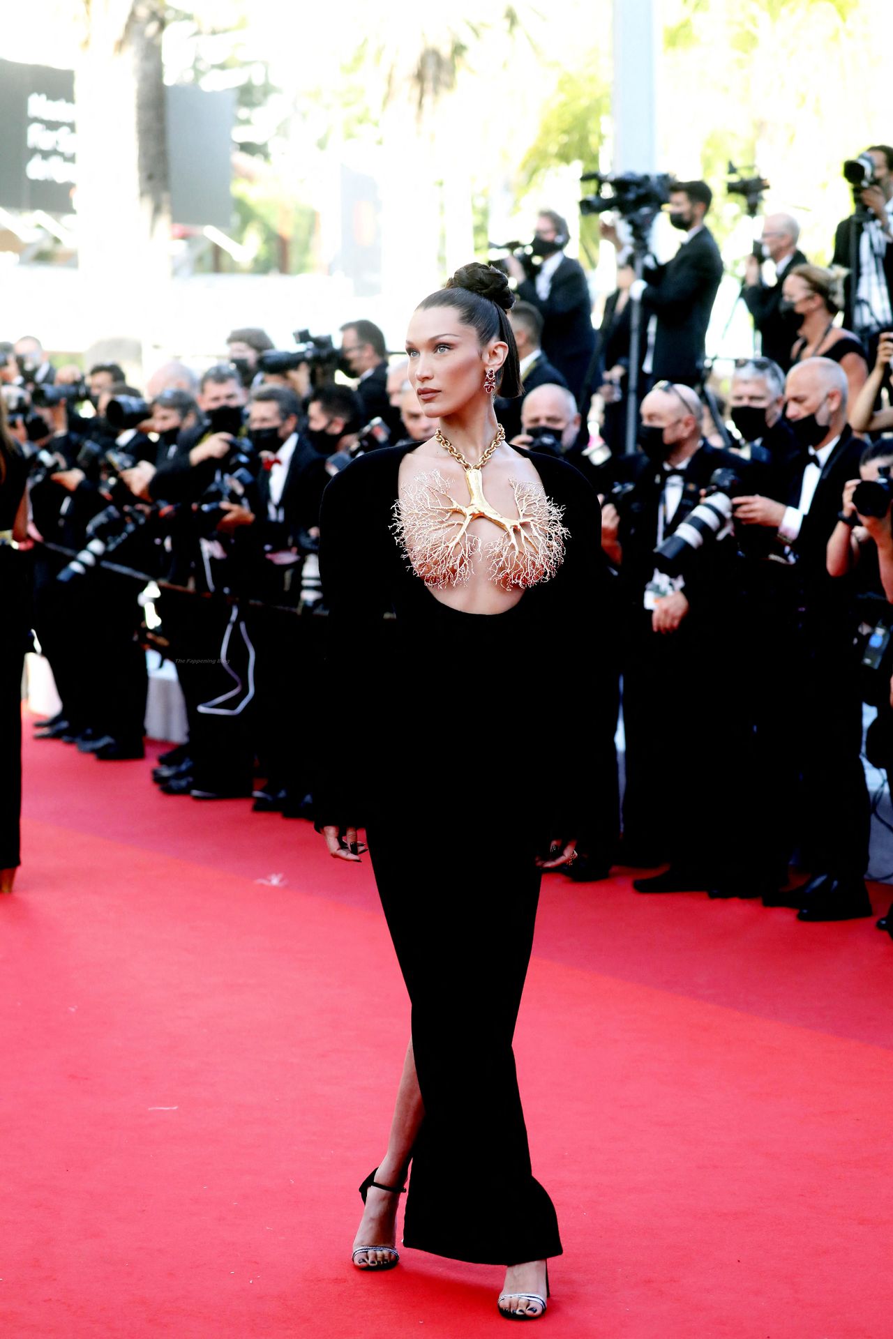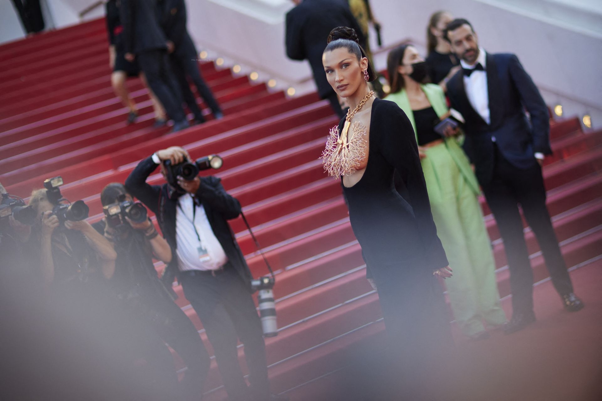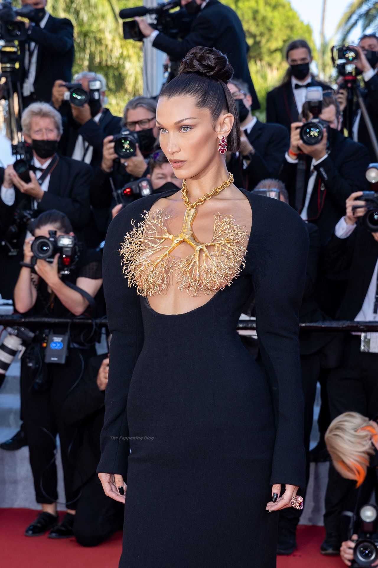 La estrella de The Fappening Bella Hadid fue fotografiada en la alfombra roja, asistiendo a la proyección de ‘Tre Piani’ celebrada en el Palais Des Festivals en Cannes, 11/07/2021.