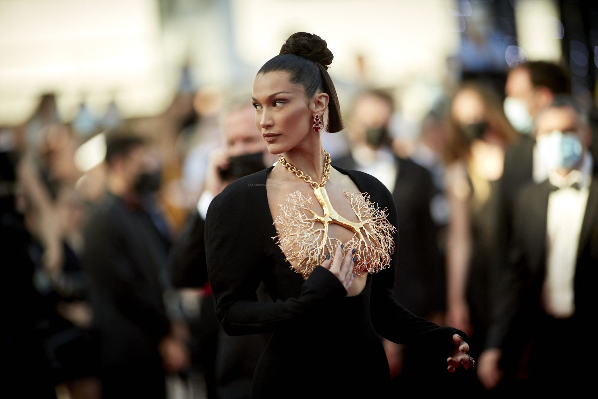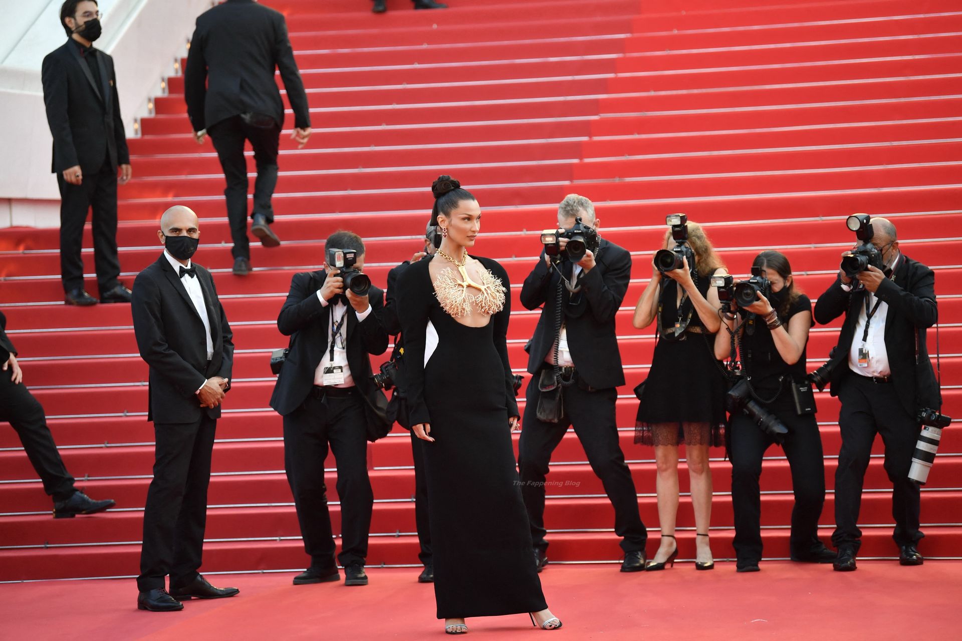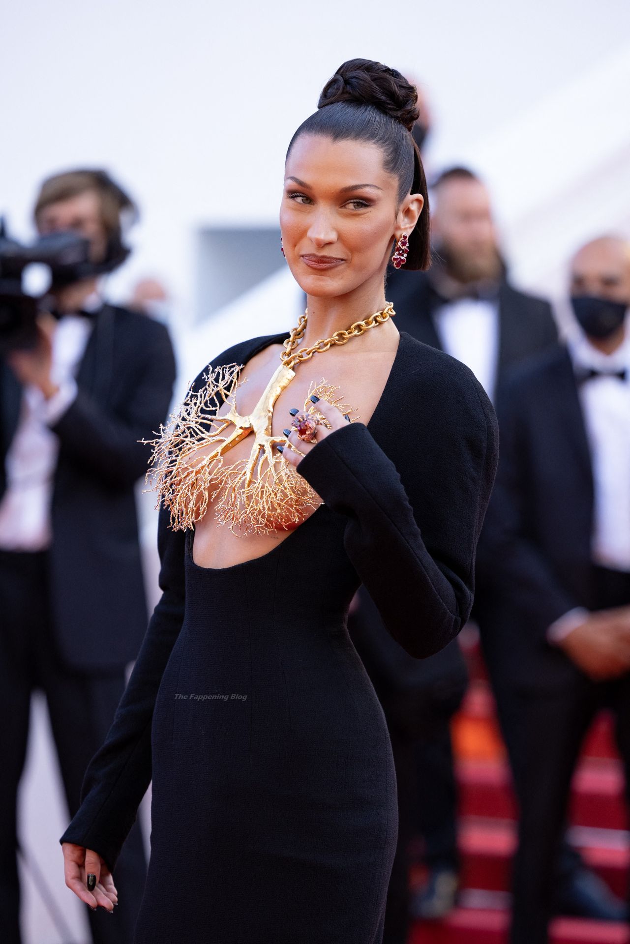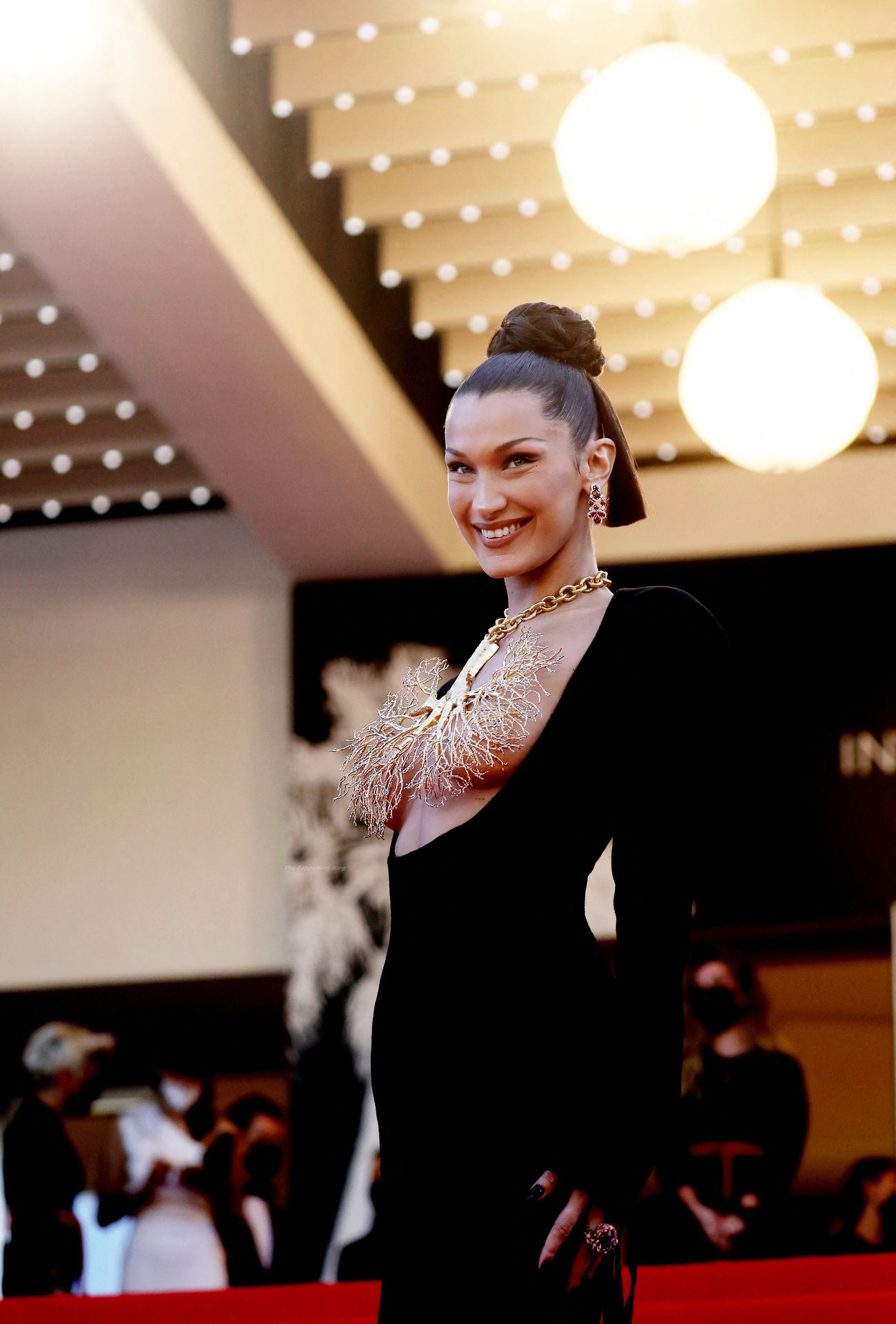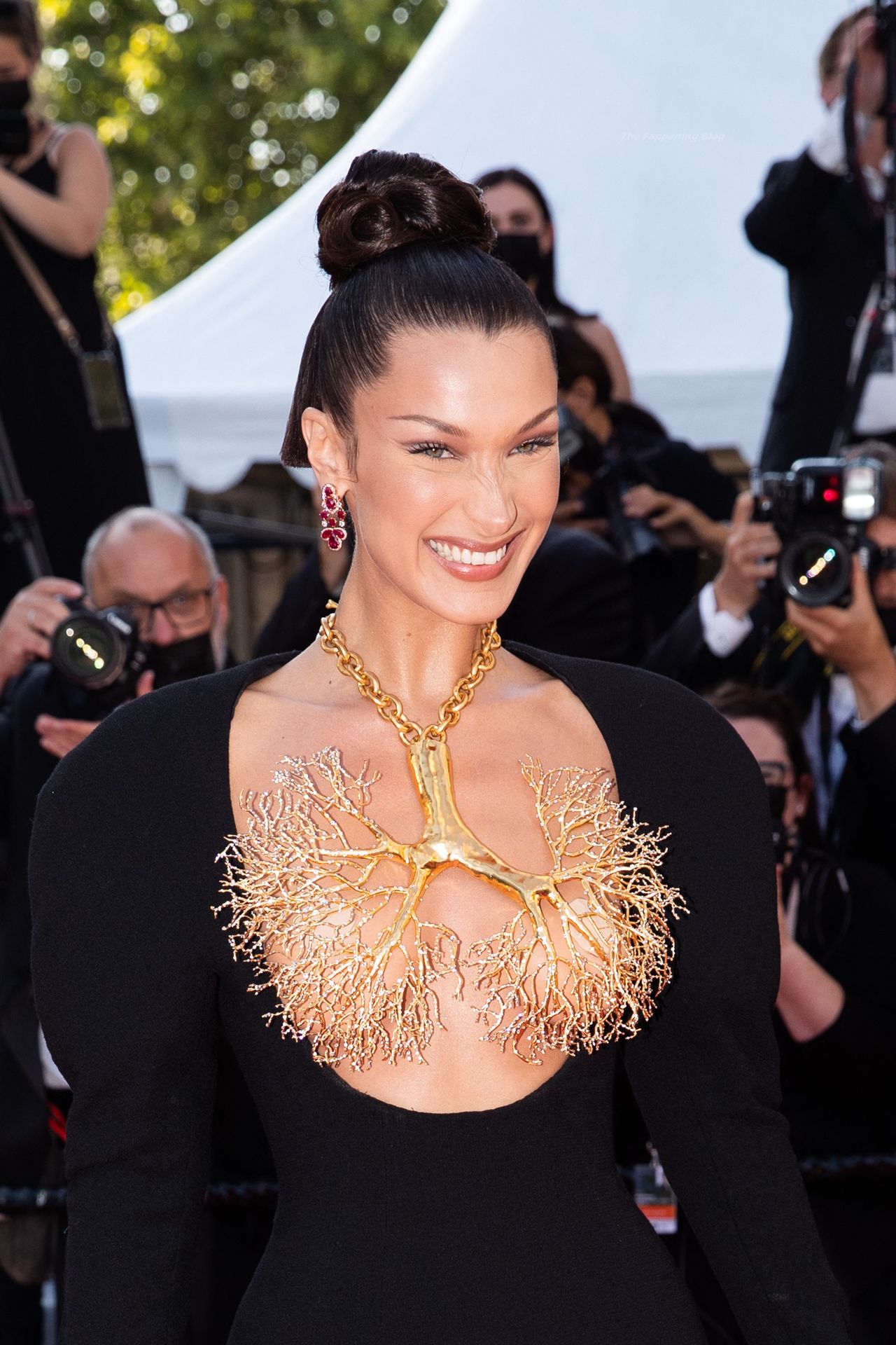 La estrella de The Fappening Bella Hadid fue fotografiada en la alfombra roja, asistiendo a la proyección de ‘Tre Piani’ celebrada en el Palais Des Festivals en Cannes, 11/07/2021.