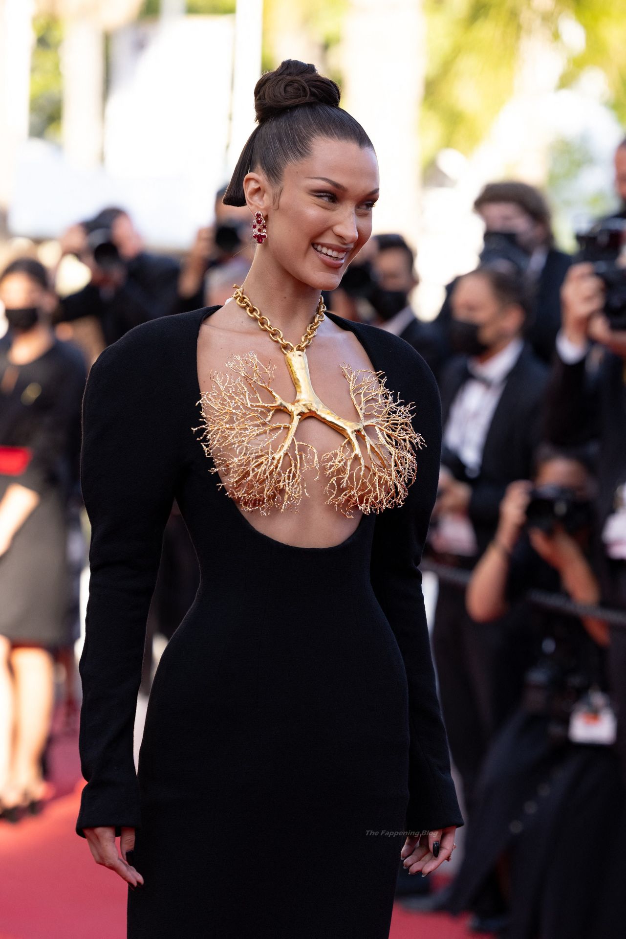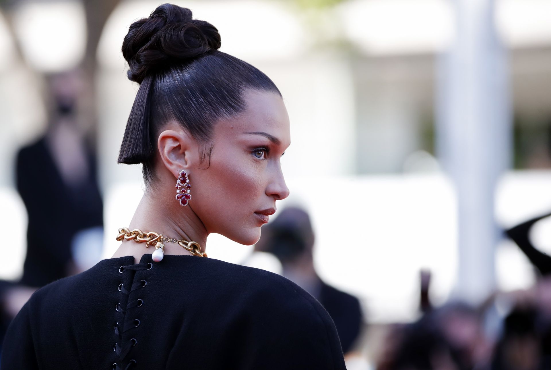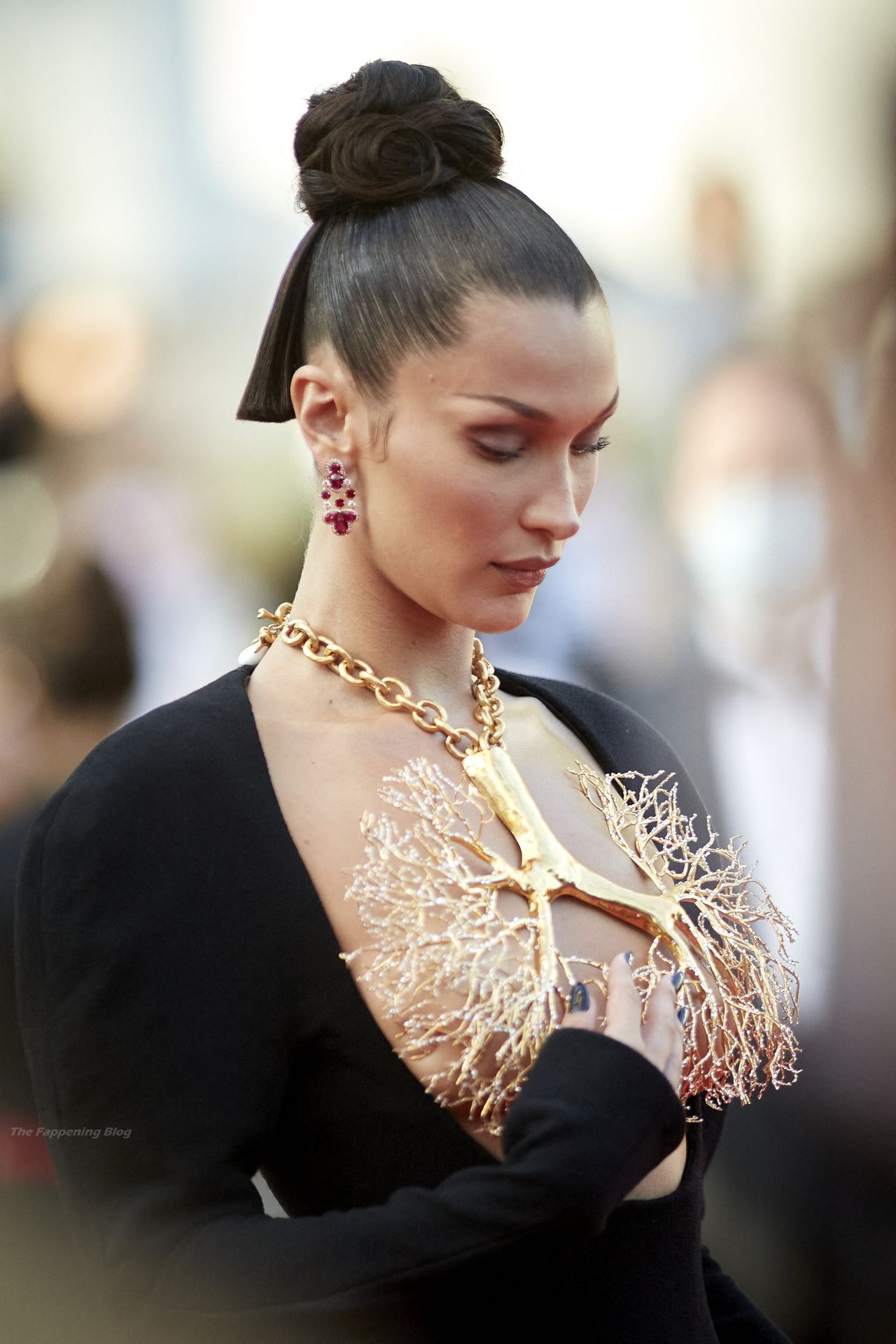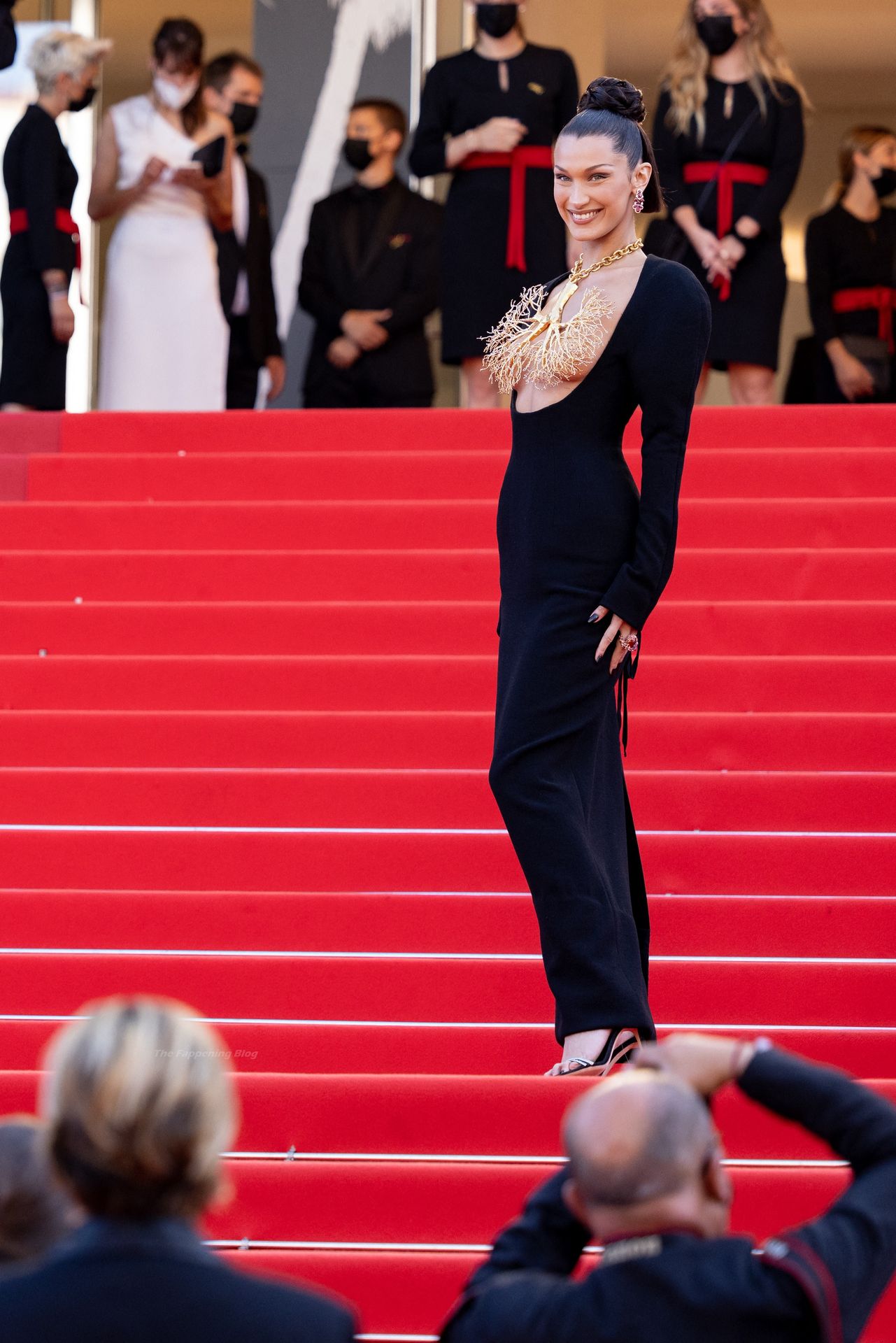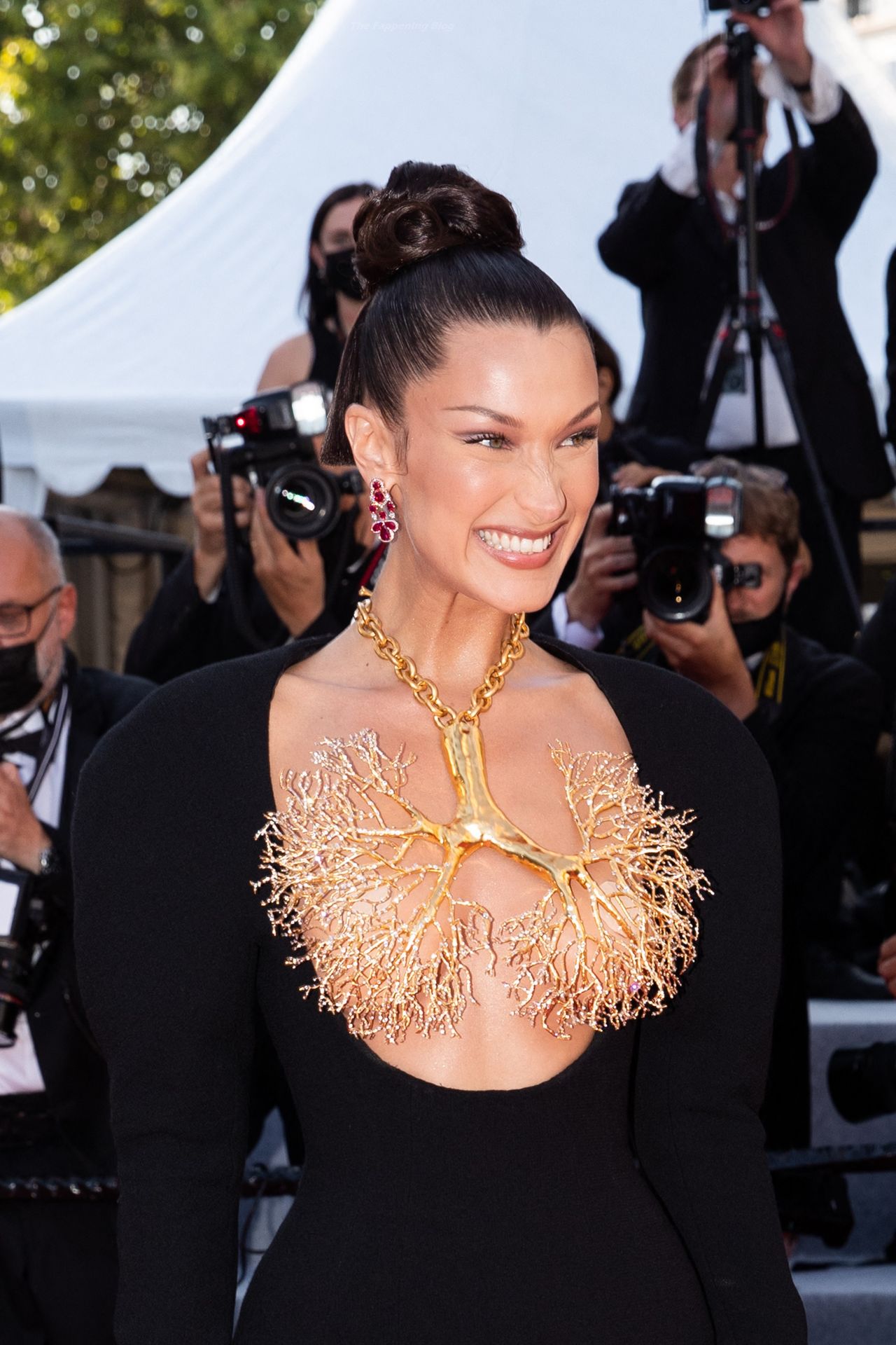 La estrella de The Fappening Bella Hadid fue fotografiada en la alfombra roja, asistiendo a la proyección de ‘Tre Piani’ celebrada en el Palais Des Festivals en Cannes, 11/07/2021.