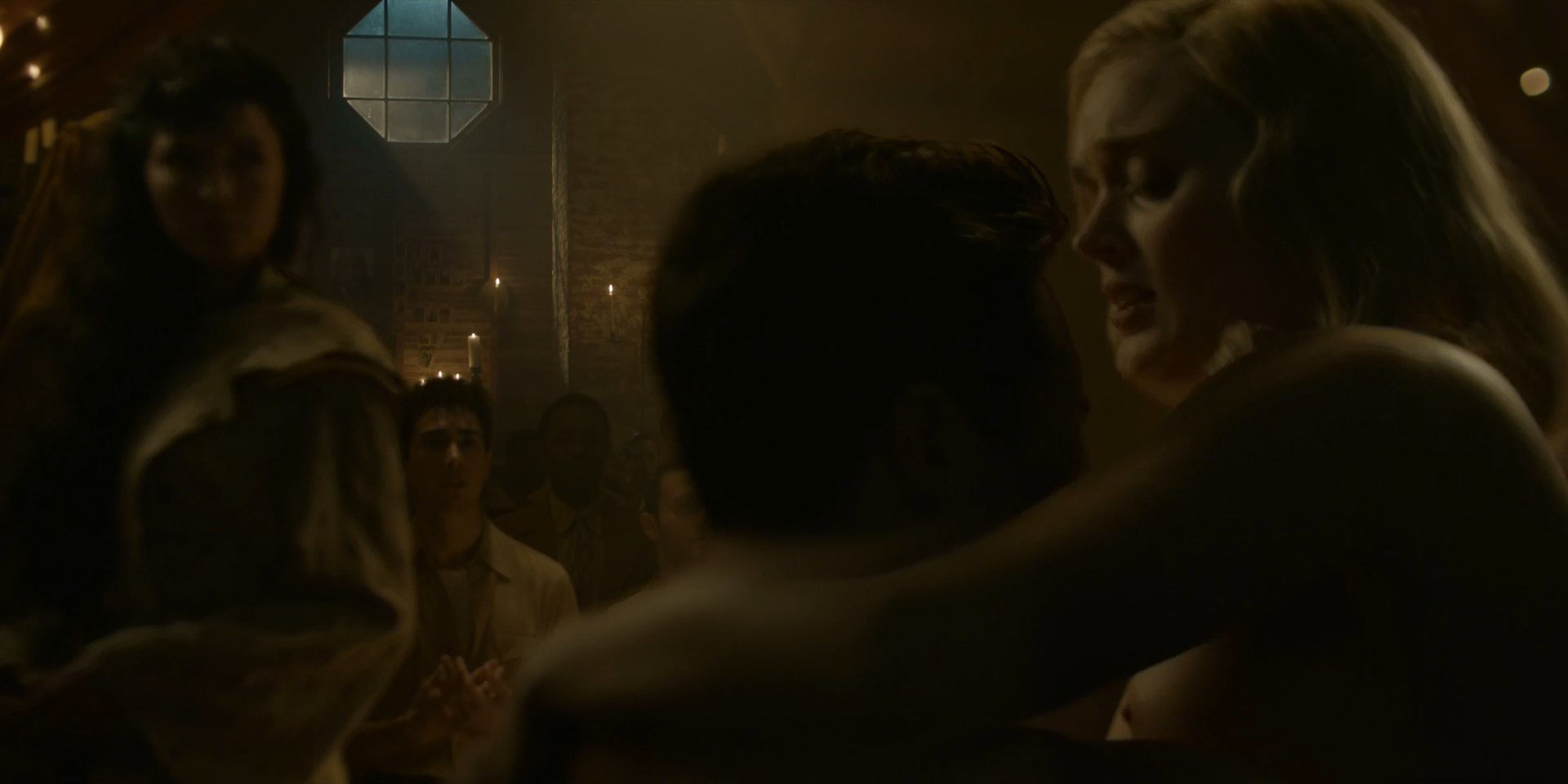 Mira la escena desnuda de Bella Heathcote en “Strange Angel” (2019) Temporada 2 Episodio 1 (s02e01), donde puedes ver sus pechos mientras se mueve arriba y abajo en los brazos del hombre. Ella está teniendo sexo en el regazo de un hombre frente a un grupo de personas que observan un ritual.