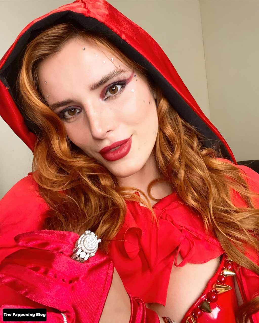 La estrella de The Fappening Bella Thorne muestra sus hermosos pechos vestida como Caperucita Roja (octubre de 2021).