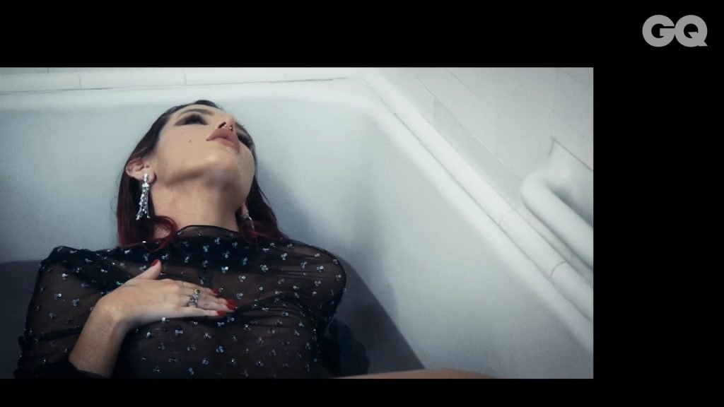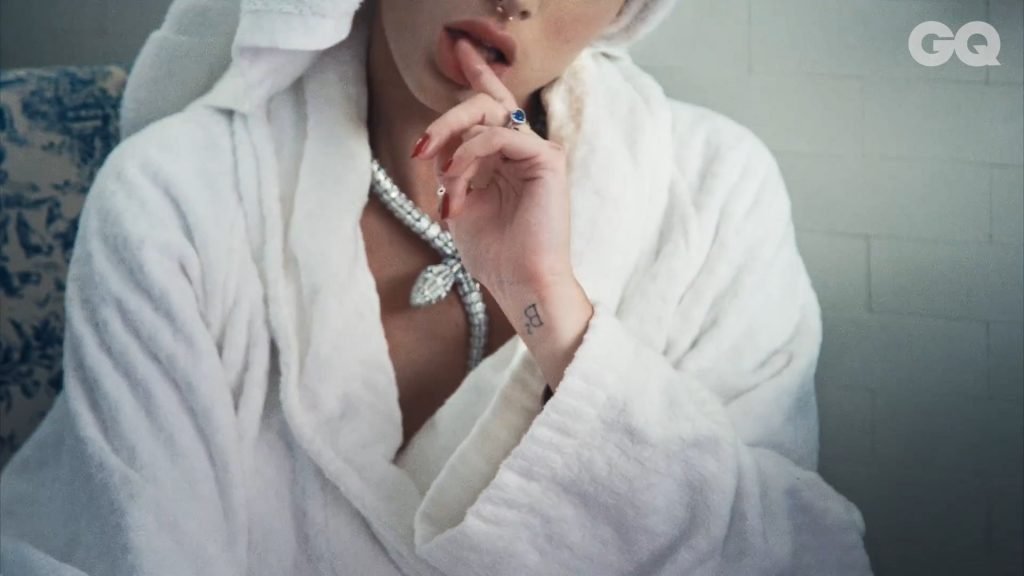 Curiosamente, para esta sesión, ella le dijo explícitamente a GQ que no la retocaran para nada, para tomar con humor los problemas de imagen corporal y esas cosas.