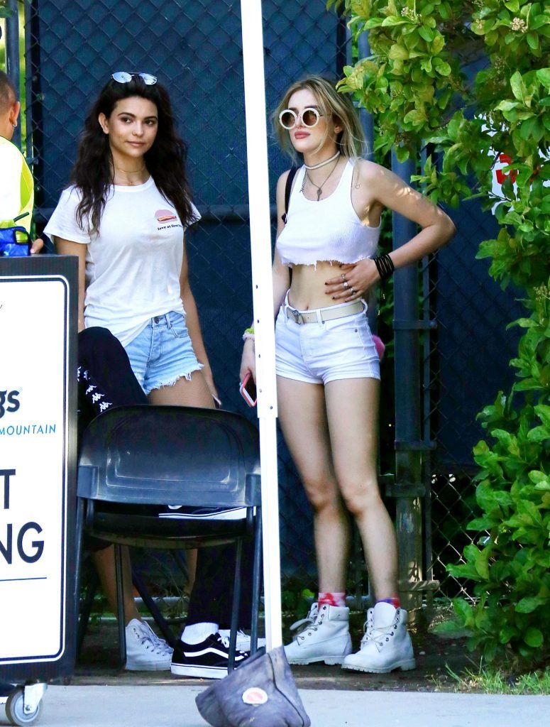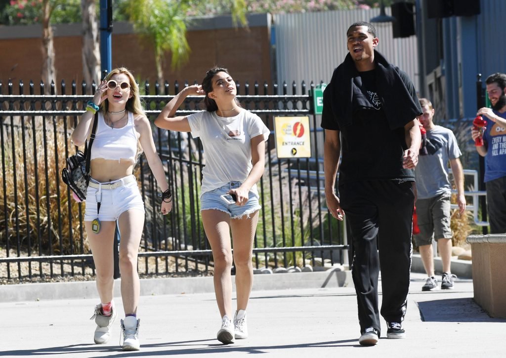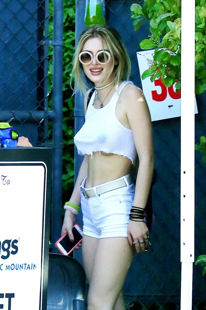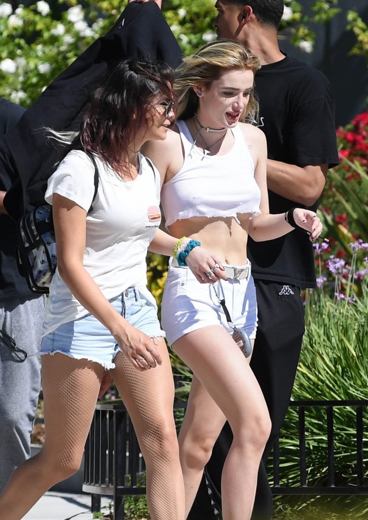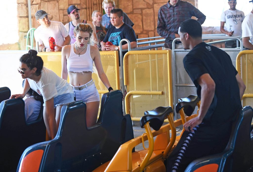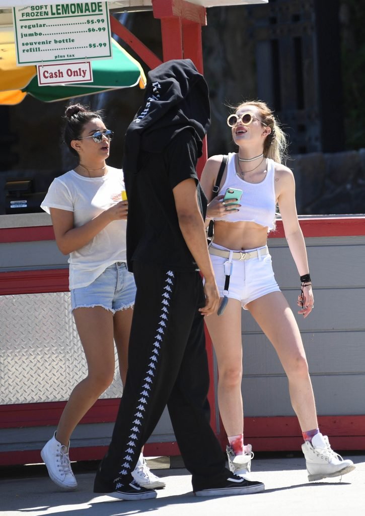 Bella Thorne lleva un crop top transparente en Magic Mountain en Valencia, CA, 05/05/2017. Bella Thorne es una cantante, actriz y bailarina de Florida, EE.UU. Edad – 19.