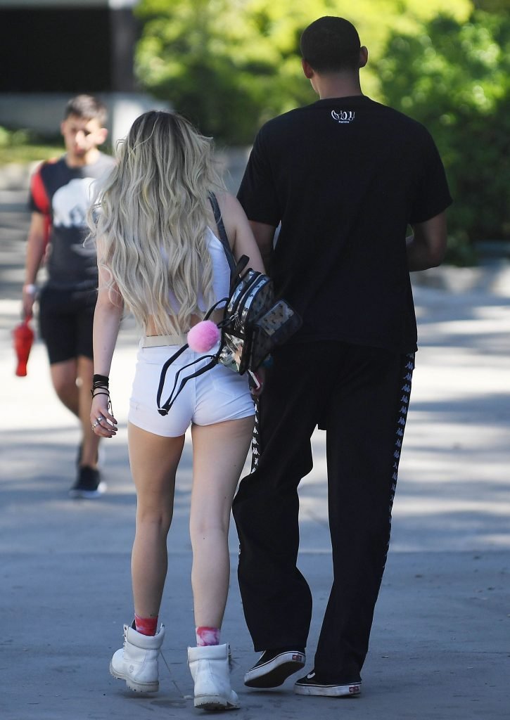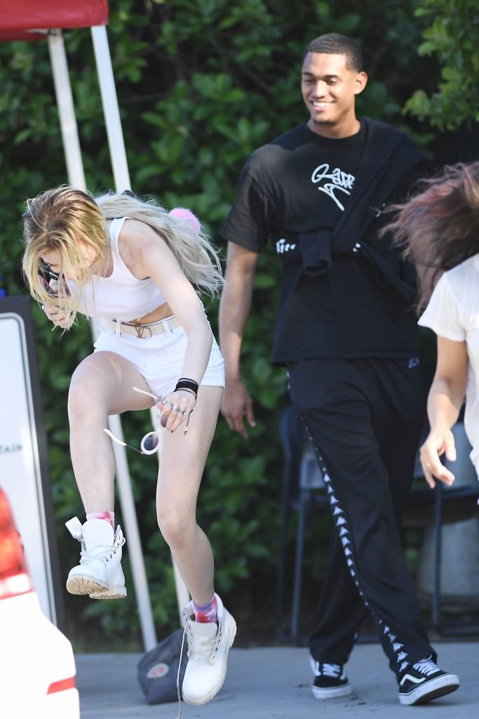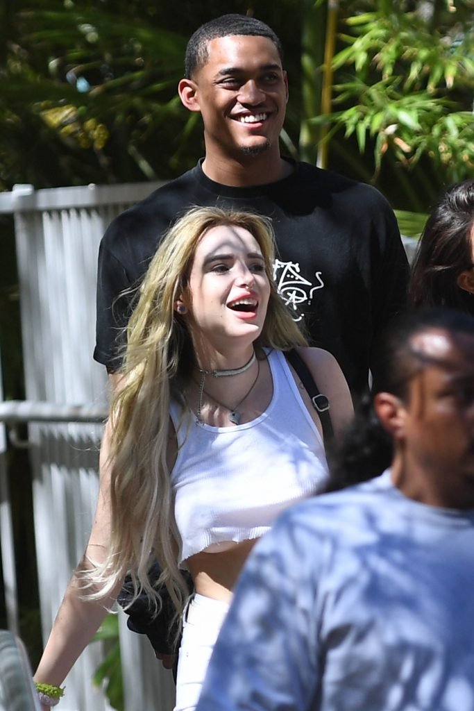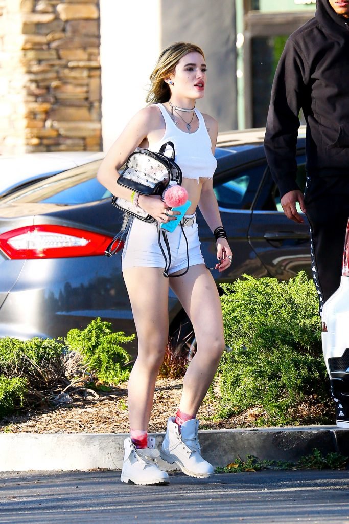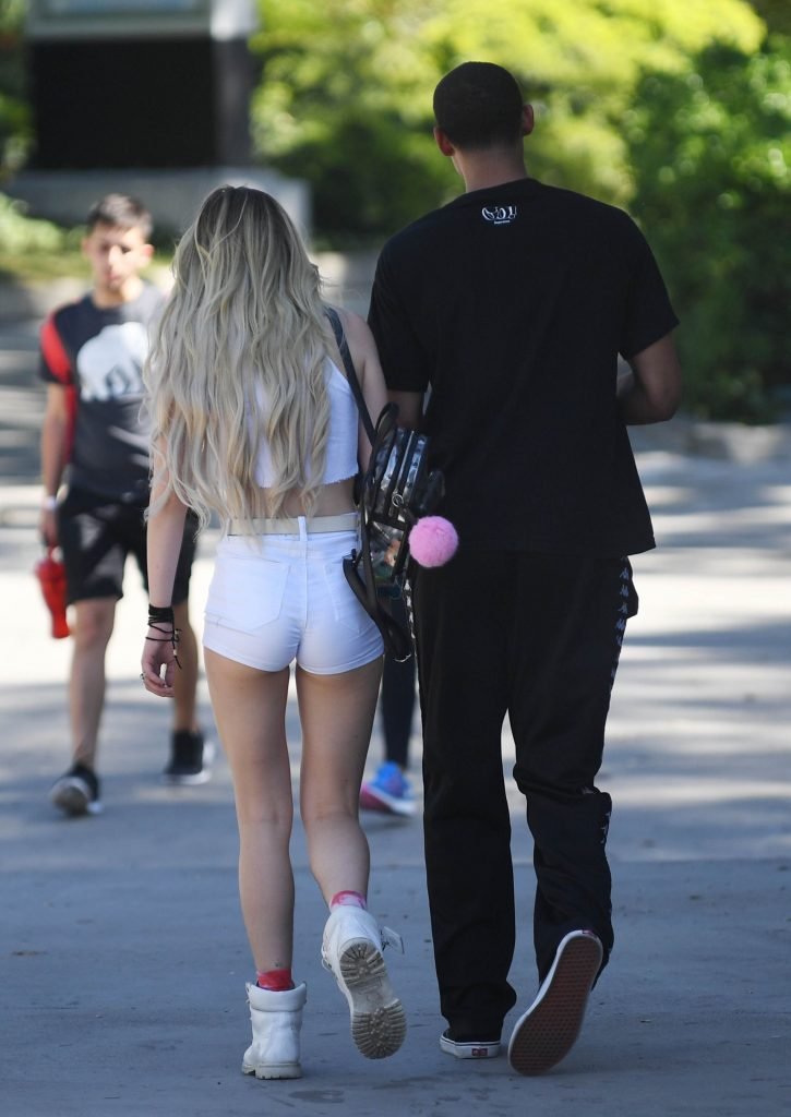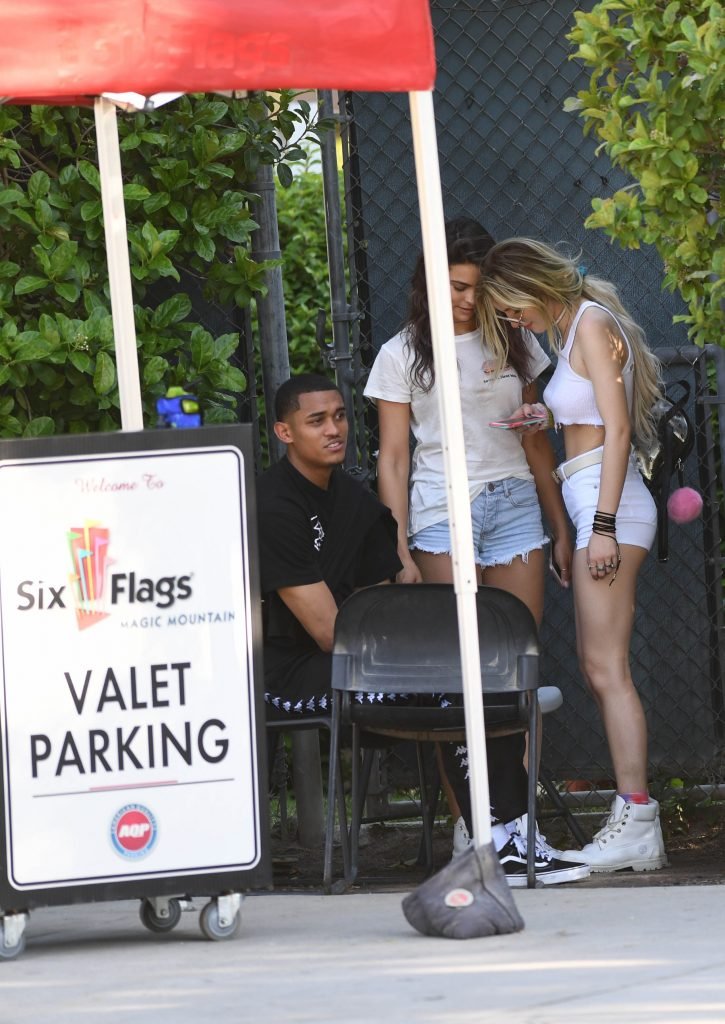 Bella Thorne lleva un crop top transparente en Magic Mountain en Valencia, CA, 05/05/2017. Bella Thorne es una cantante, actriz y bailarina de Florida, EE.UU. Edad – 19.