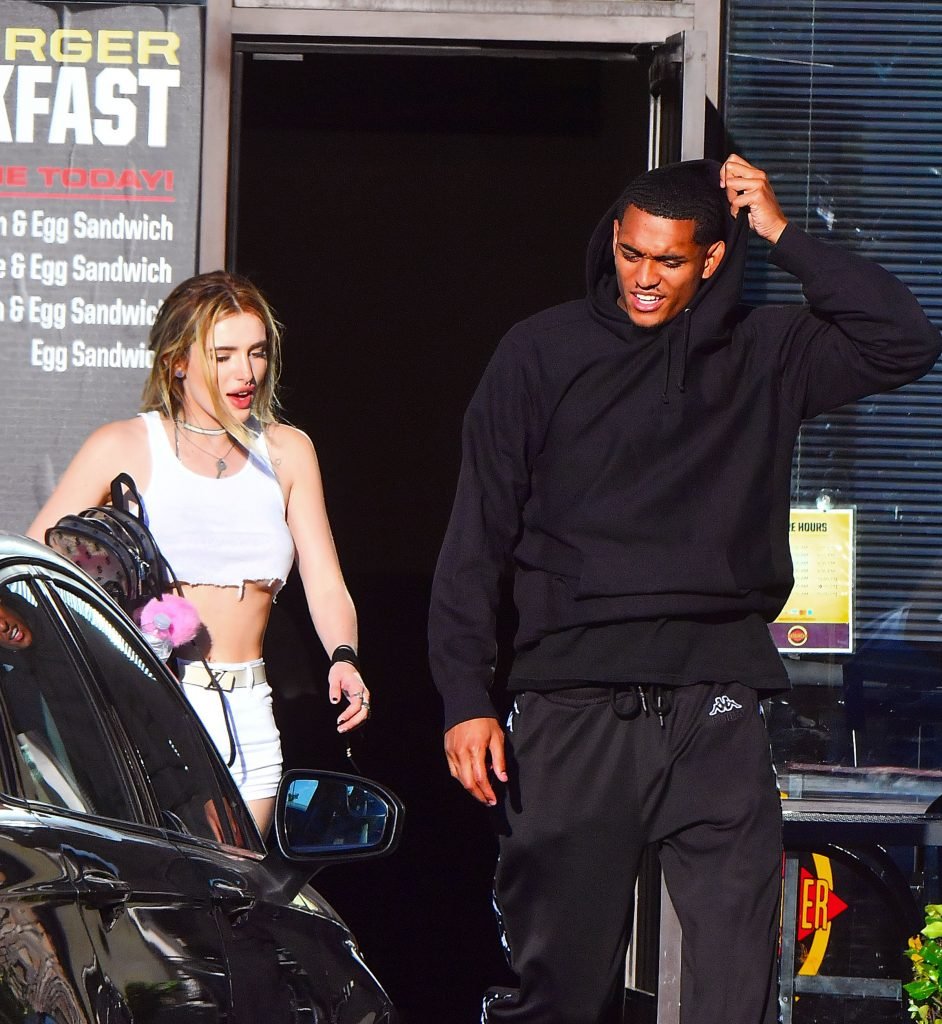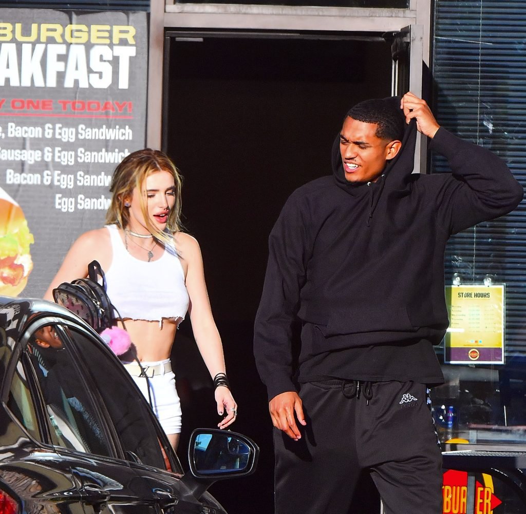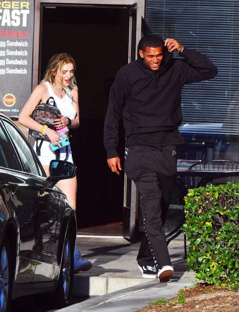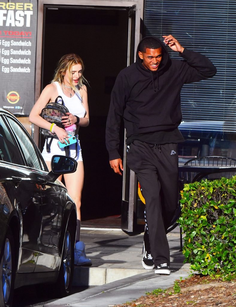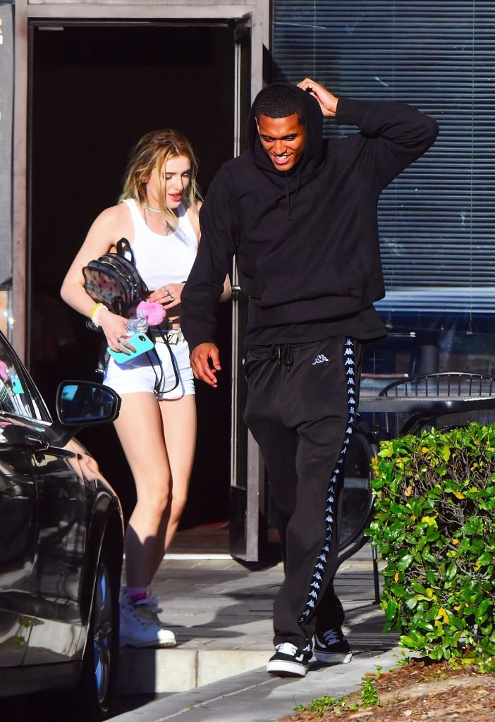 Bella Thorne lleva un crop top transparente en Magic Mountain en Valencia, CA, 05/05/2017. Bella Thorne es una cantante, actriz y bailarina de Florida, EE.UU. Edad – 19.
