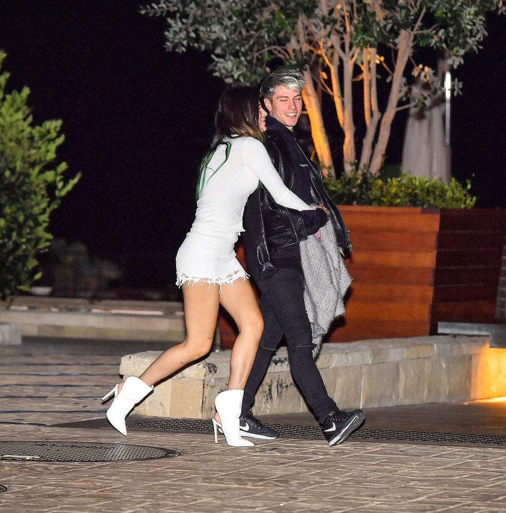 Bella Thorne y su novio Benjamin Mascolo están sonrientes mientras mostraban mucha demostración pública de afecto después de una cita para cenar en Nobu en Malibu, 27/11/2019. Los dos se abrazaron y se besaron al salir del restaurante mientras se dirigían a un Uber.